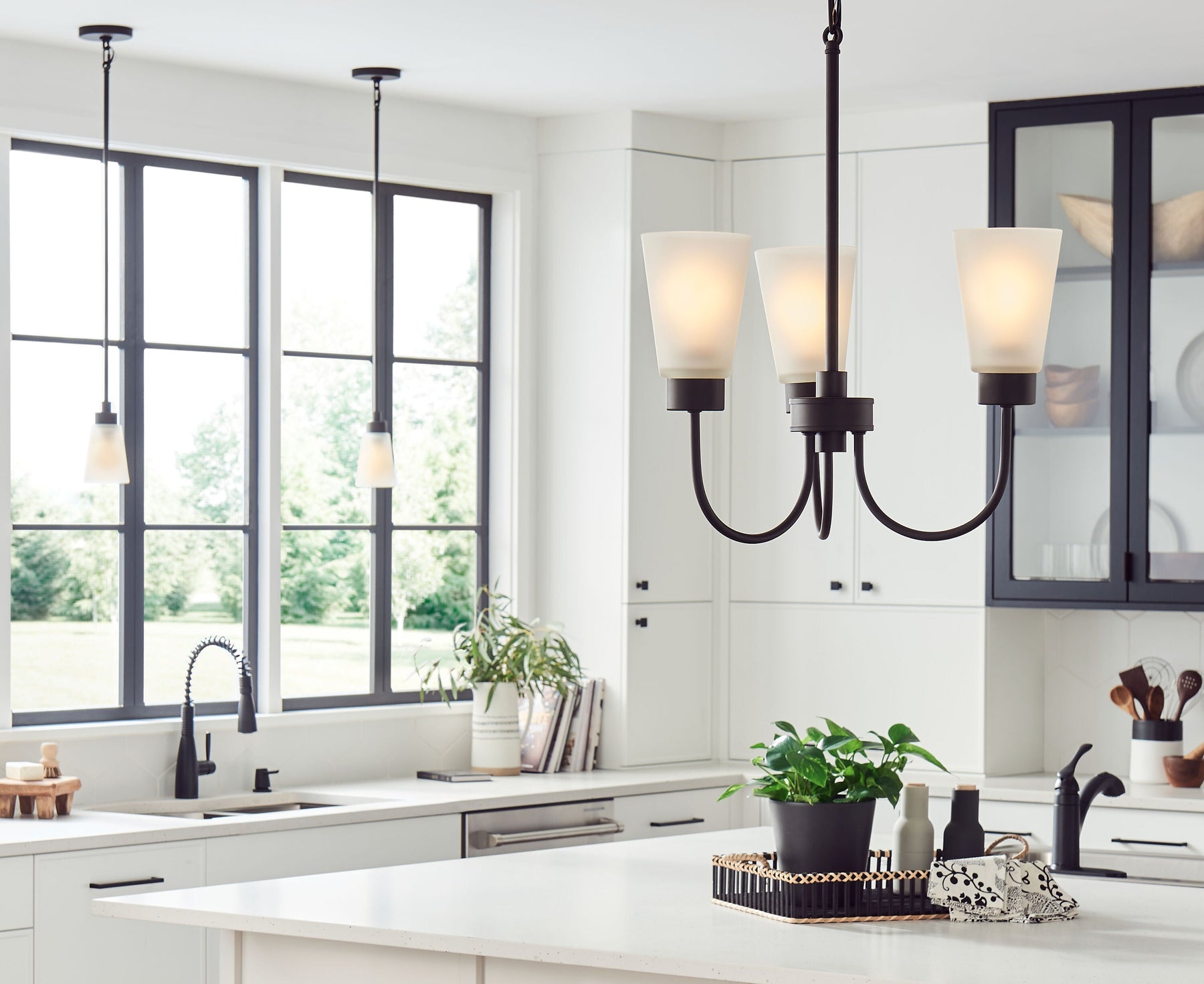 • Lighting: Satin Etched Glass shades diffuse light for a soft glow, suitable for E26 bulbs up to 75W (LED bulbs recommended).