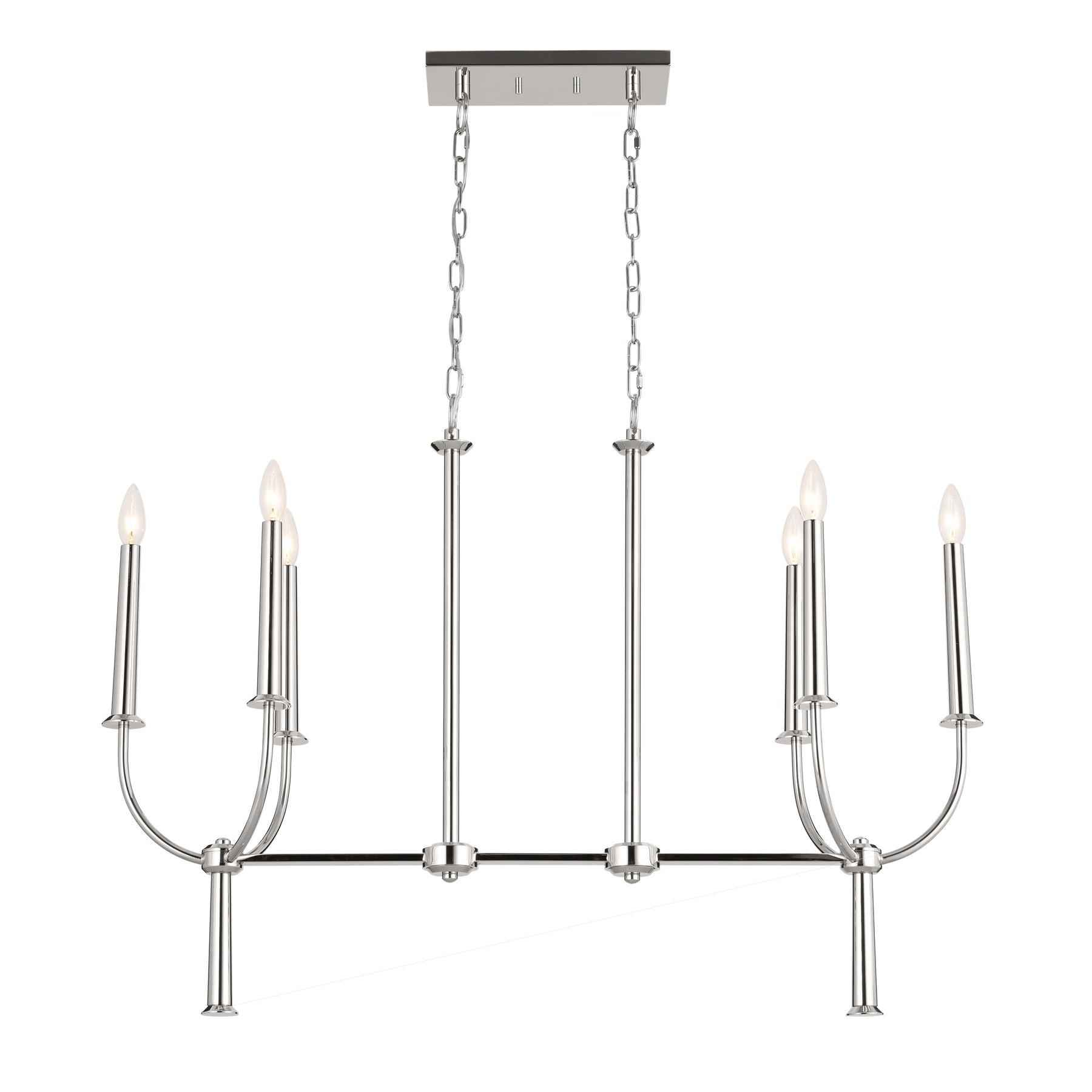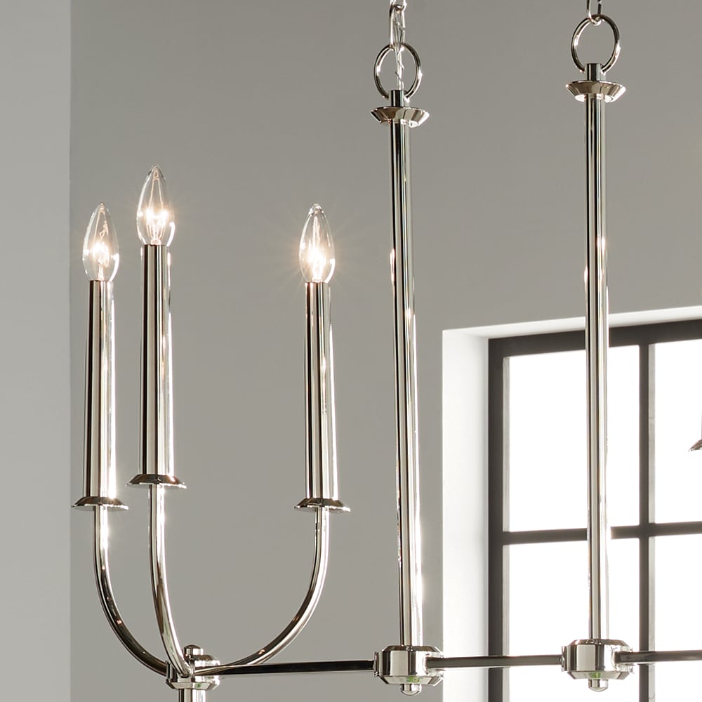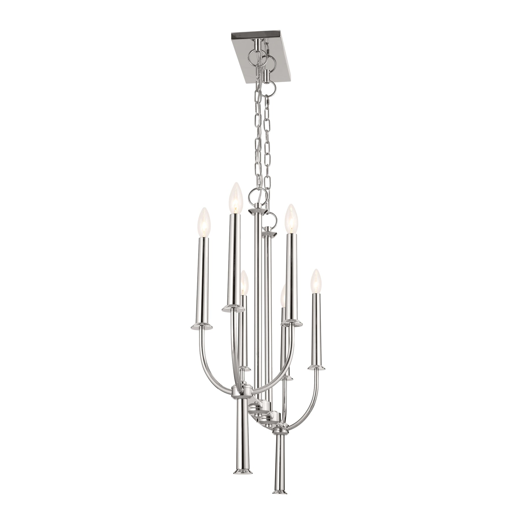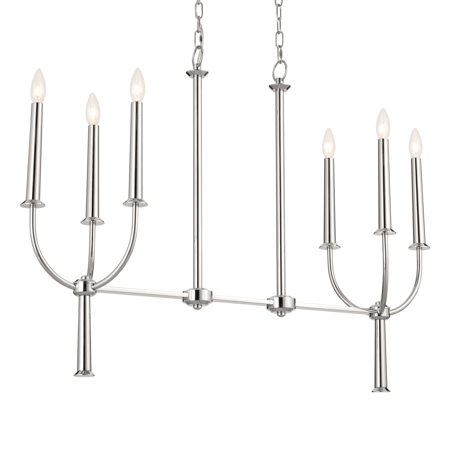 The Kichler Florence 6-Light Chandelier combines elegance and versatility, making it a stunning centerpiece for any room. With its polished nickel finish and elegantly tapered candelabra lights, this chandelier adds a timeless touch to your home, whether over a kitchen island or dining table. Embrace the sophistication of traditional design with this durable, steel-crafted fixture.