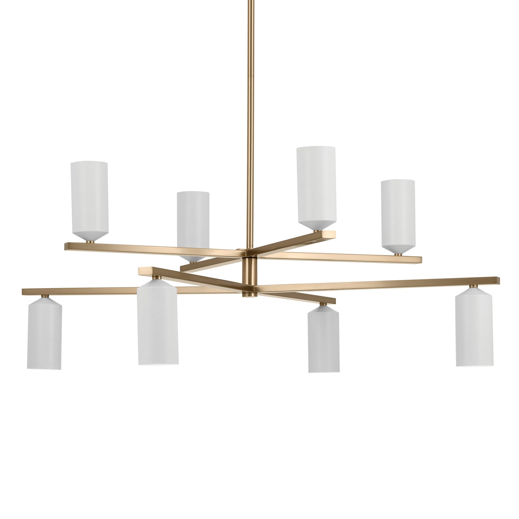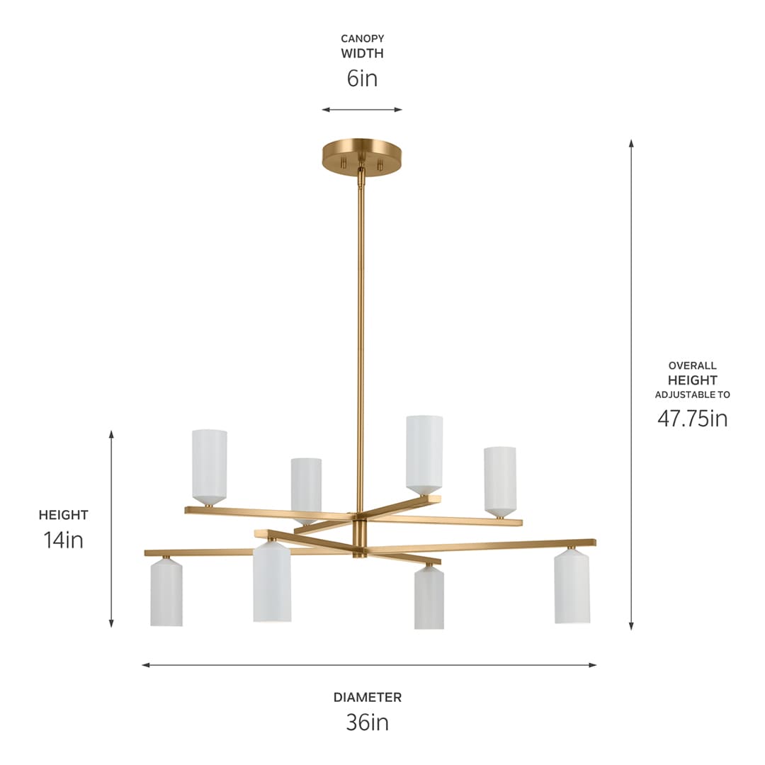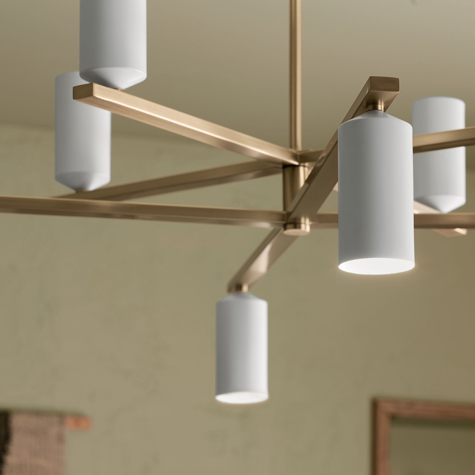 Illuminate your space with the Kichler Gala 8-Light Gold LED Chandelier, a modern masterpiece that combines elegance and functionality. Crafted from durable steel with a sophisticated champagne bronze finish, this chandelier pairs perfectly with white shades to create a timeless feel in any contemporary setting.