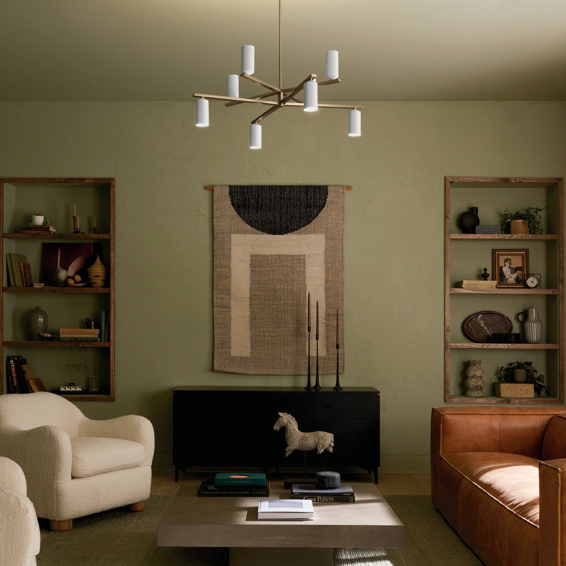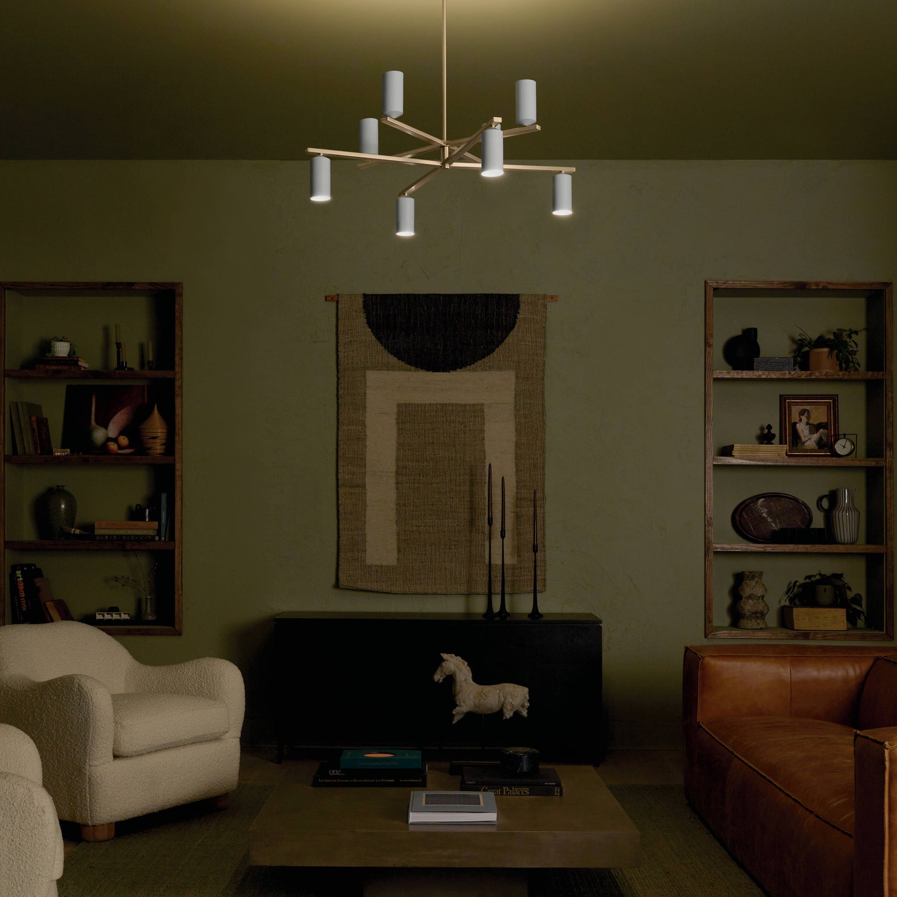 Echoing the contemporary allure of refined elegance, the Kichler Gala 8-Light Chandelier transforms any room into a gallery of light. Its champagne bronze finish dances gracefully with the soft-white shades, creating an environment that is both welcoming and sophisticated. Suspend this fixture in a dining room over a mirrored table to reflect its luminescent charm, or enhance a modern foyer as a statement of understated luxury. Essential to crafting a polished interior, this chandelier is more than light—it's an experience.