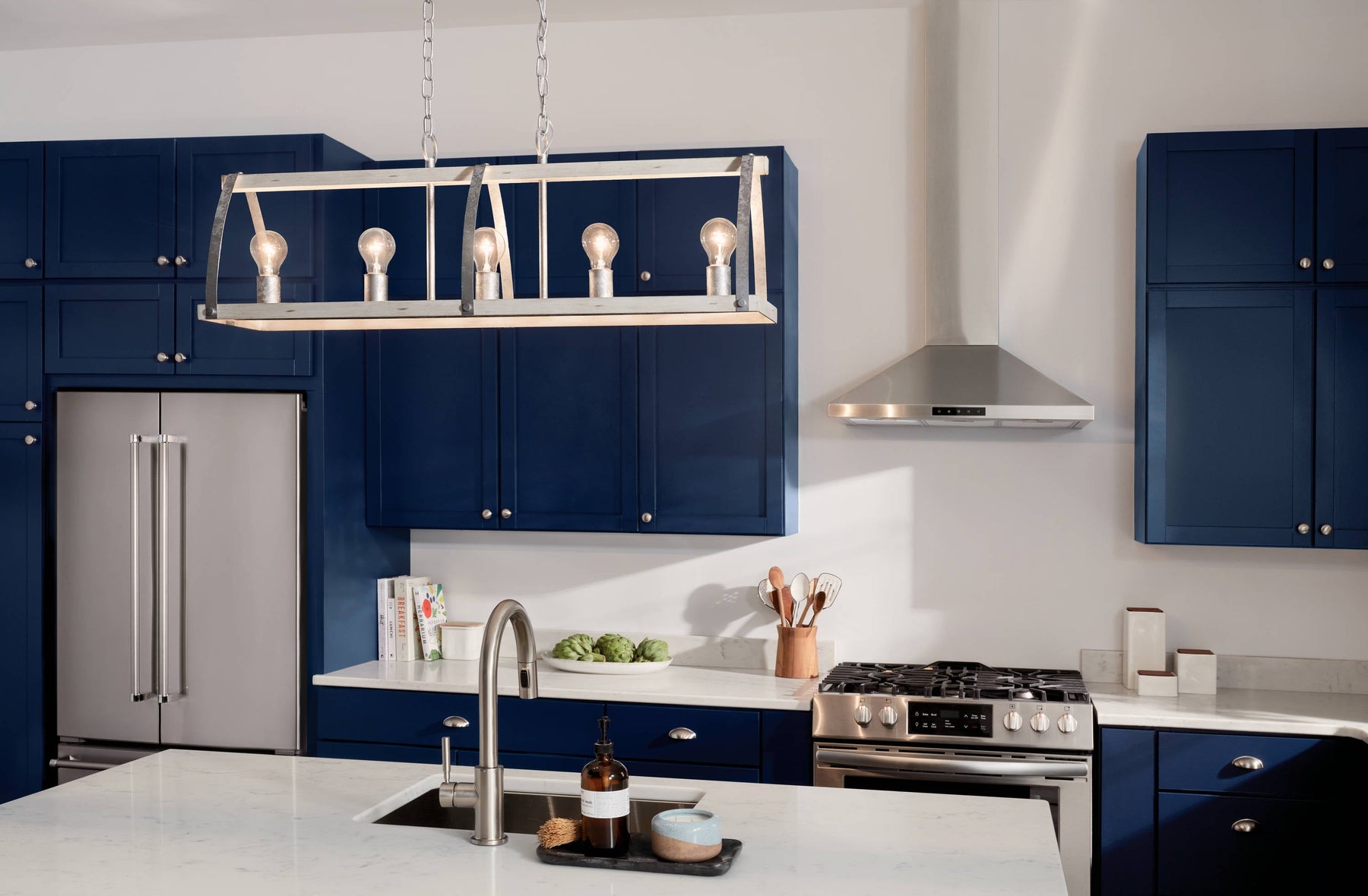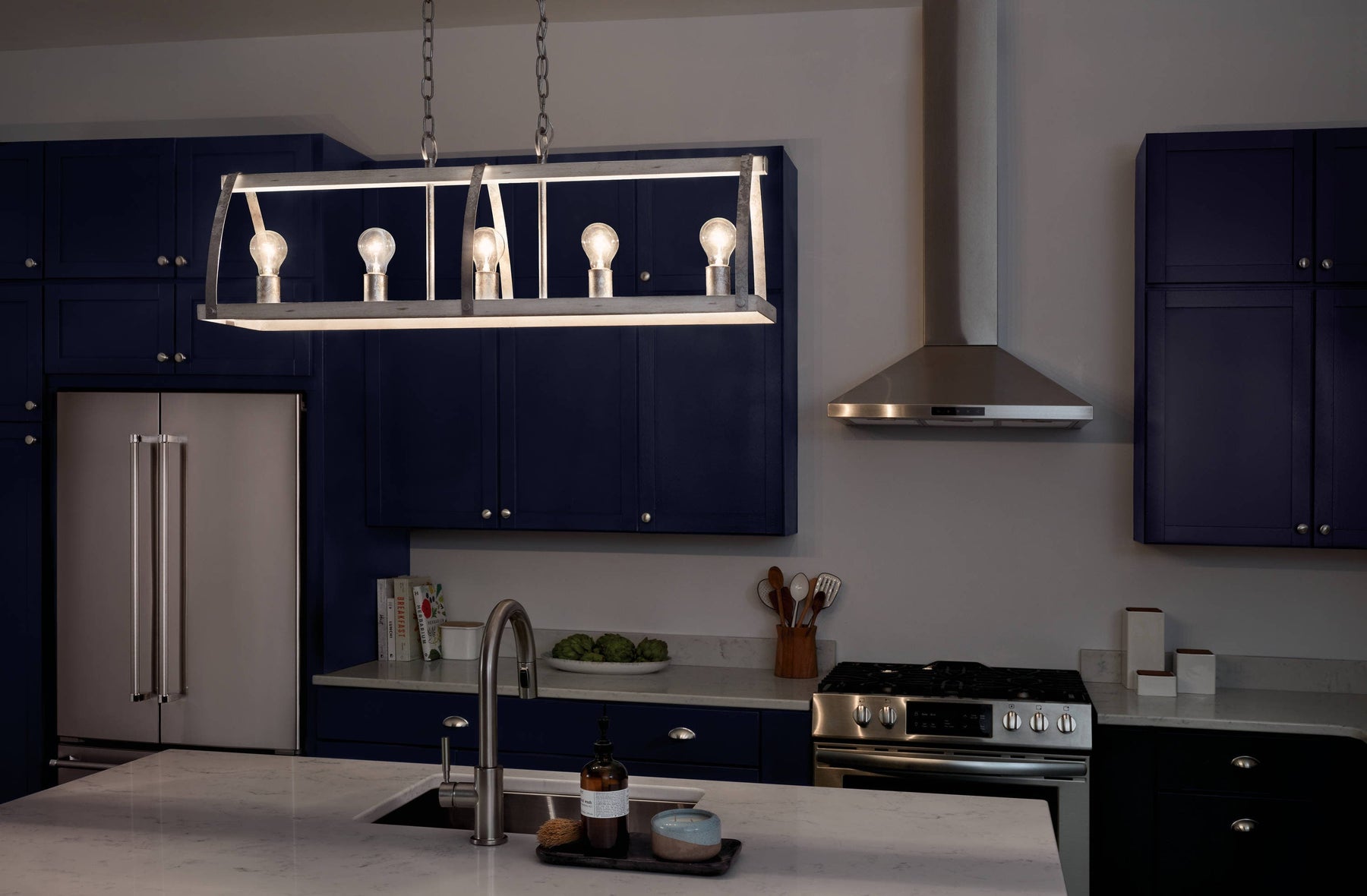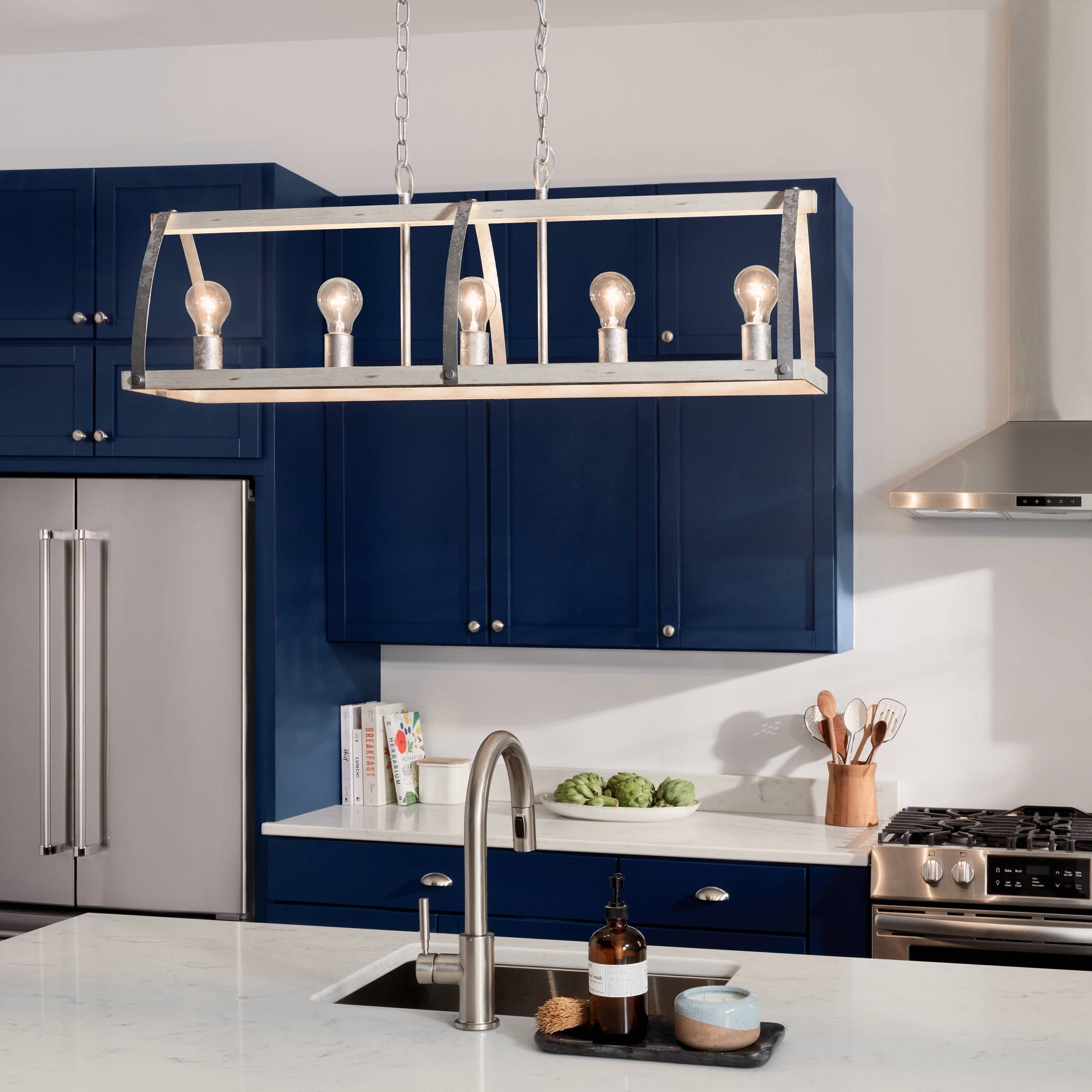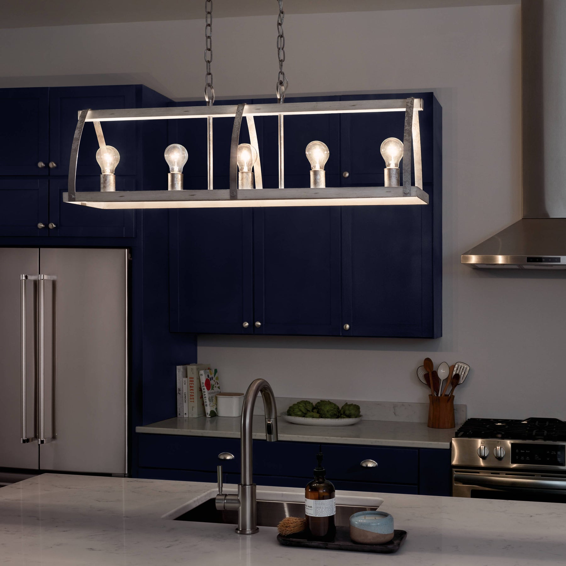 Kichler Gartin 5-Light Galvanized Steel Industrial Linear Large Hanging Kitchen Island Light
