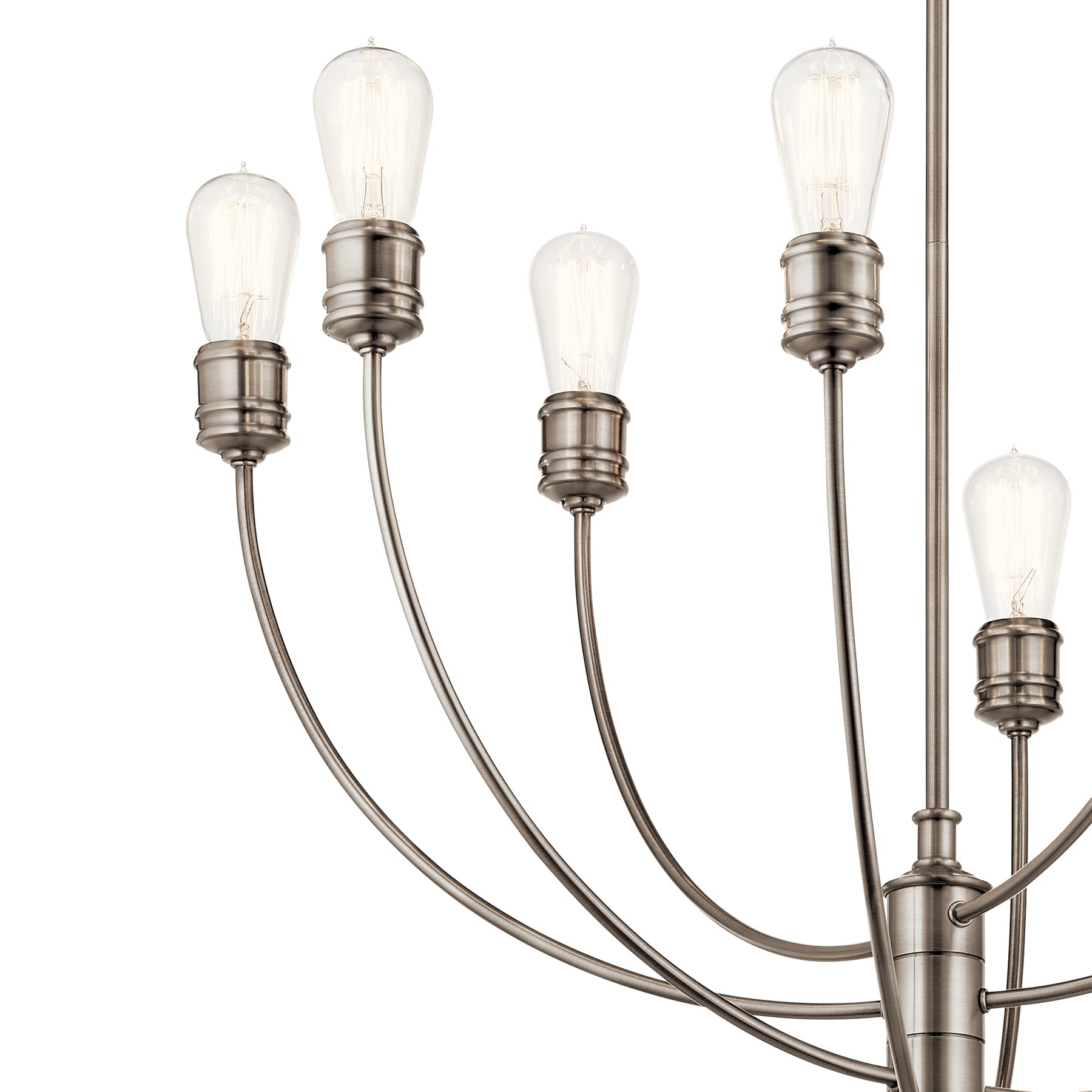Like a delicate piece of art suspended from your ceiling, the Kichler Hatton Chandelier brings an ethereal elegance to any room. Its adjustable, slender arms strike a flawless balance between function and finesse, allowing you to craft a bespoke layout that echoes the room's unique narrative. Accent this architectural marvel above a marble dining table or in a sophisticated hallway to create breathtaking allure. With its graceful design, the Hatton Chandelier is the epitome of timeless luxury, artfully illuminating your home.