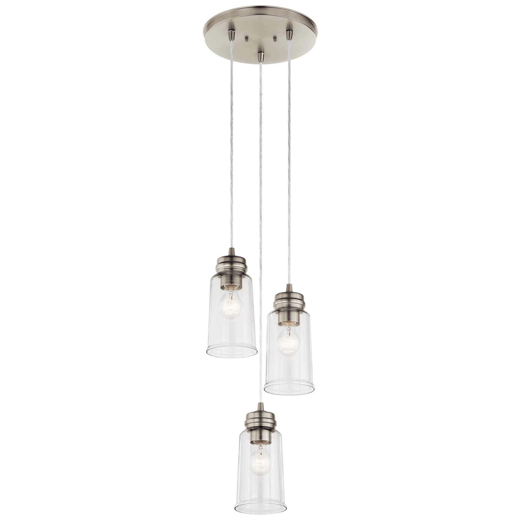 Introducing the Jaylen Pendant Light—a fusion of rustic charm and contemporary sophistication, capturing light's essence in its purest form. The clear glass cylinders showcase a warm luminosity, brilliantly framed by an elegant brushed nickel structure. As a statement piece over your dining table or kitchen island, it exudes an inviting glow that shapes the ambiance. Undeniably, this pendant light is a beacon of refined elegance, essential for any luxurious home setting.