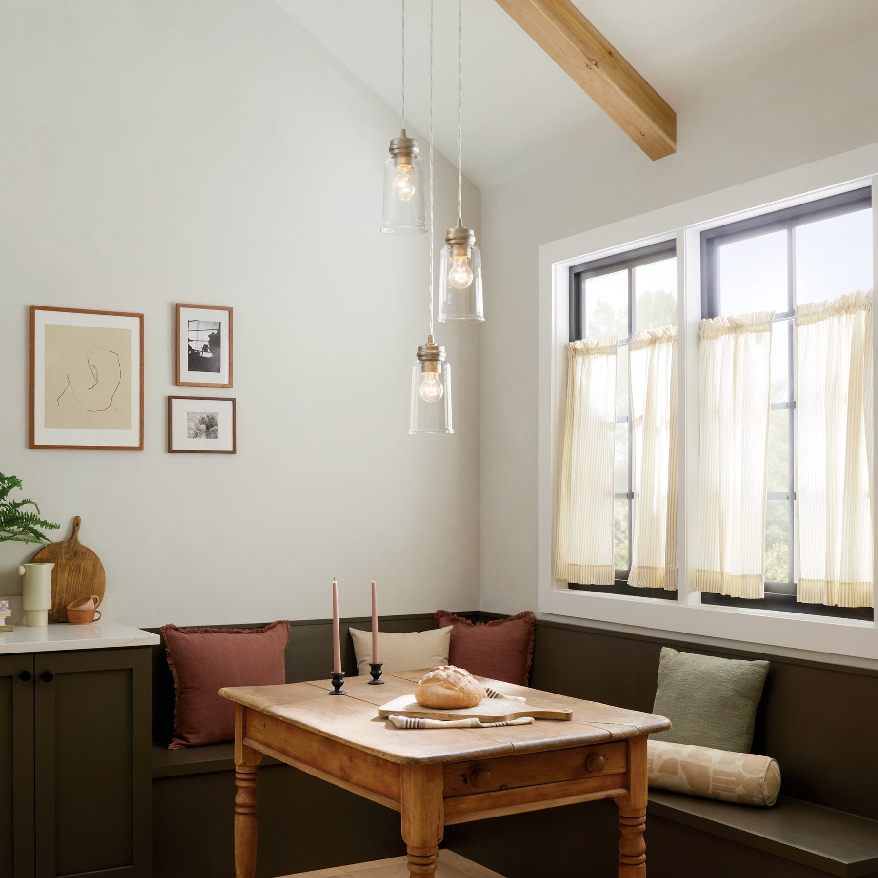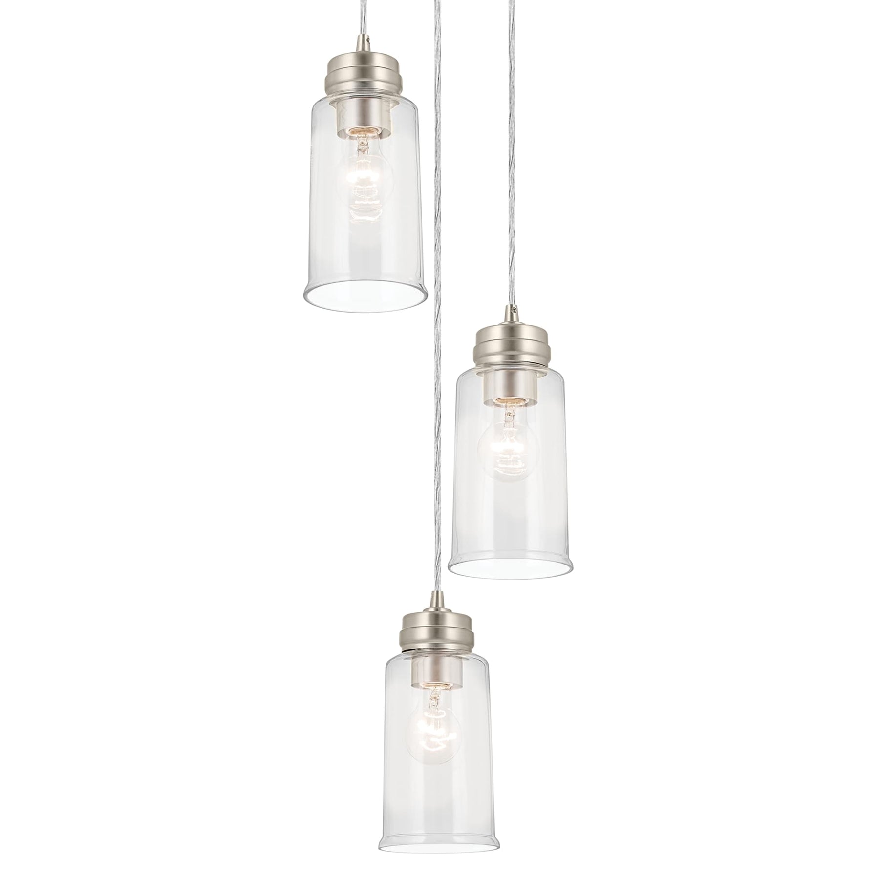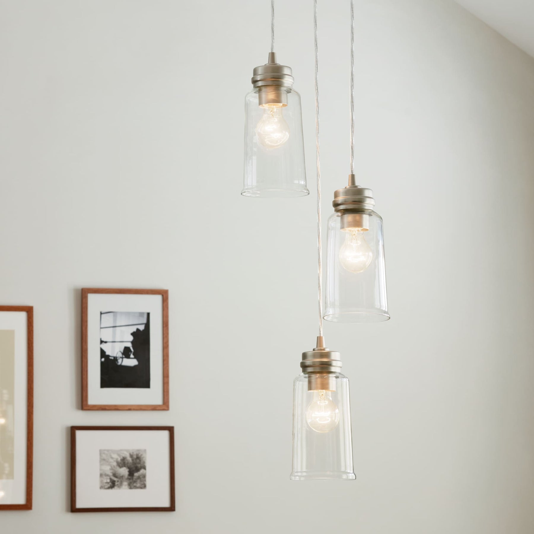 Illuminate your space with the Jaylen Farmhouse Pendant Light, featuring three clear glass cylinders and a brushed nickel finish that adds a touch of farmhouse charm to any interior. Perfect for foyers, dining nooks, or kitchen islands, its adjustable height ensures versatile placement and style.