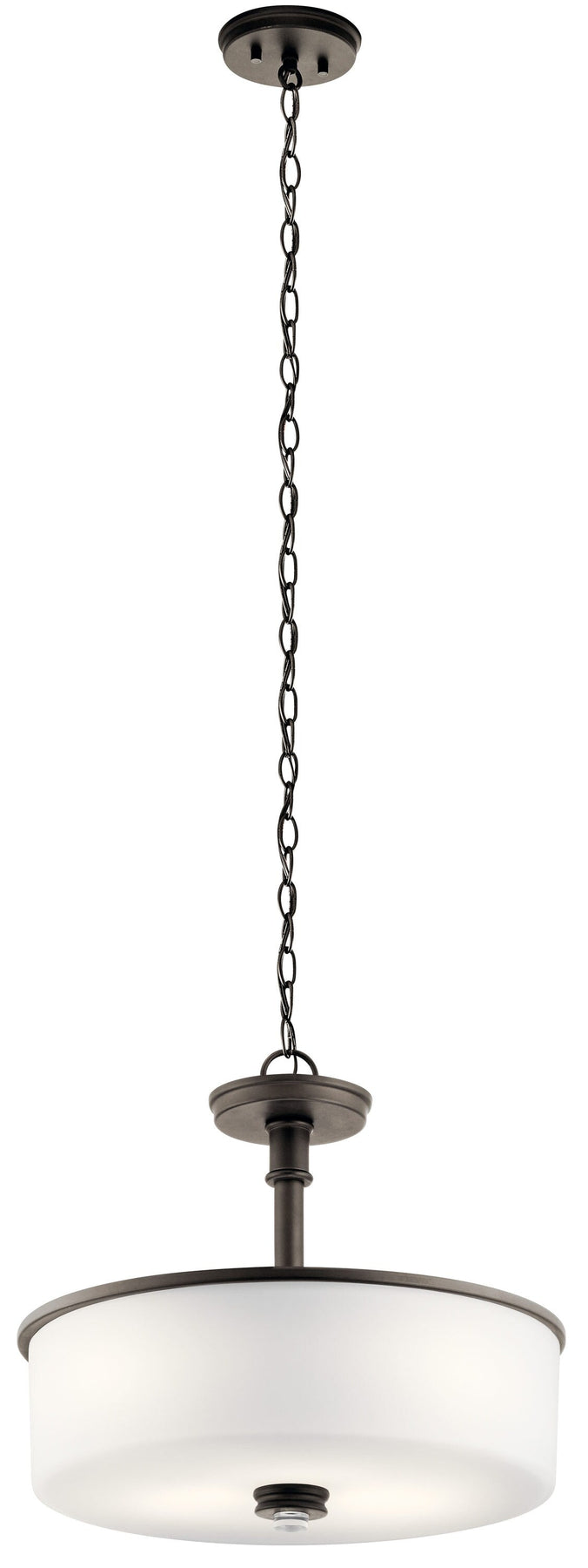 Kichler Joelson 3-Light Olde Bronze Transitional Etched Glass Drum Medium Hanging Convertible Pendant/semi-flush