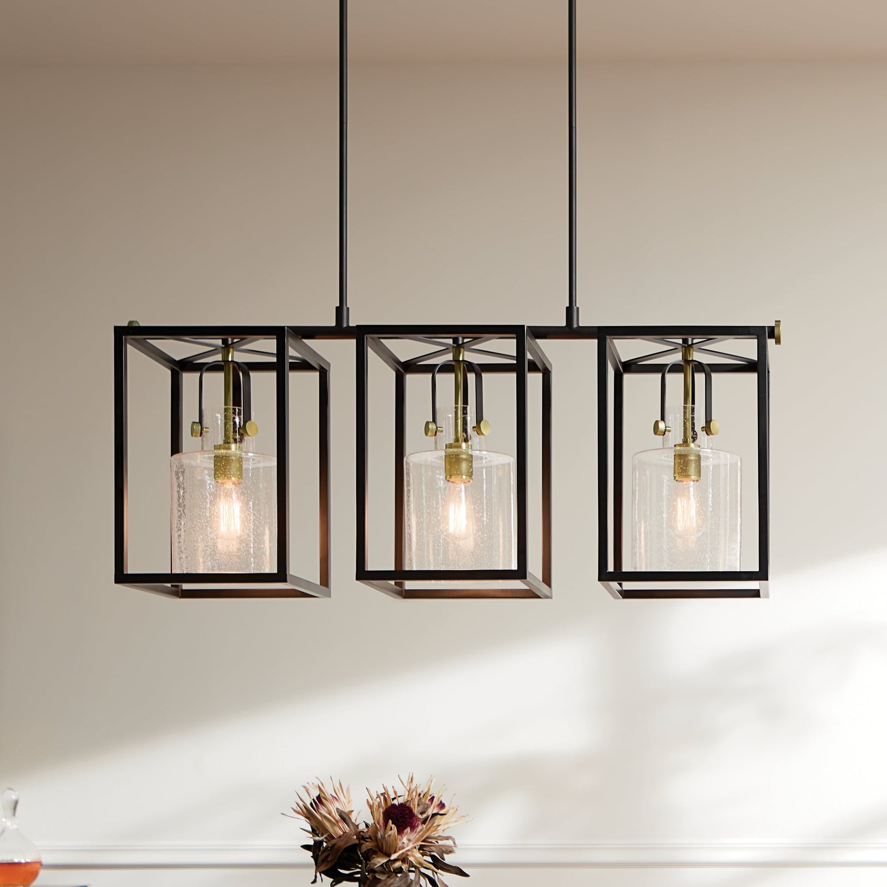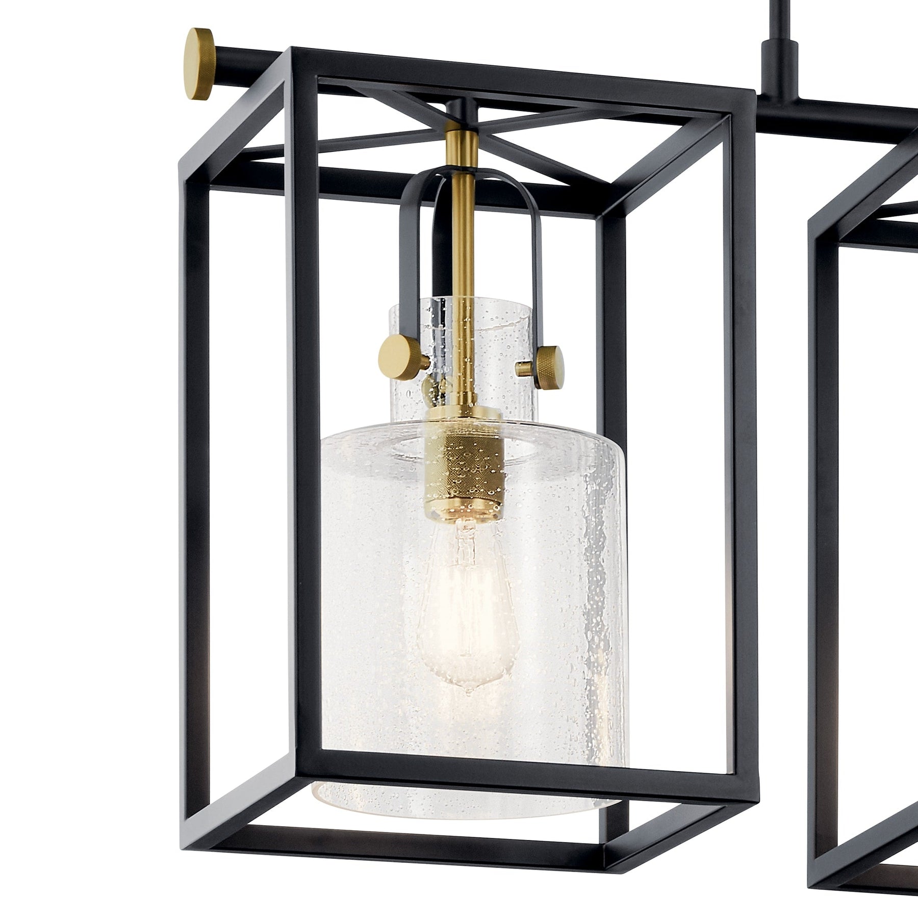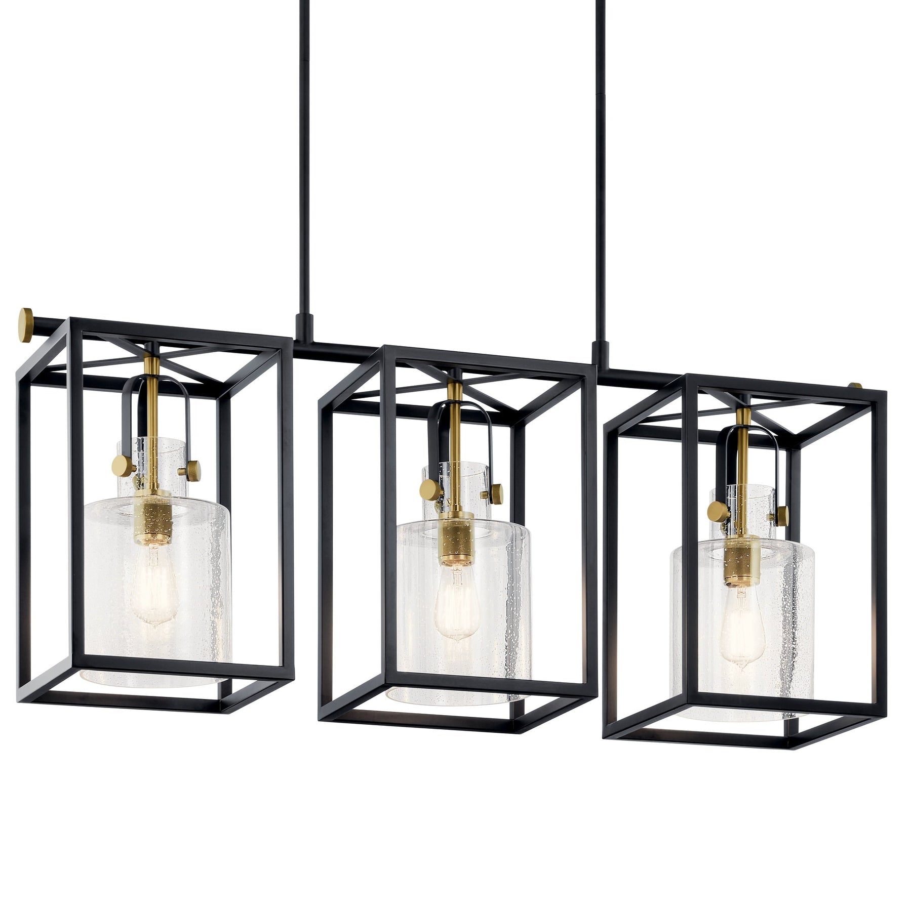 The Kitner 3-Light Industrial Chandelier by Kichler blends industrial charm with modern elegance, featuring a striking two-tone Natural Brass and Black finish perfect for contemporary spaces. This versatile fixture is designed with clear seeded glass shades and adjustable height for customizable installation, making it an impeccable choice for a stylish update in any room.