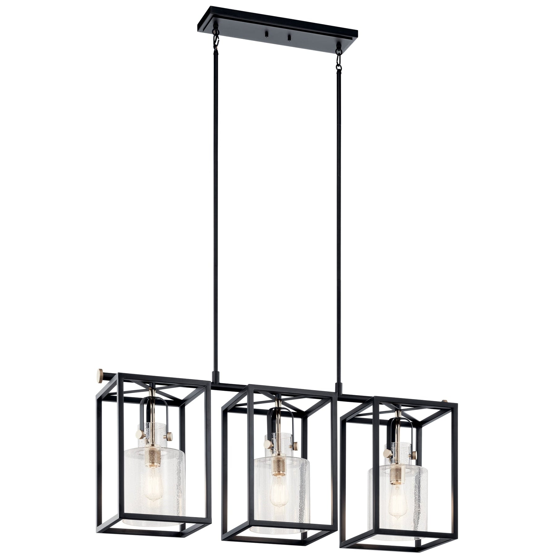 Illuminate your space with the Kichler Kitner 3-Light Chandelier, a fusion of industrial elegance crafted with polished nickel and black finishes. This standout fixture adapts seamlessly to various decors, offering customizable height options and stunning clear seeded glass shades that enhance any room's ambiance.