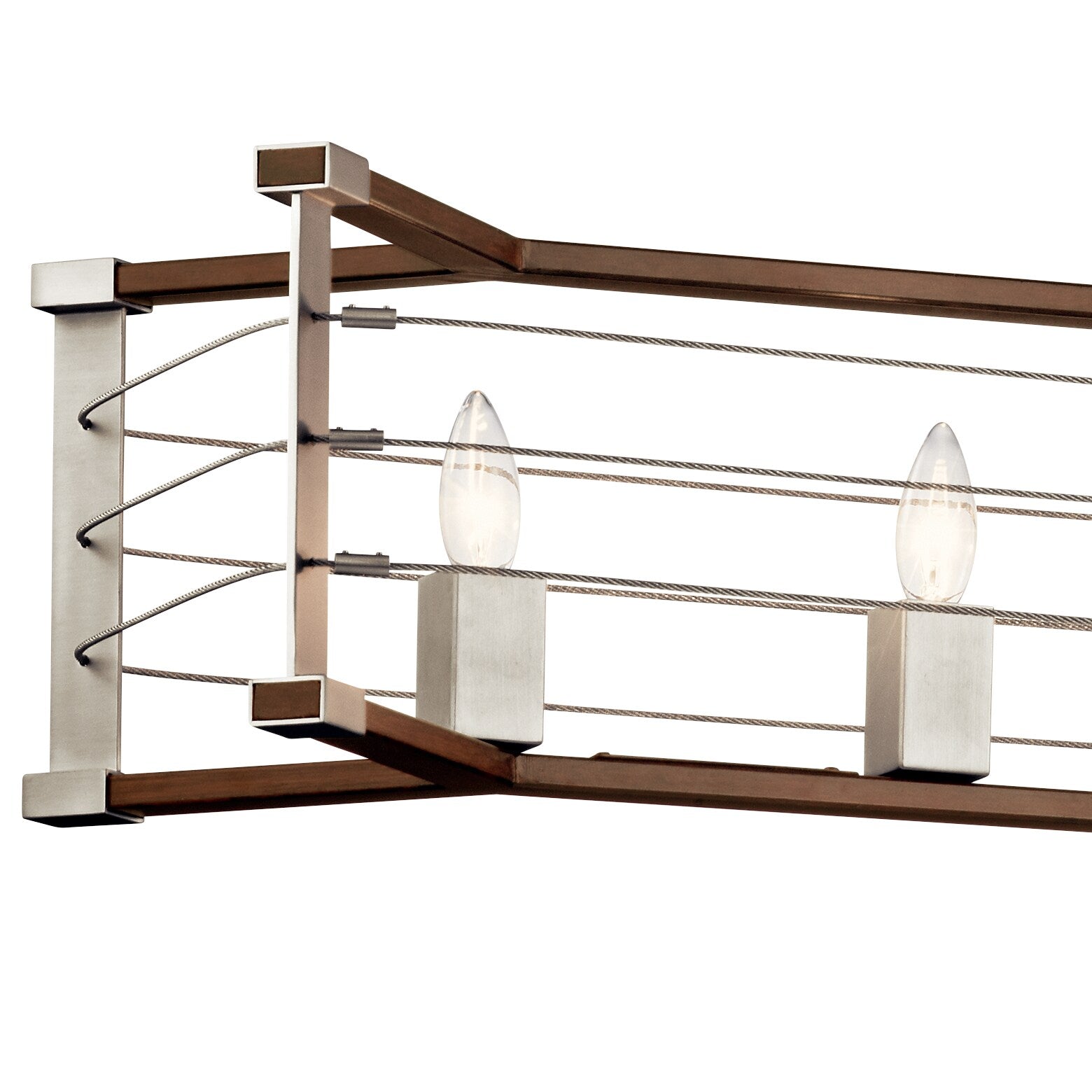 The Kichler Lente 5-Light Industrial Chandelier brings modern industrial design to your home, perfect for dining rooms or kitchens. Crafted from durable steel with a stunning brushed nickel finish and auburn wood-like accents, this fixture blends durability with elegance, creating an eye-catching focal point in any room.
