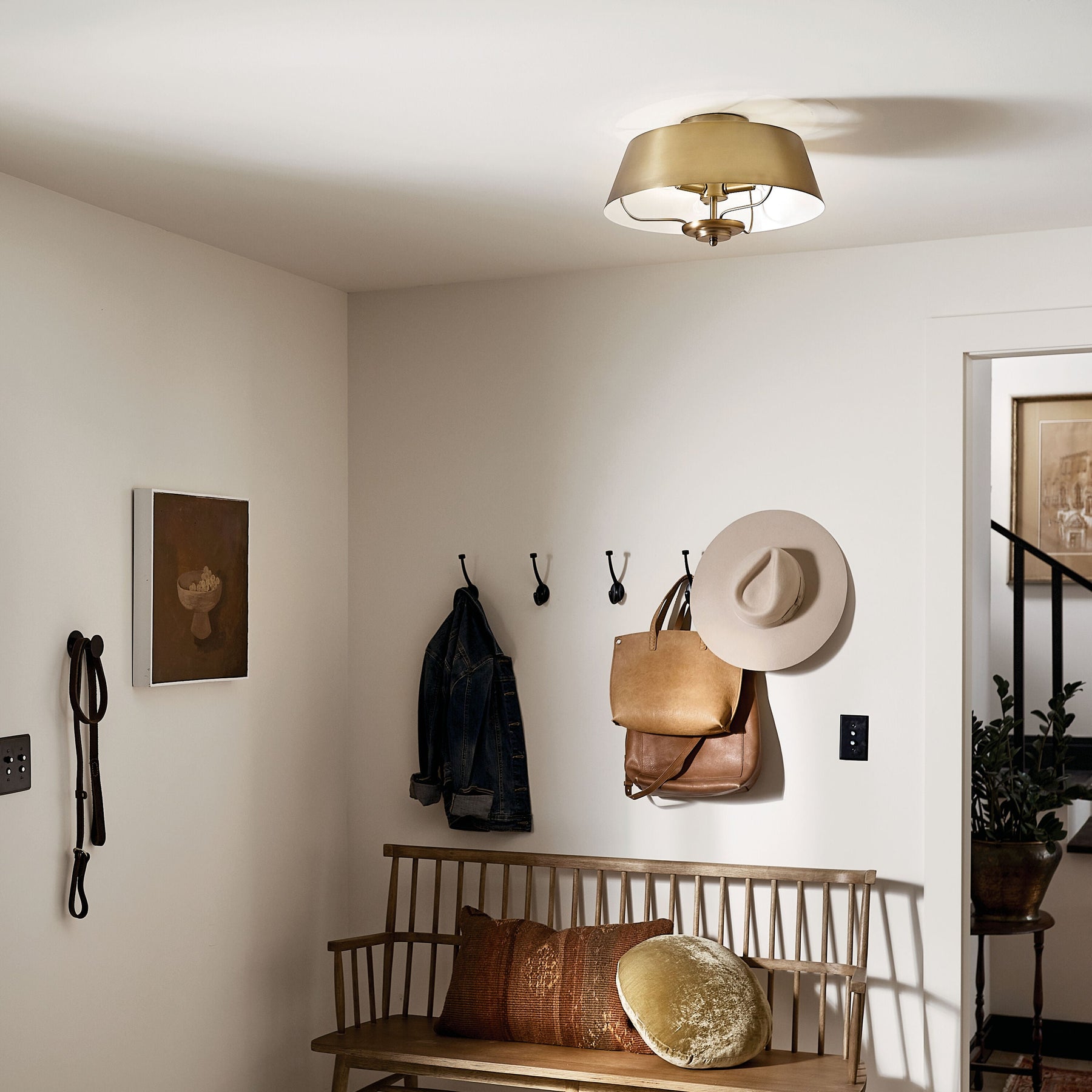 The Kichler Luella 3-Light Convertible Pendant offers timeless style with its brushed natural brass finish and traditional drum design. Perfect for adding a touch of elegance to any room, this fixture can be used as a semi-flush mount or a pendant, giving you versatile lighting options for various spaces.