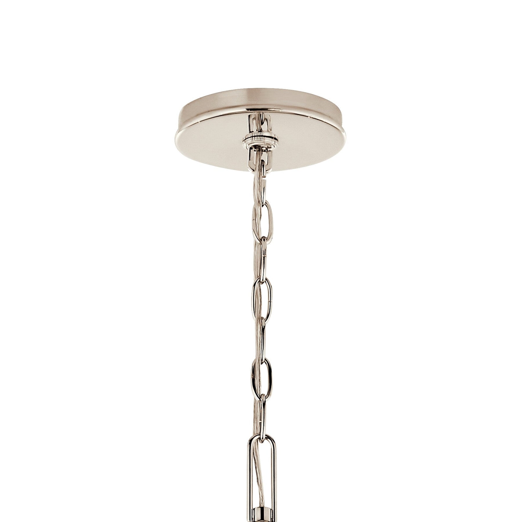 A: The Kichler Malene Chandelier is crafted from durable steel with a polished nickel finish for longevity.