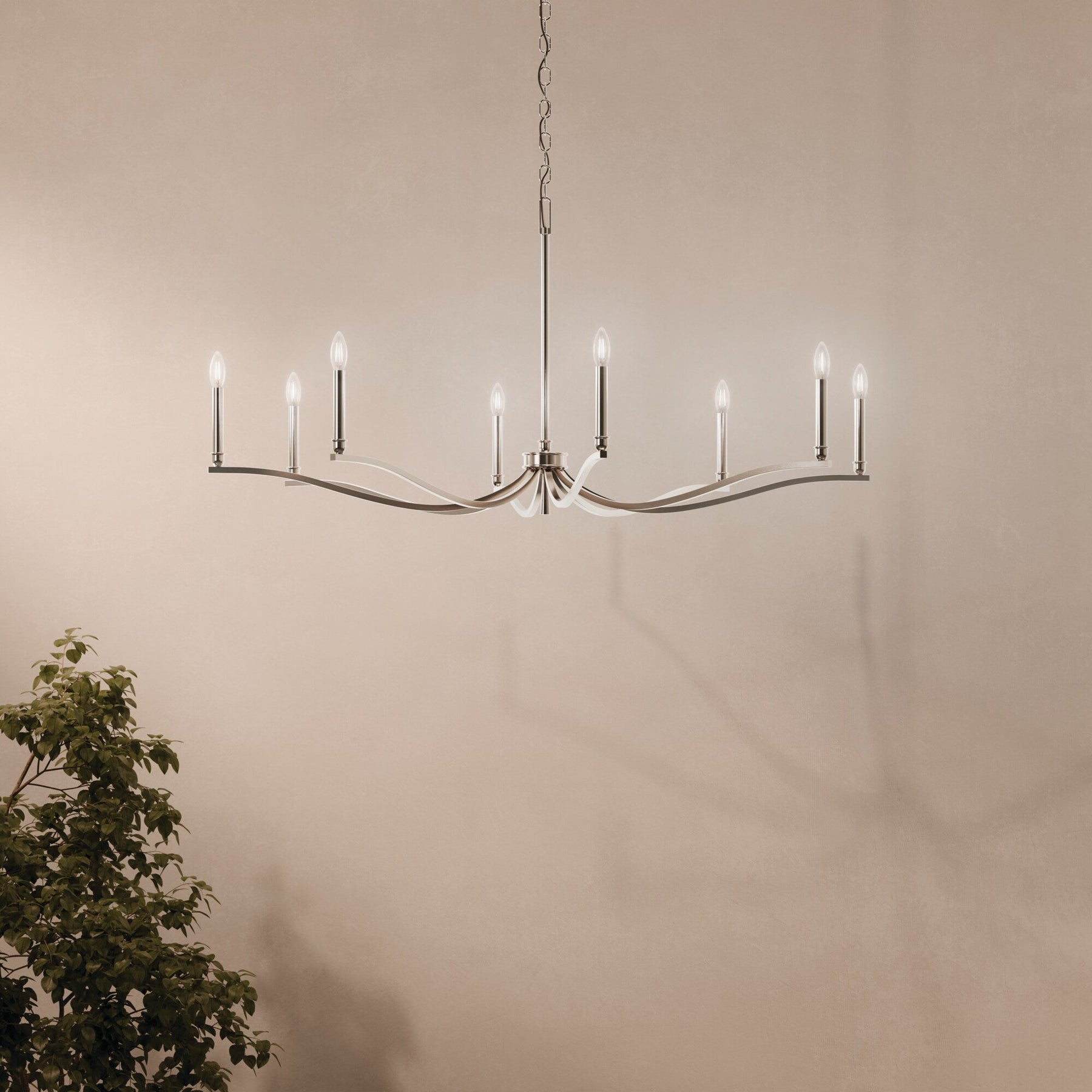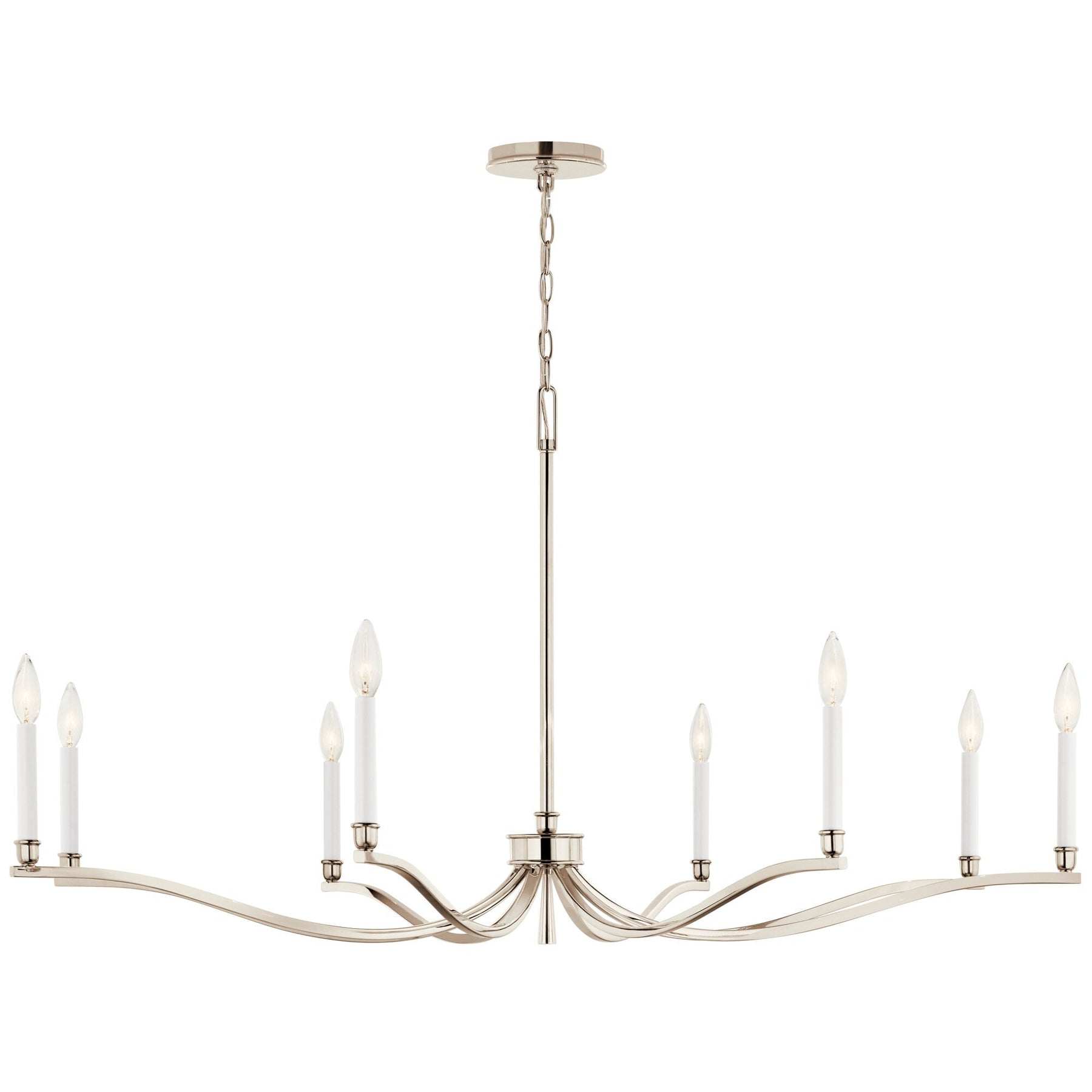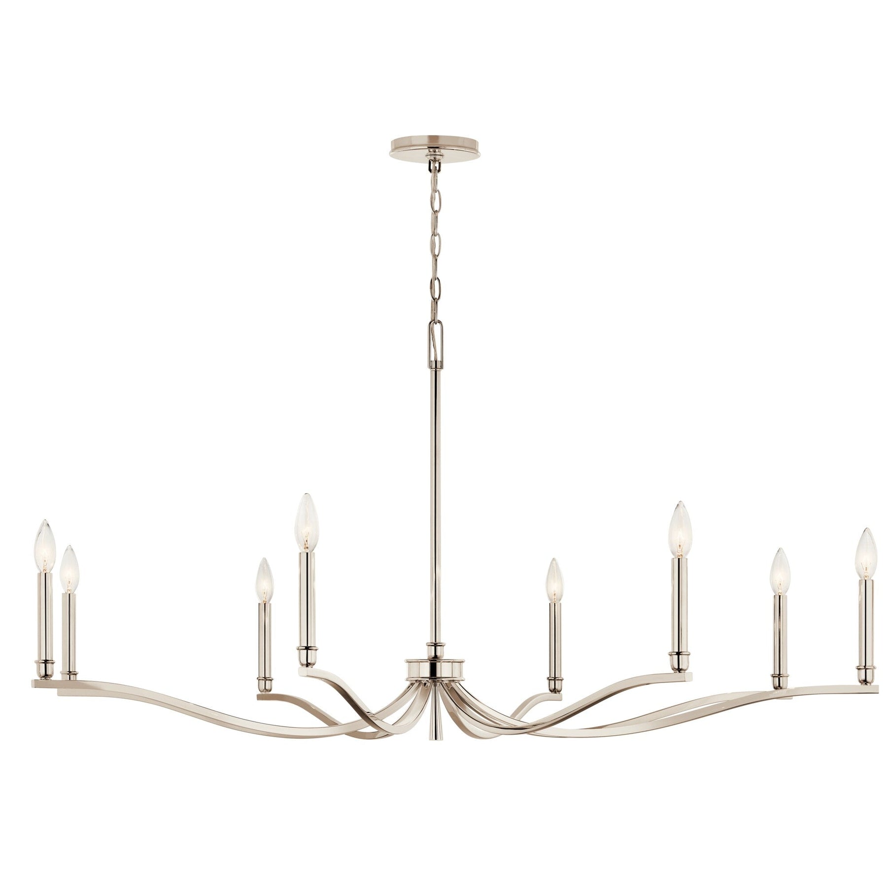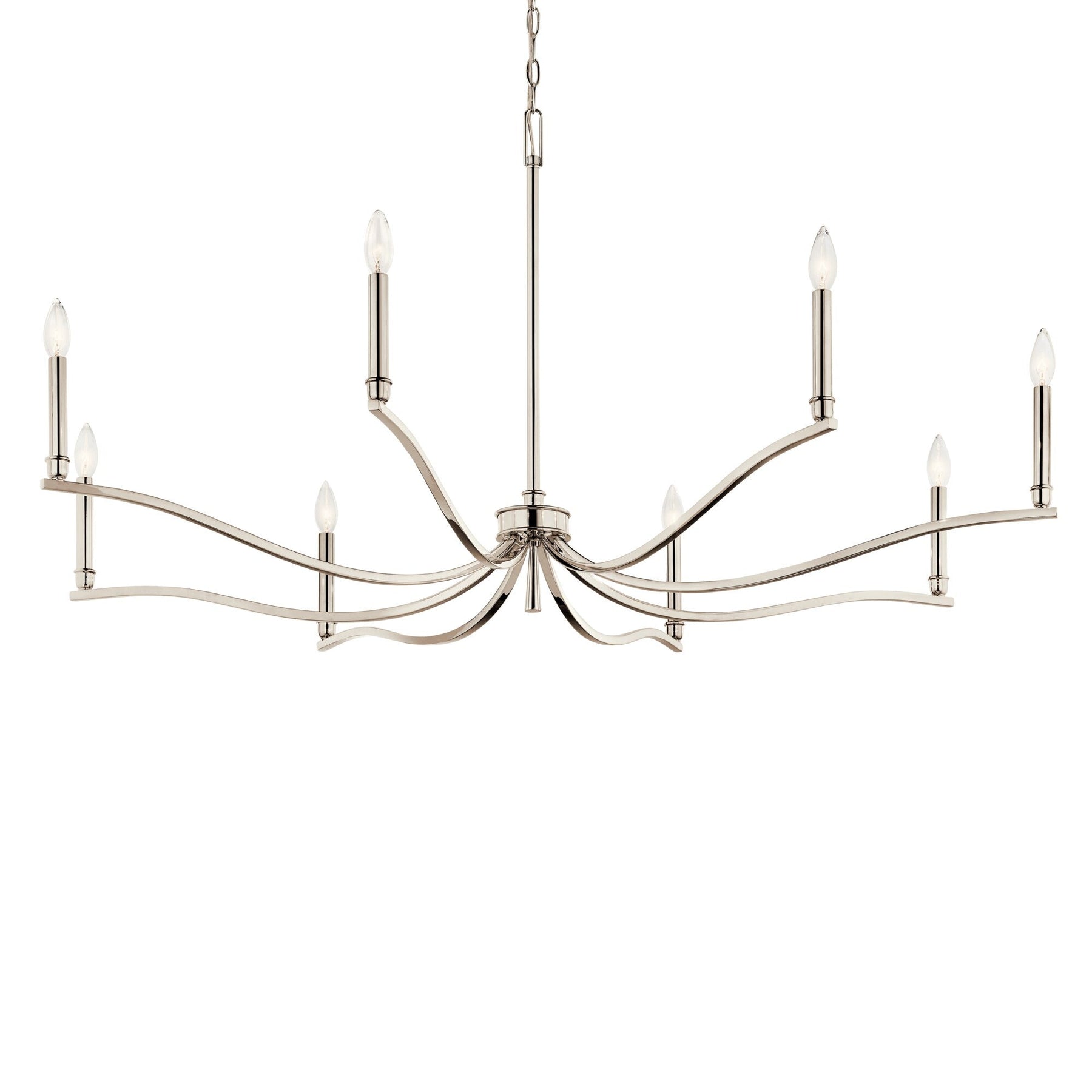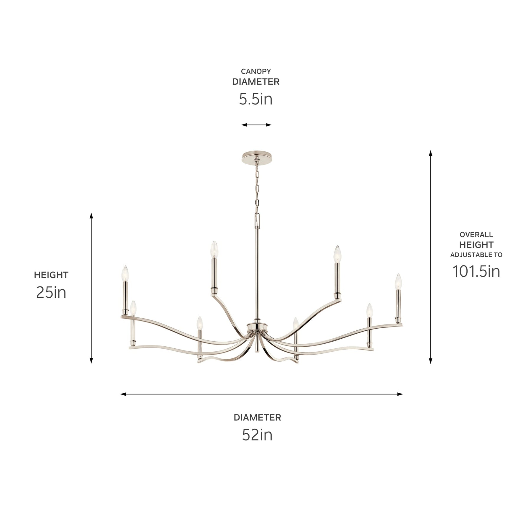 Elevate your space with the Kichler Malene 8-Light Traditional Chandelier. This captivating fixture combines timeless elegance with modern versatility, featuring bare bulbs and a polished nickel finish that complements both traditional and contemporary interiors.