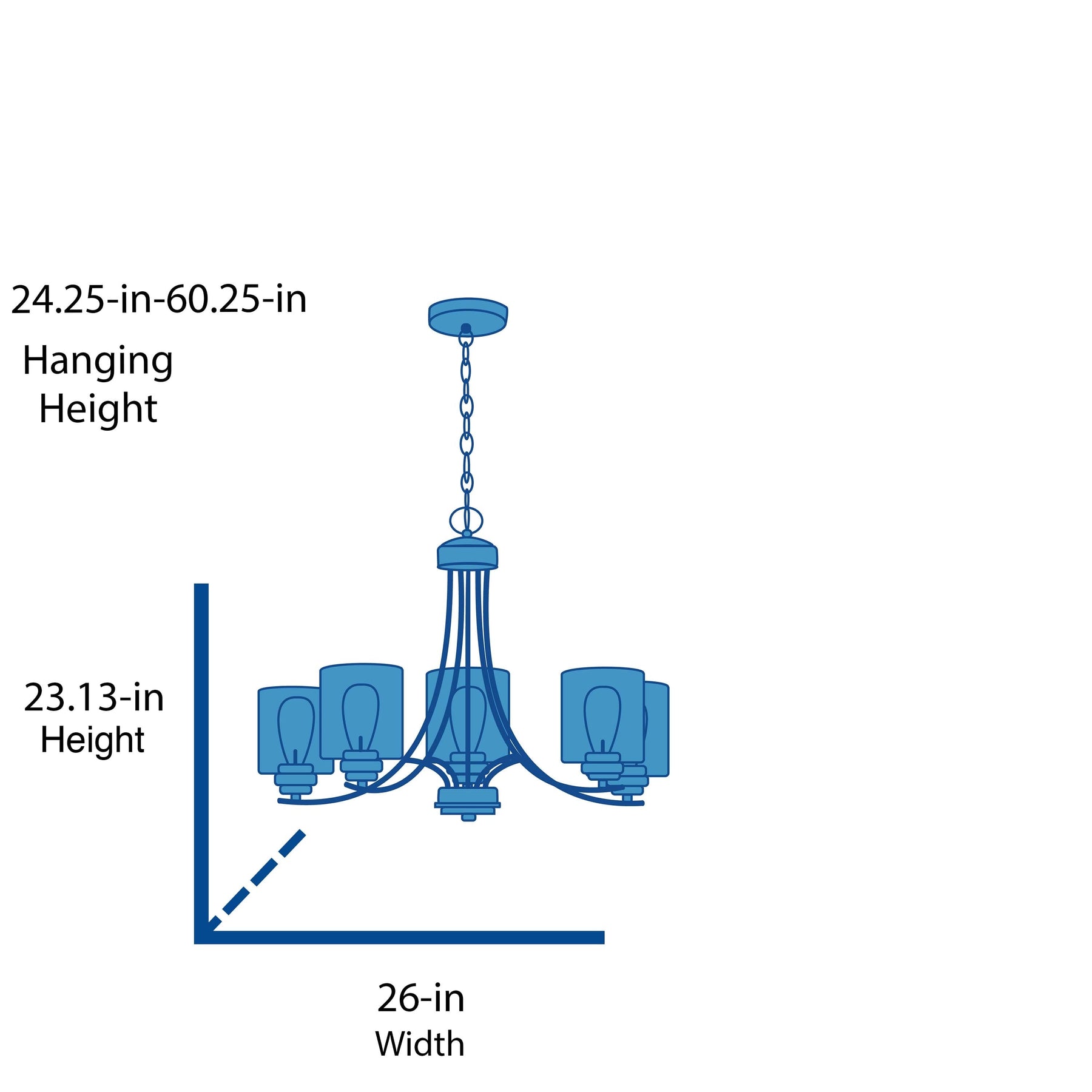 A: The chandelier requires five 60-watt medium base (E-26) bulbs, which are sold separately.