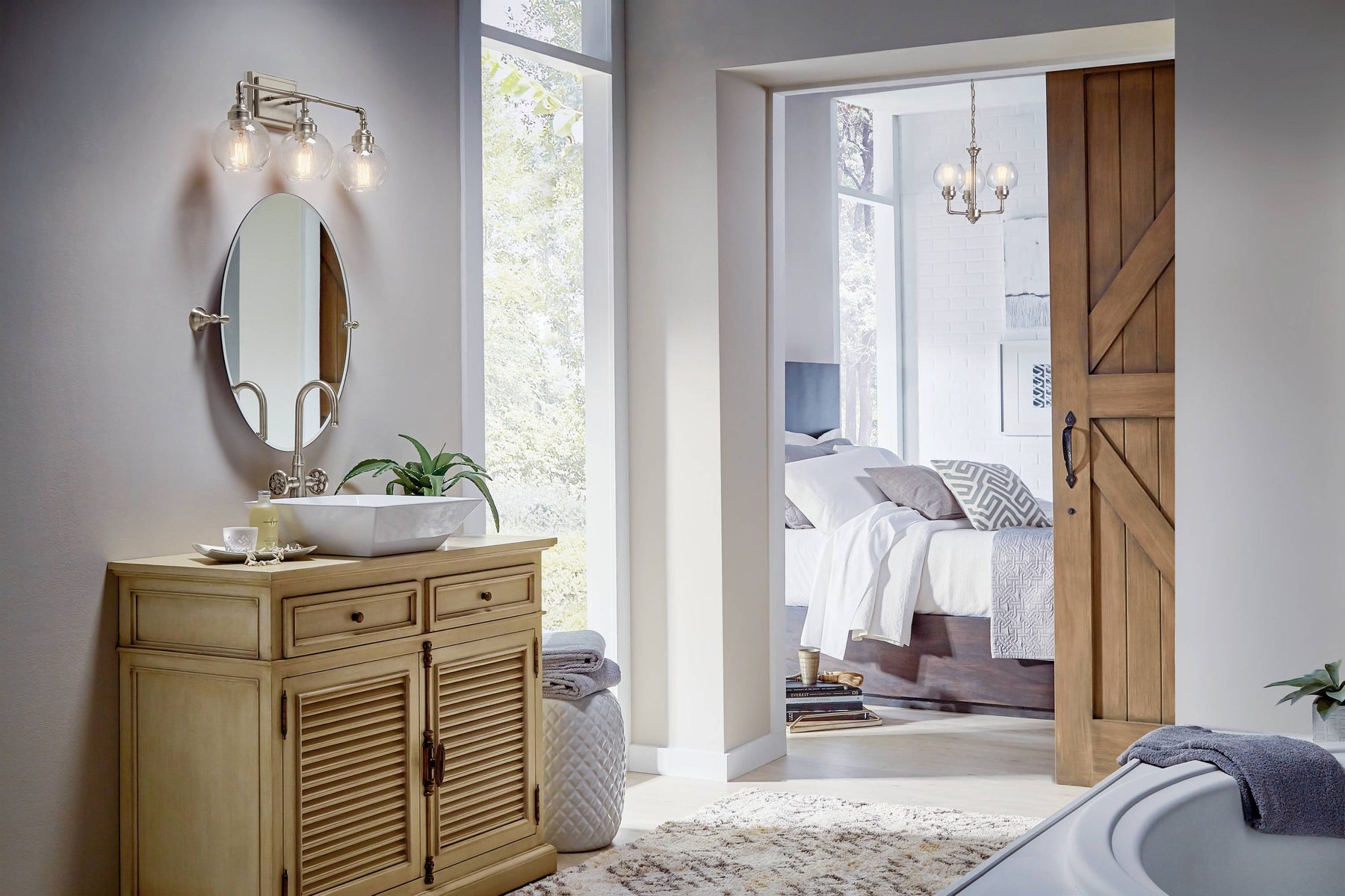 Elevate the ambiance of any room with the Kichler Niles 3-Light Antique Pewter Chandelier. This transitional fixture combines an industrial-inspired design with modern elegance, featuring clear seeded glass shades that beautifully diffuse light. Its versatile styling complements dining rooms, kitchens, and more, making it an essential lighting choice for homes that blend classic and contemporary aesthetics.