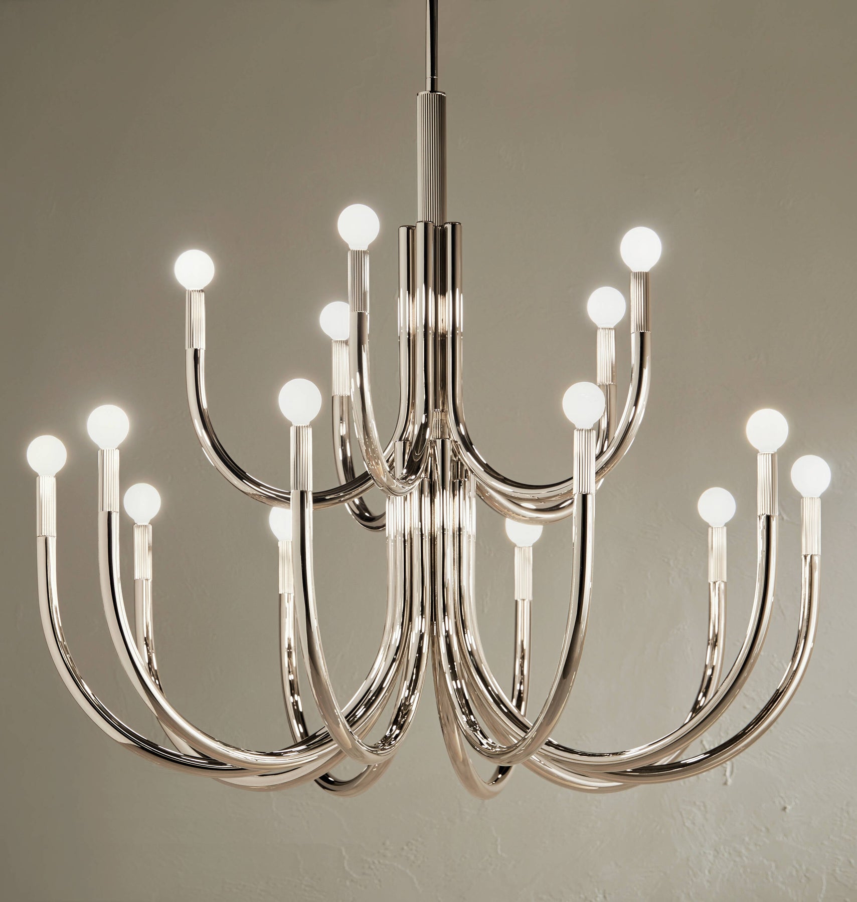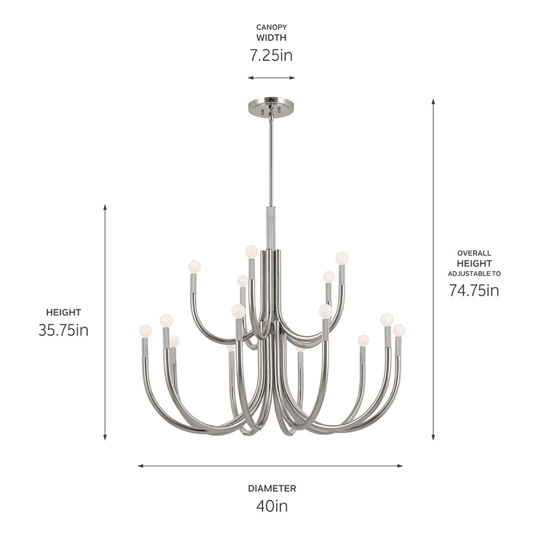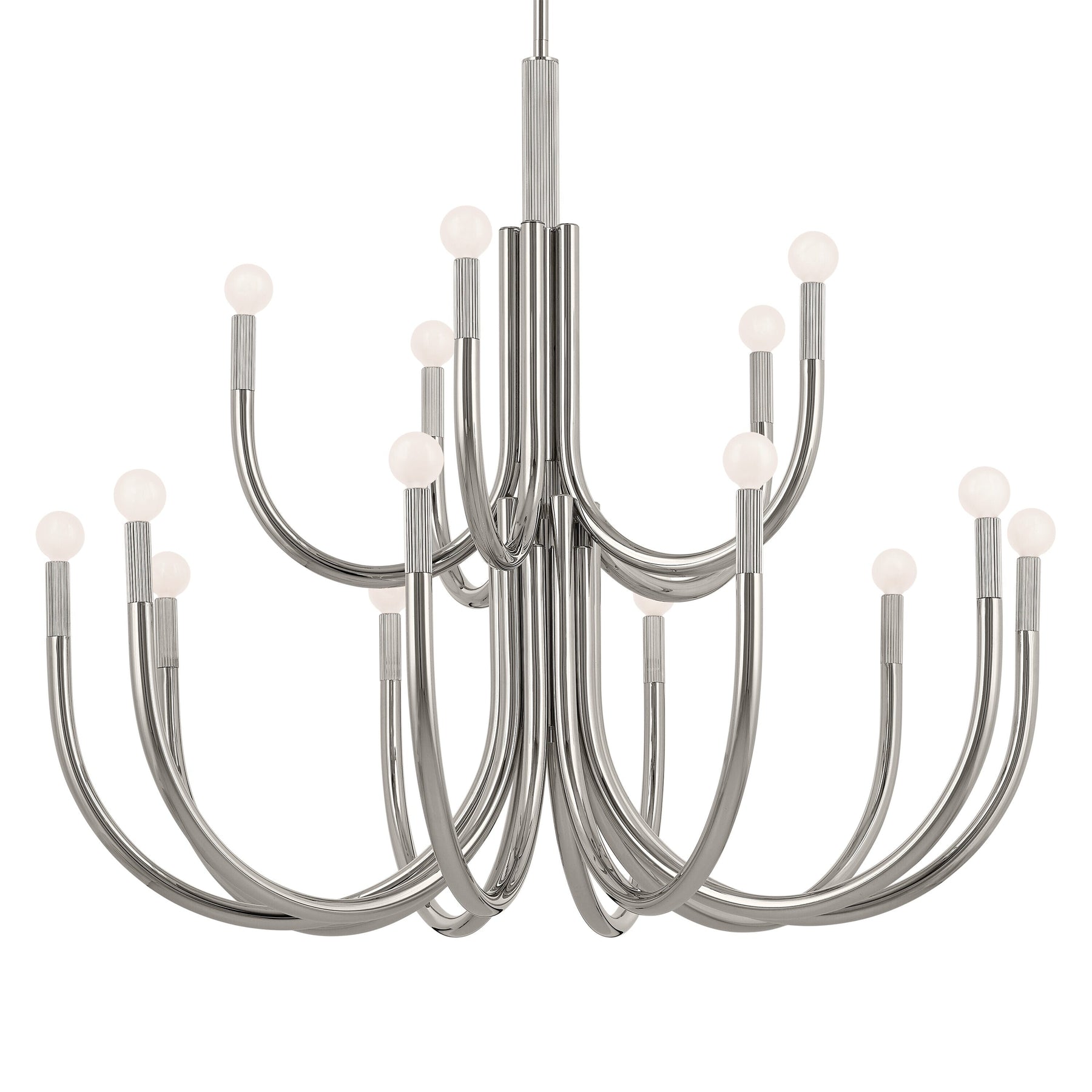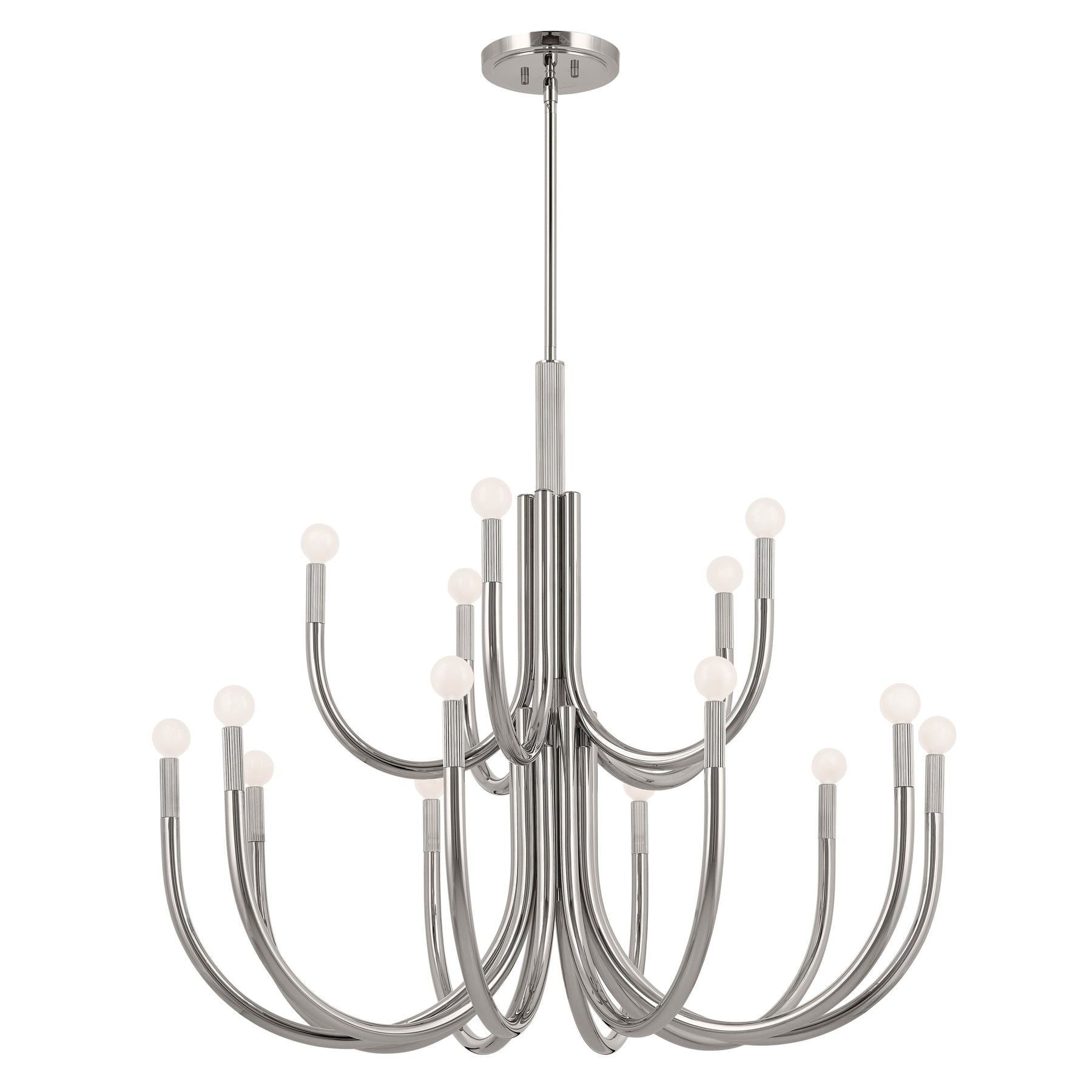 Illuminate your space with the Kichler Odensa 15-Light Chandelier, a stunning blend of modern elegance and functionality. With its polished nickel finish and two-tiered design, this chandelier is perfect for any grand dining room or foyer, casting a warm, inviting glow across your space.