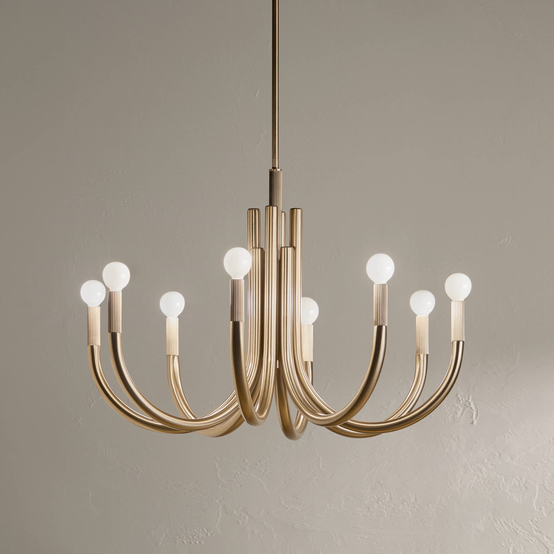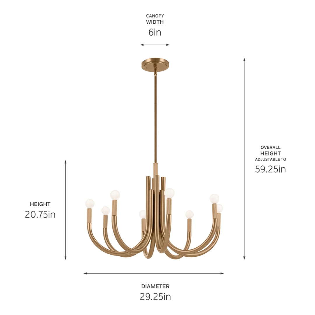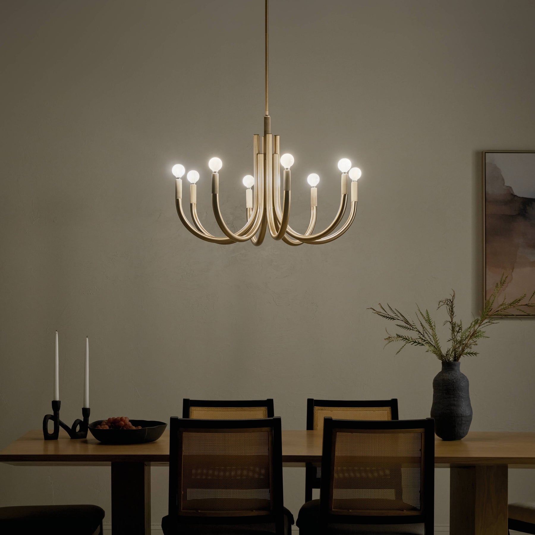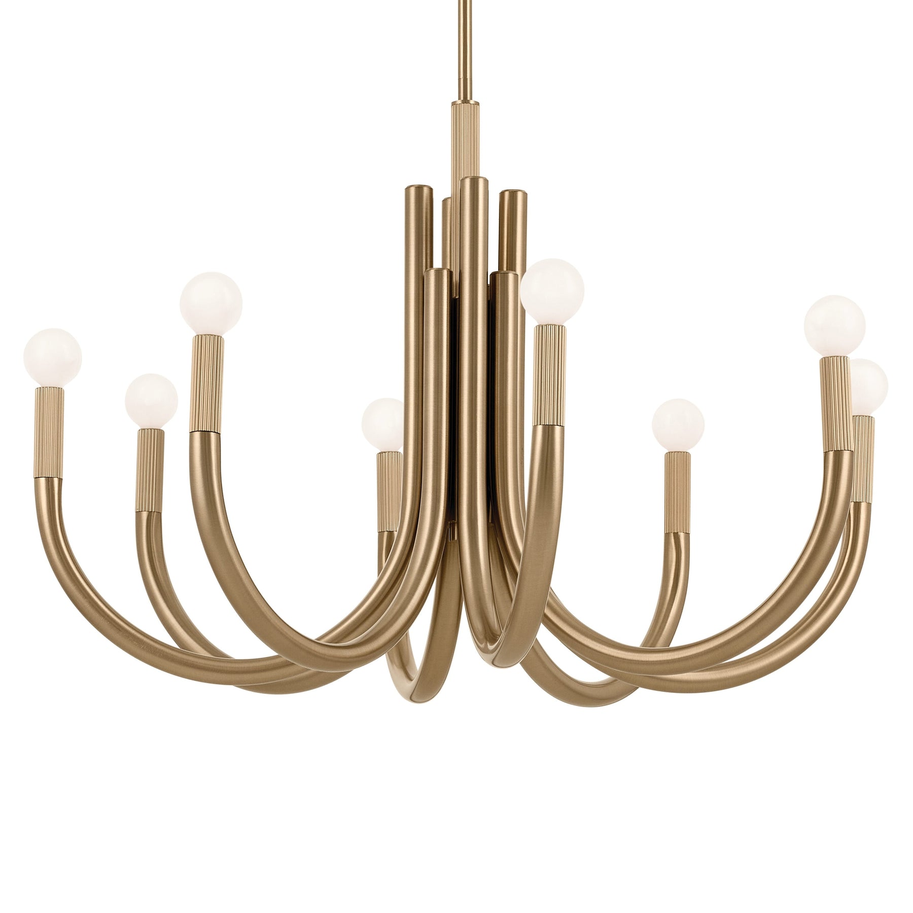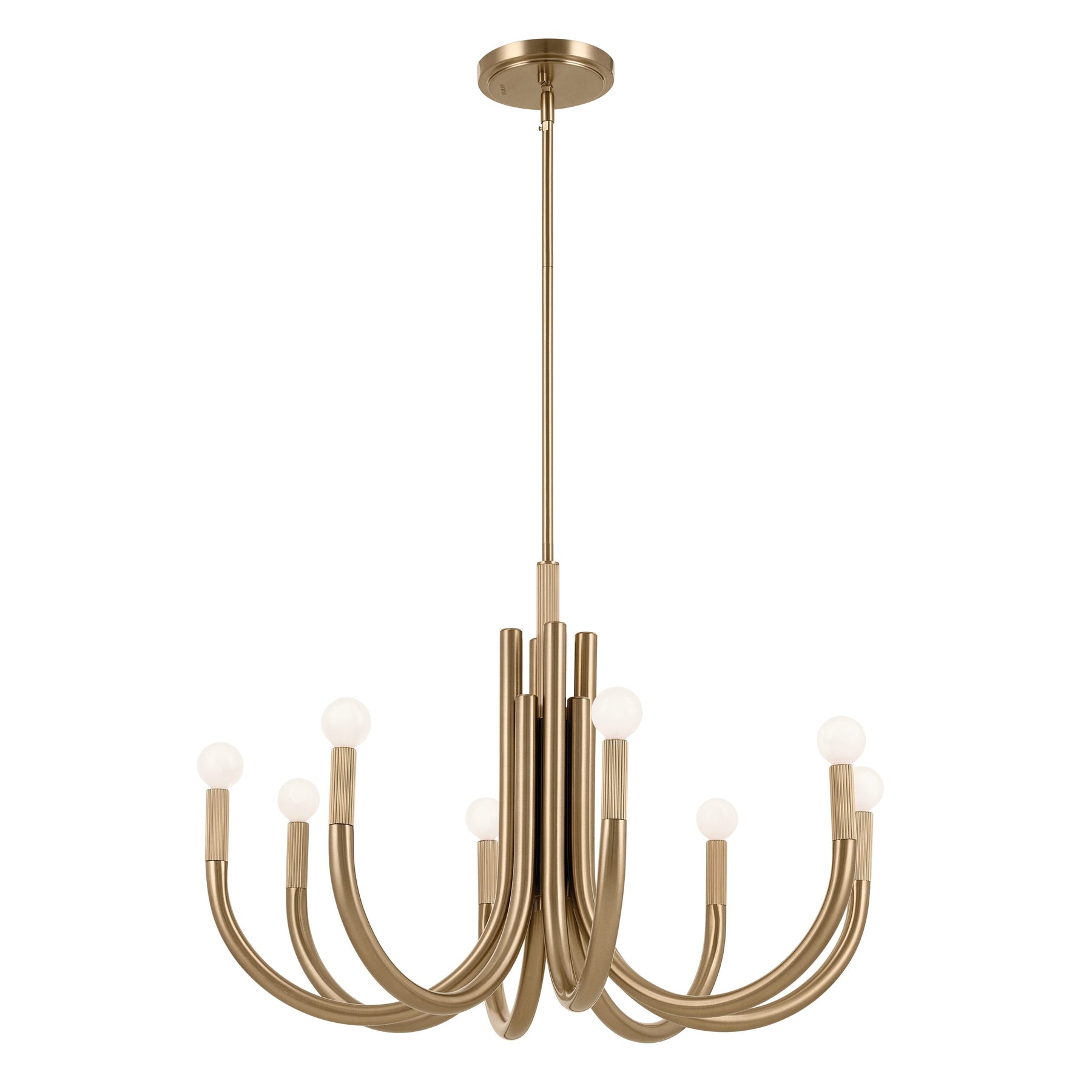 Elevate any room with the Kichler Odensa 8-Light Gold Chandelier, a masterpiece of modern elegance. Its brushed gold finish adds a touch of warmth and luxury to your interiors, making it a perfect centerpiece for dining rooms, foyers, or living spaces. Designed with a durable steel body, this chandelier combines contemporary style with long-lasting functionality.