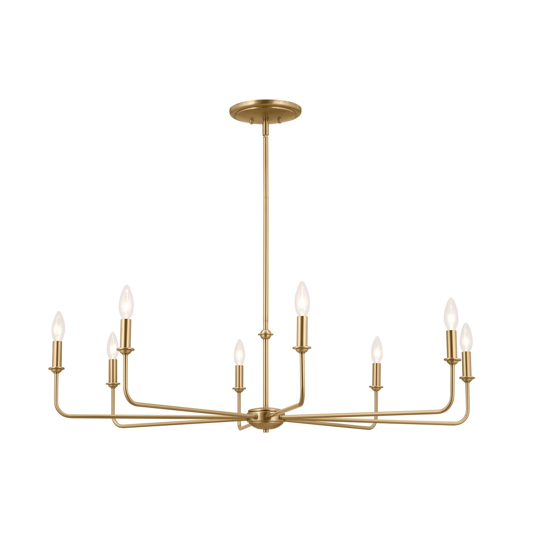 Transform your dining experience with the Kichler Pallas 8-Light Chandelier, a masterpiece of subtle elegance that gracefully lights your space. The brushed natural brass finish exudes a warm, inviting aura that captivates the eye. The removable linen shades allow a versatility that adapts to transitional styles, creating a look of effortless sophistication. Style it over a grand dining table or in a luxurious foyer to redefine opulent living with this signature statement piece.
