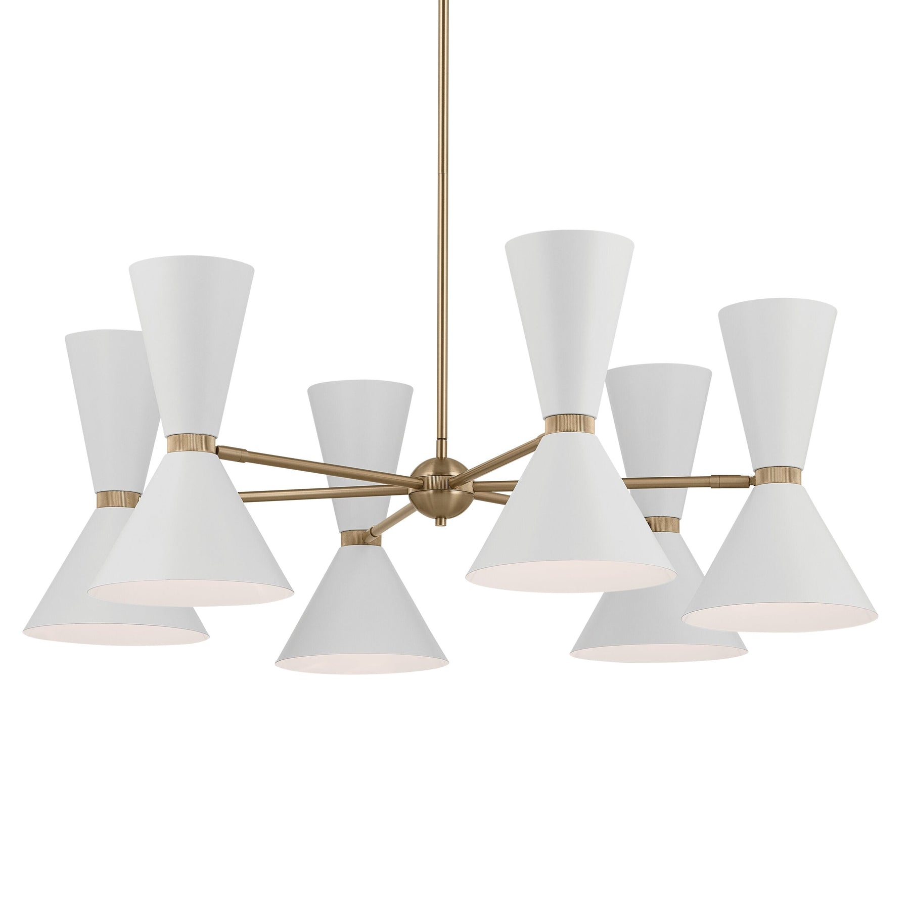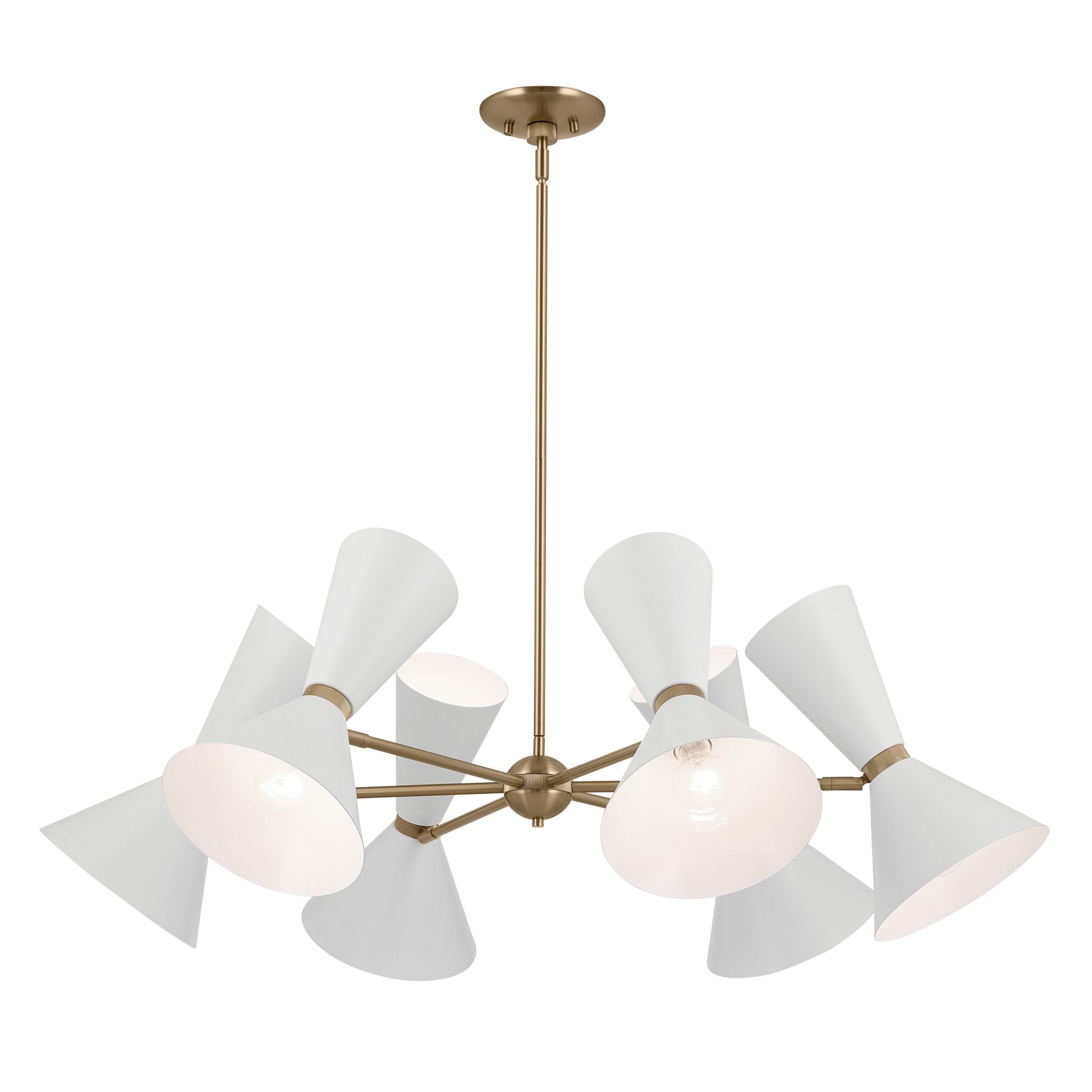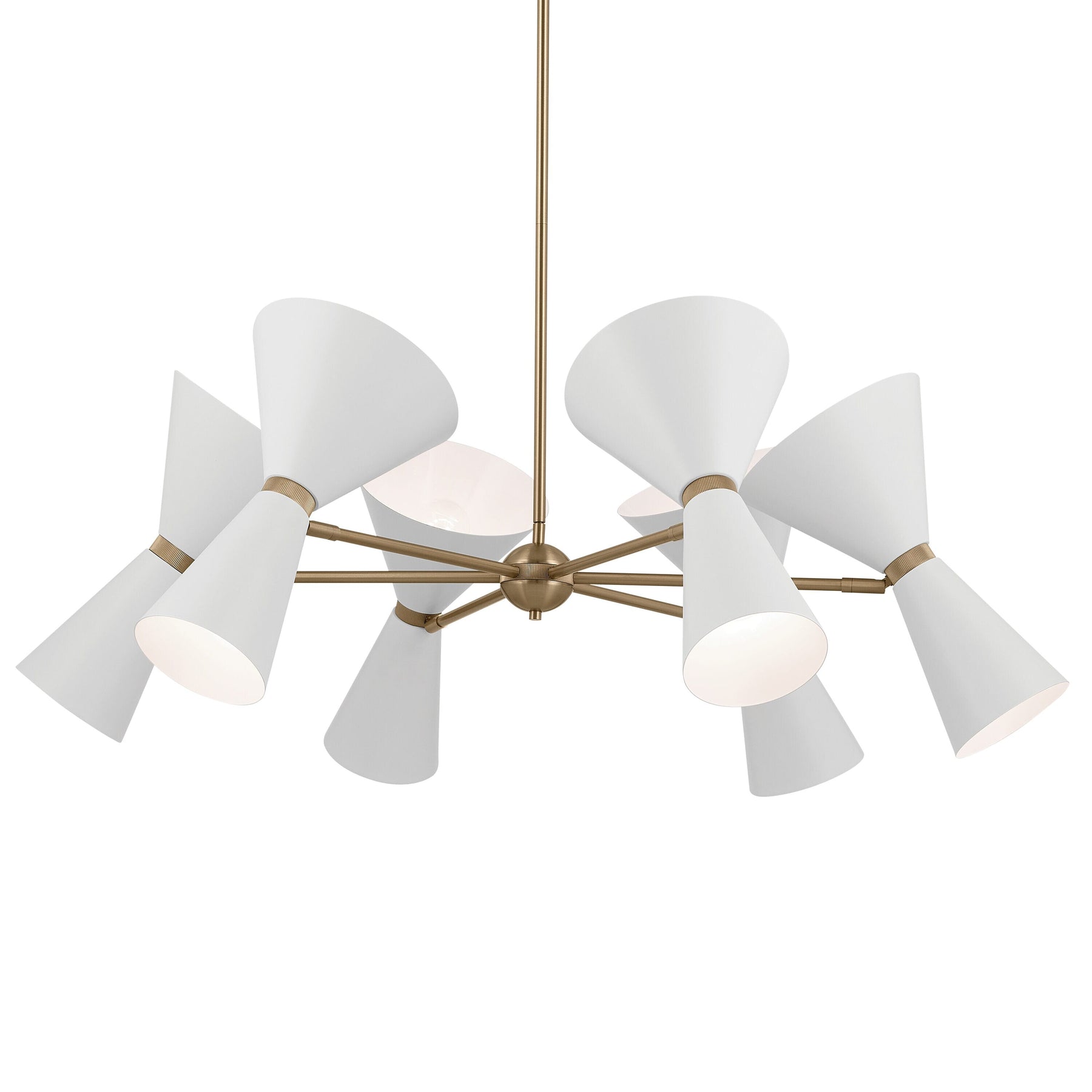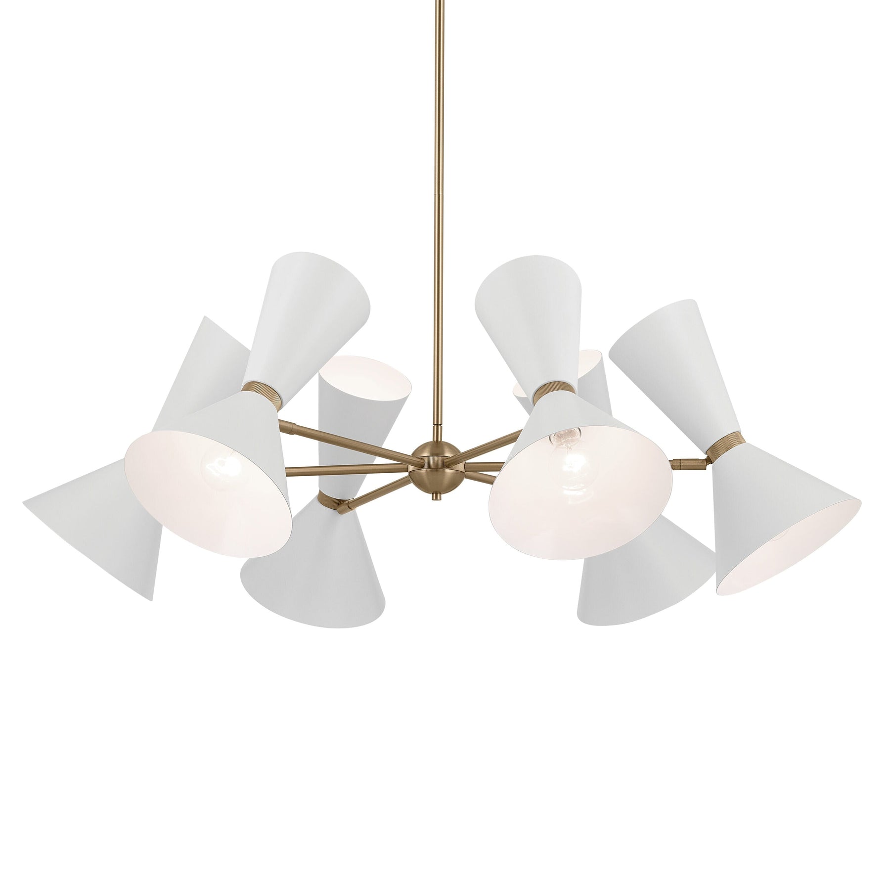 Elevate any space with the Kichler Phix Mid-century Chandelier, featuring a stunning brushed gold finish and 12 lights to cast an inviting glow. This fixture combines timeless elegance with modern functionality, making it a perfect centerpiece for large, sophisticated rooms.