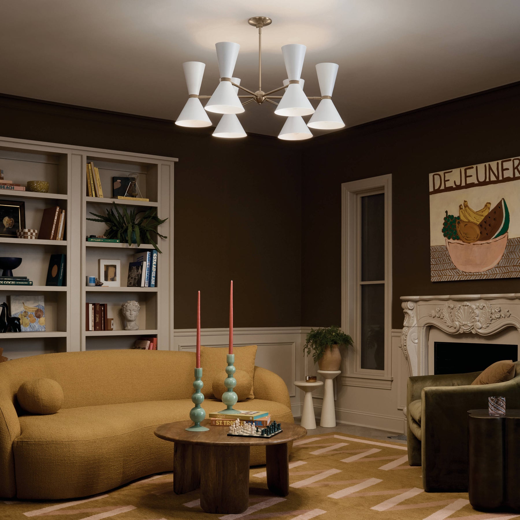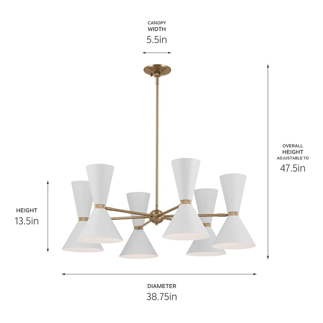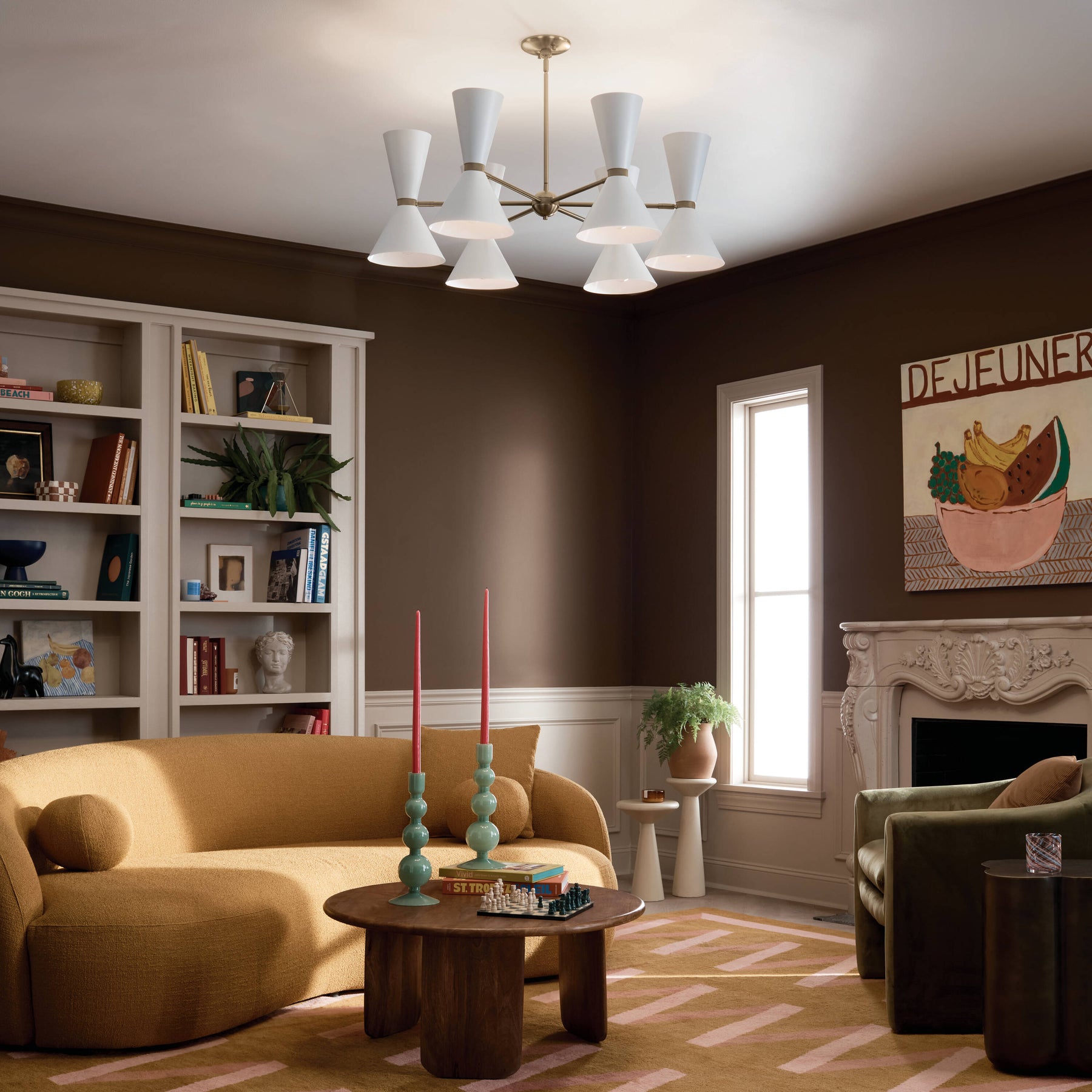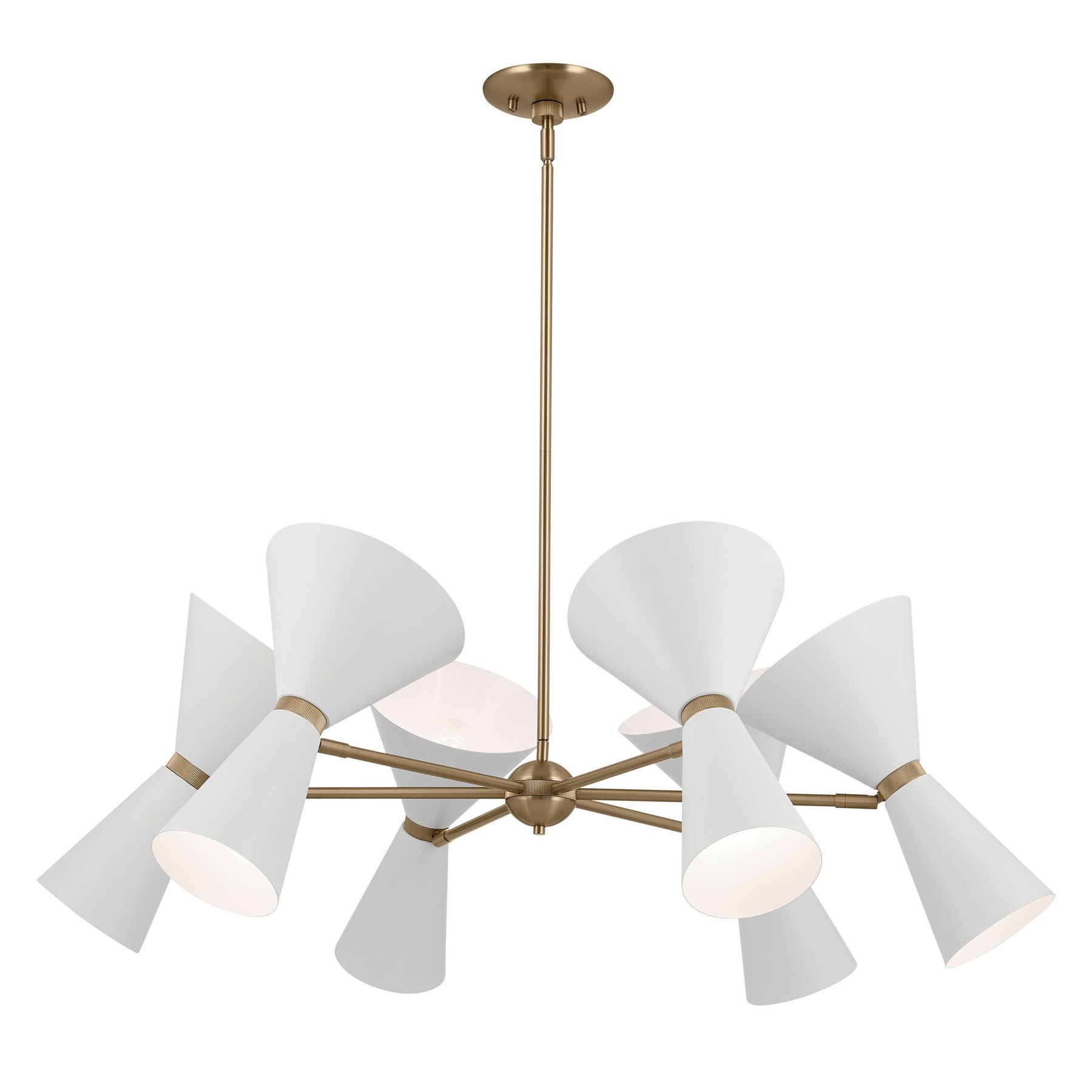 Elevate any space with the Kichler Phix Mid-century Chandelier, featuring a stunning brushed gold finish and 12 lights to cast an inviting glow. This fixture combines timeless elegance with modern functionality, making it a perfect centerpiece for large, sophisticated rooms.