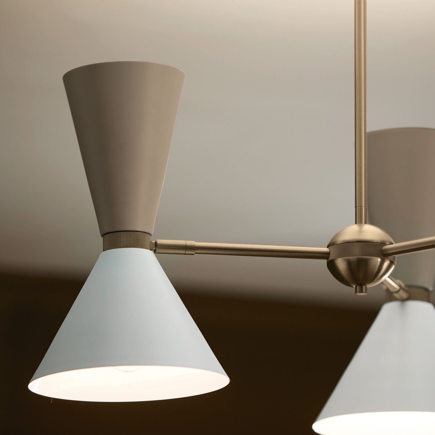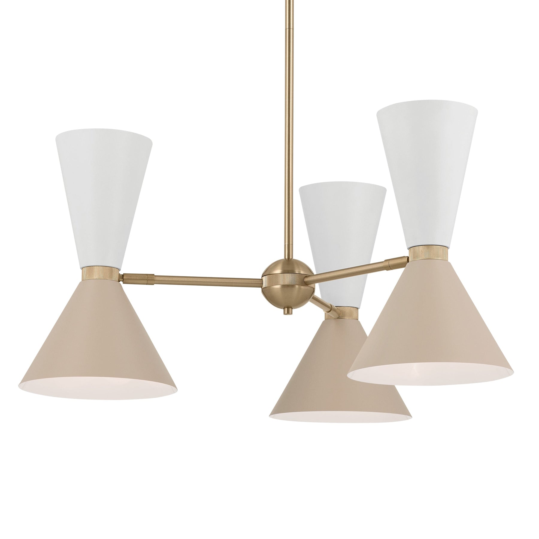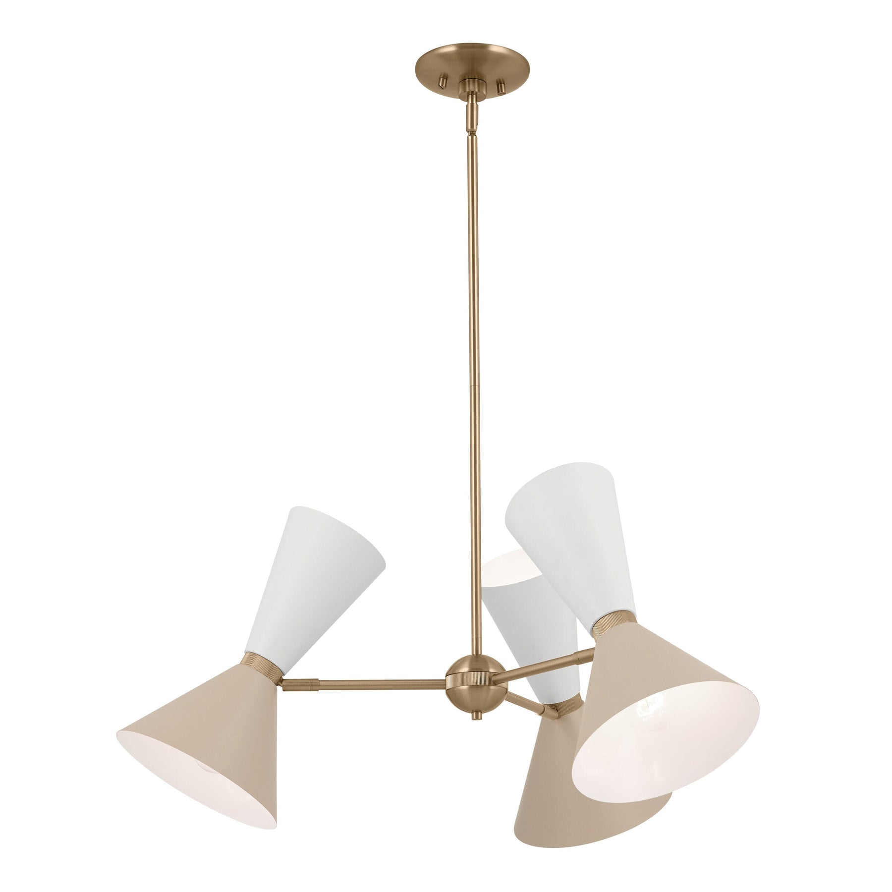 The Kichler Phix Chandelier is more than just a light fixture; it's a statement piece that transforms any room into a scene of mid-century sophistication. Its brushed gold finish casts a warm and inviting glow, while the abstract shape draws the eye and sparks conversation. Imagine this stunning chandelier suspended above a minimalist white dining table, where it perfectly complements a sleek and modern interior. As a harmonious blend of form and function, it radiates luxury, making it an essential addition to any opulently crafted home.