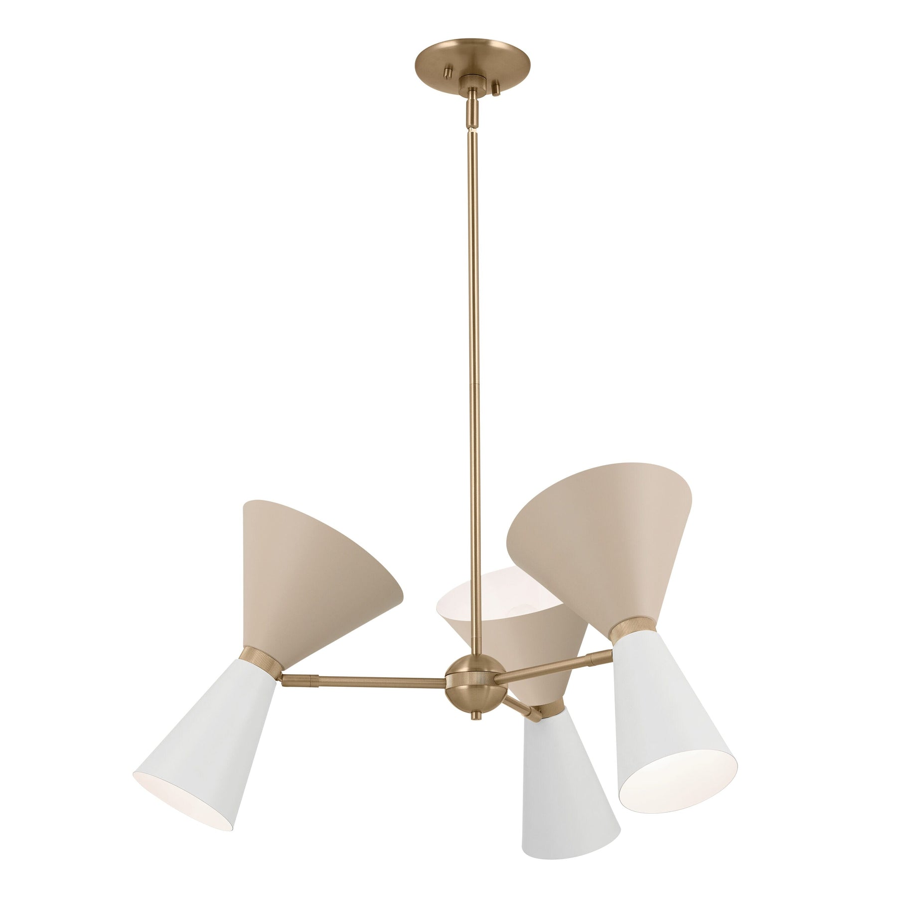 Illuminate your space with the Kichler Phix 6-Light Gold Mid-century Chandelier, an epitome of modern elegance. Crafted with a durable steel body in a timeless champagne bronze finish, this chandelier combines refined style with adaptable functionality, making it an ideal centerpiece for various indoor settings.