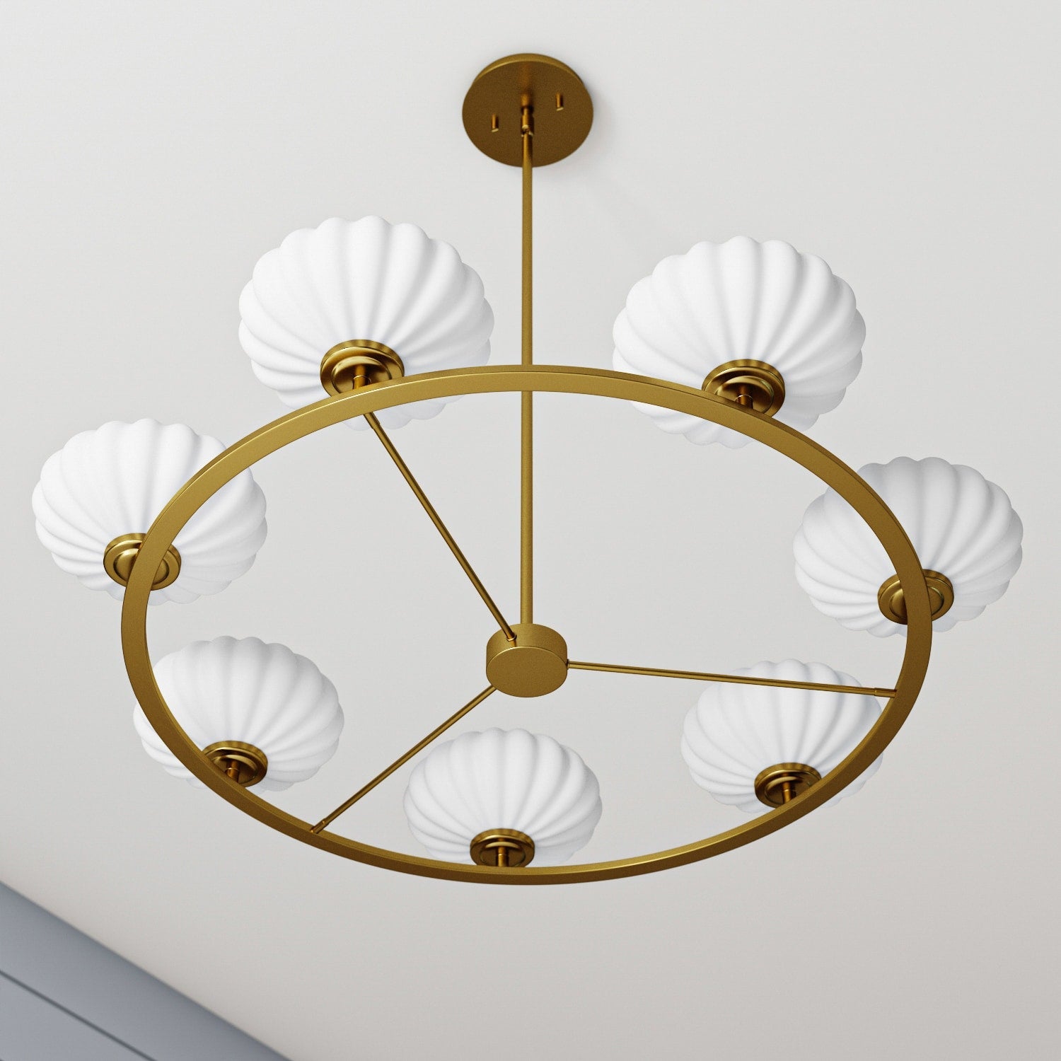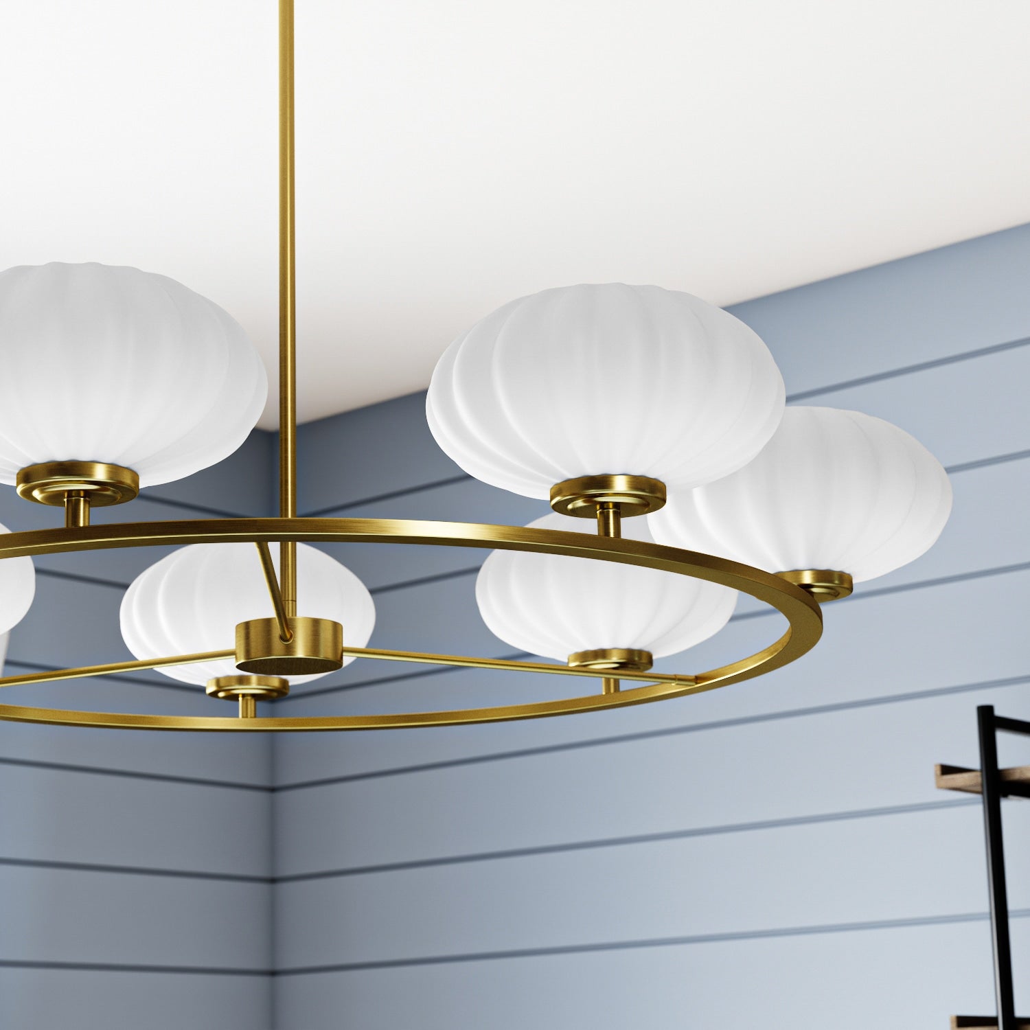 • Distinctive Design: Features a mid-century modern look with satin etched cased opal glass and a luxurious fox gold finish.