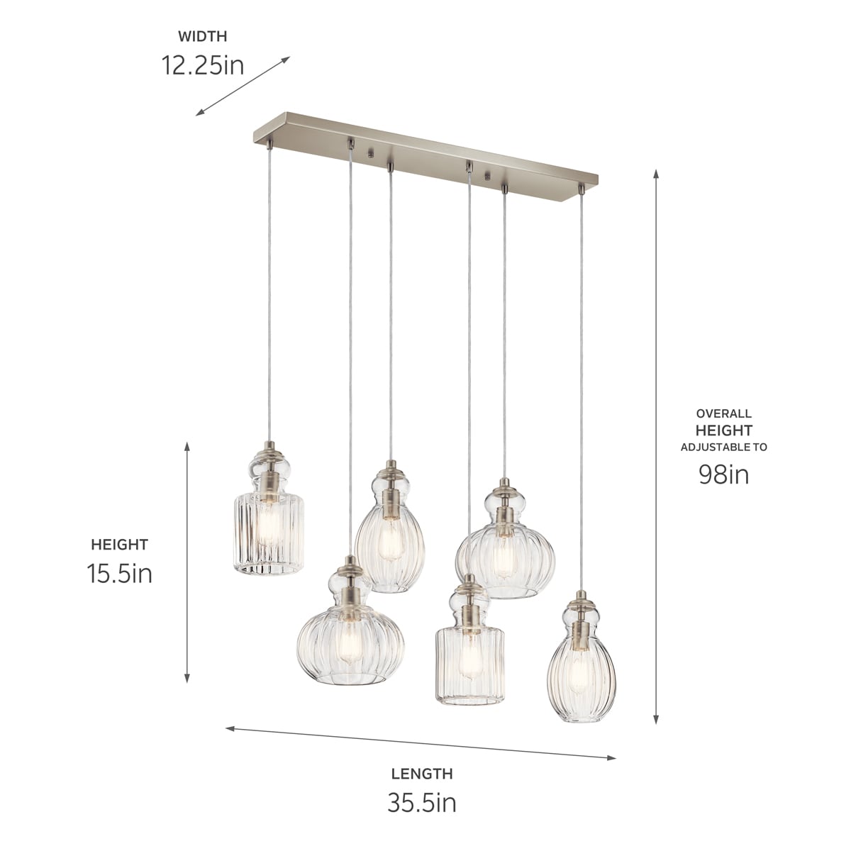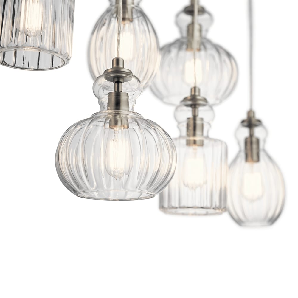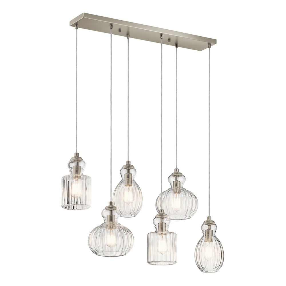 Kichler Riviera 6-Light Brushed Nickel Transitional Ribbed Glass Large Hanging Multi-light