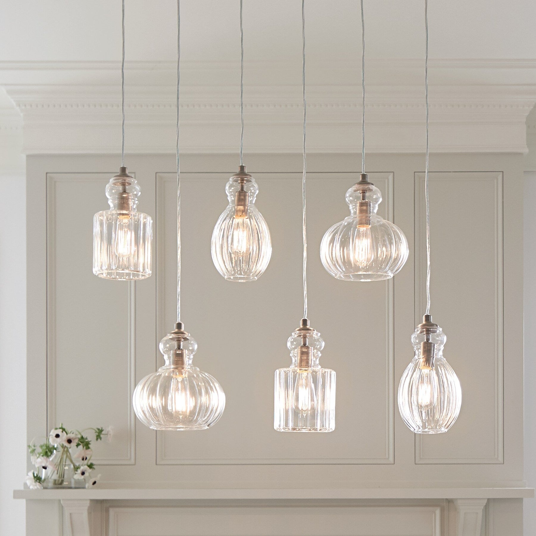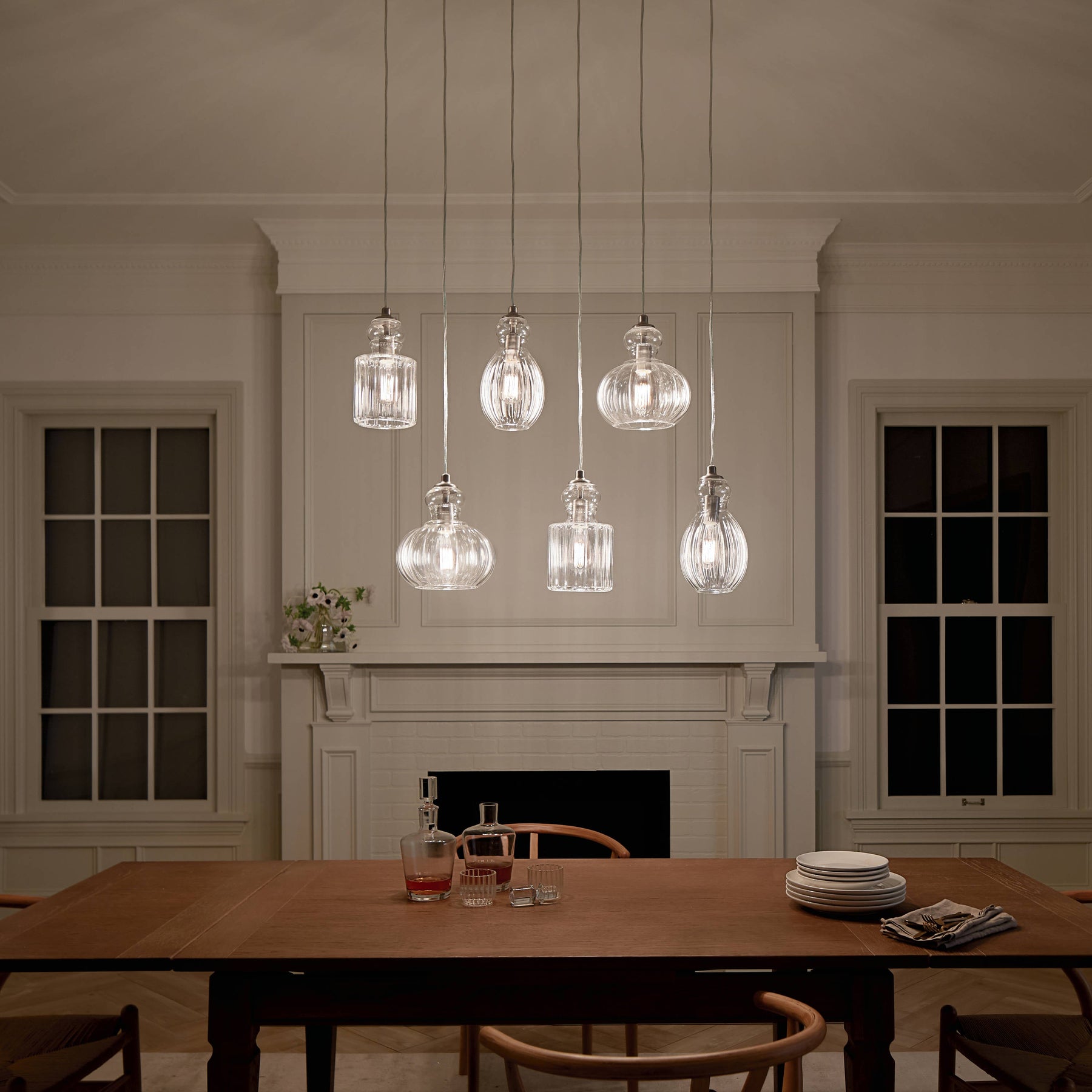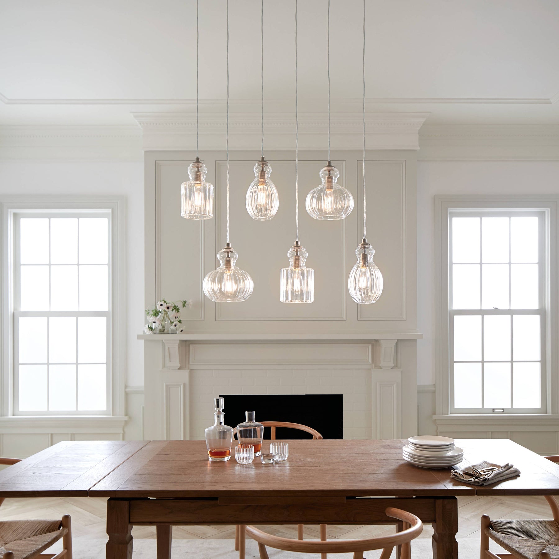 Kichler Riviera 6-Light Brushed Nickel Transitional Ribbed Glass Large Hanging Multi-light