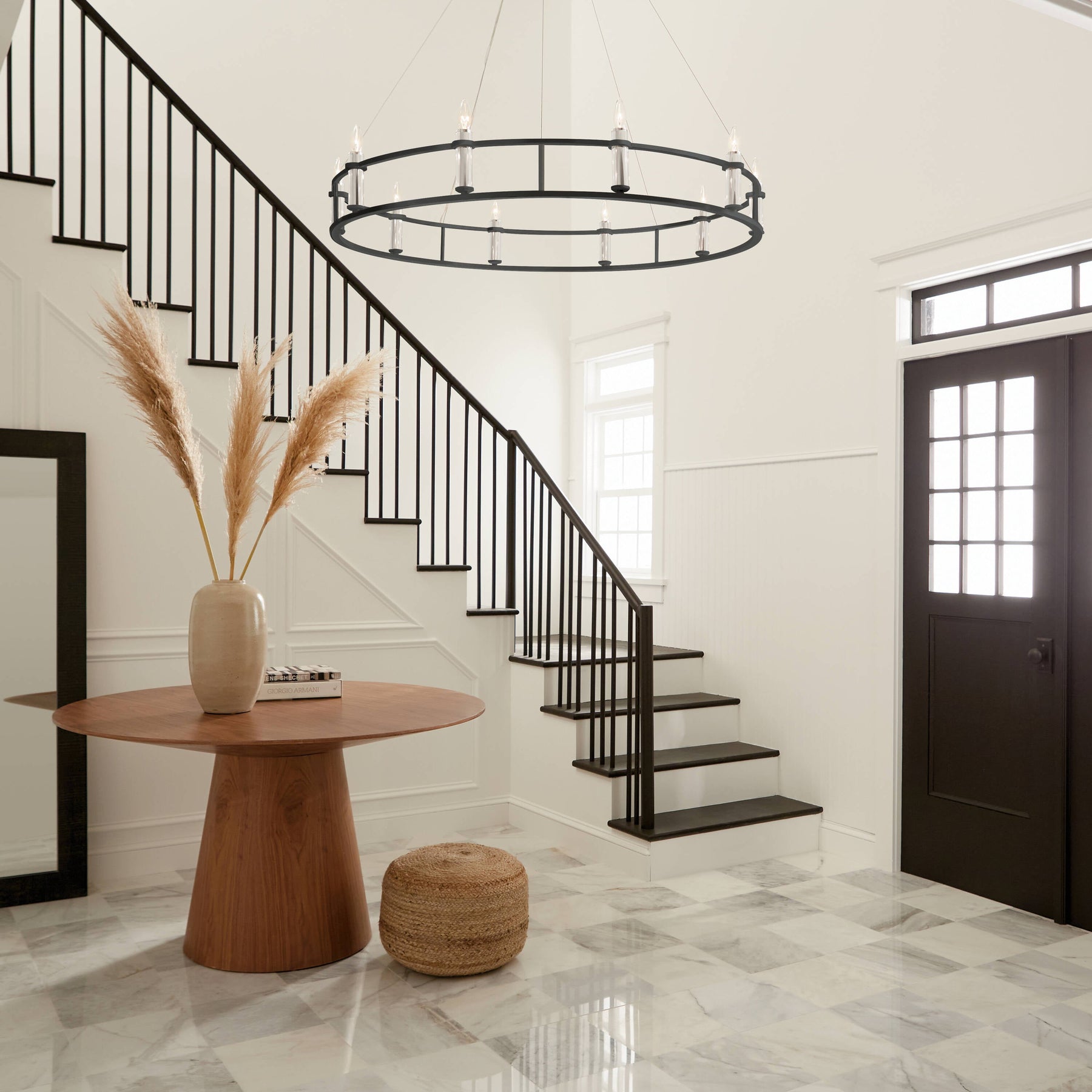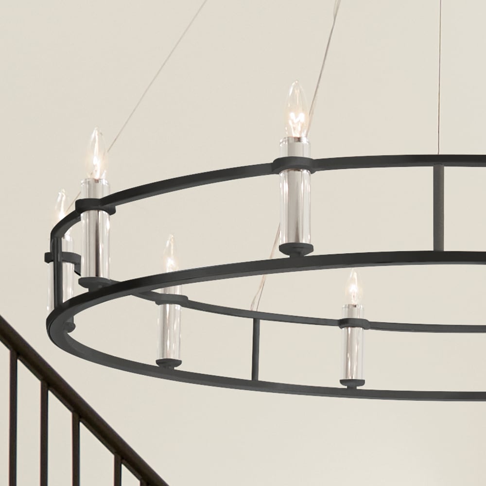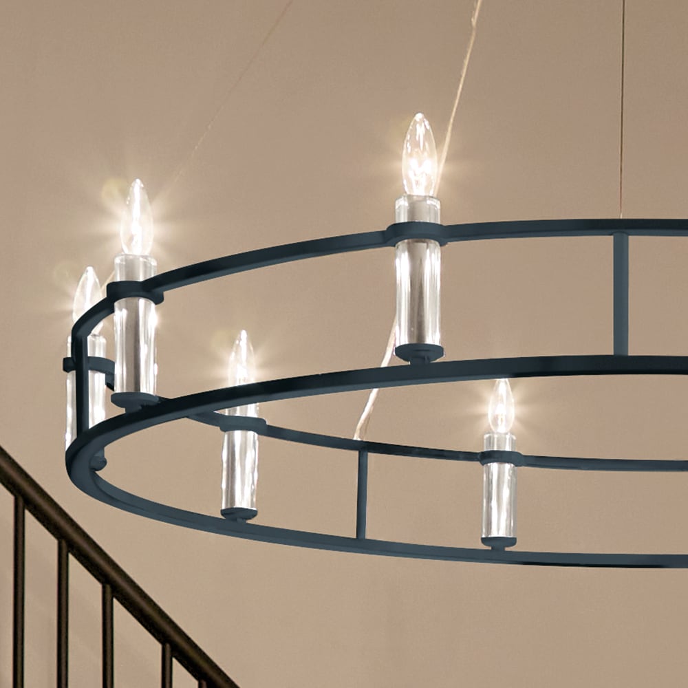 Illuminate your space with the Rosalind 10-Light Black Traditional Chandelier from Kichler. This sophisticated lighting fixture combines a traditional design with modern elegance, featuring glamorous crystal sleeves and a sleek steel body. Ideal for high or vaulted ceilings, it transforms foyers, dining rooms, or large bedrooms into an inviting haven of refined luxury.