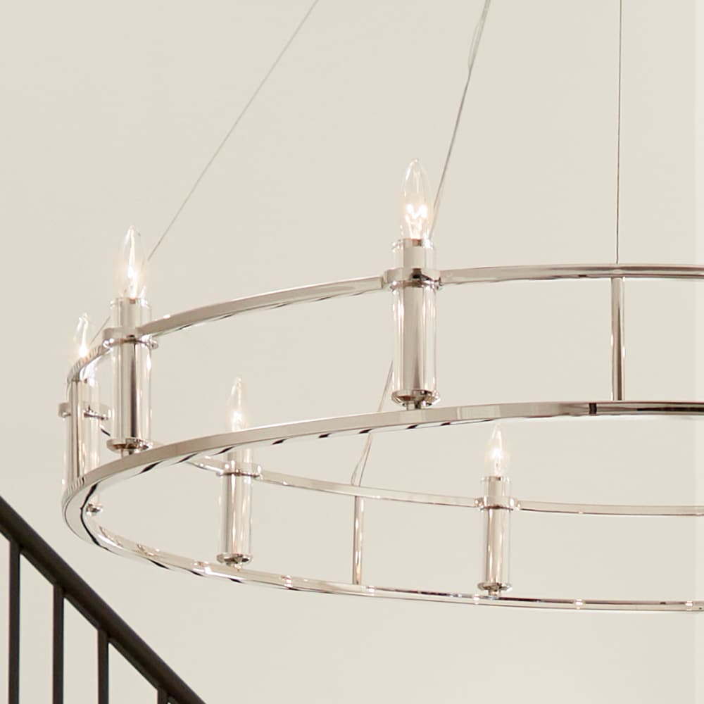 Illuminate your space with the Kichler Rosalind Chandelier, a luxurious piece that elegantly blends traditional charm with modern sophistication. This 10-light chandelier showcases a warm-toned polished nickel finish and glamorous crystal sleeves, making it an exquisite addition to foyers, dining rooms, or any space with high ceilings.