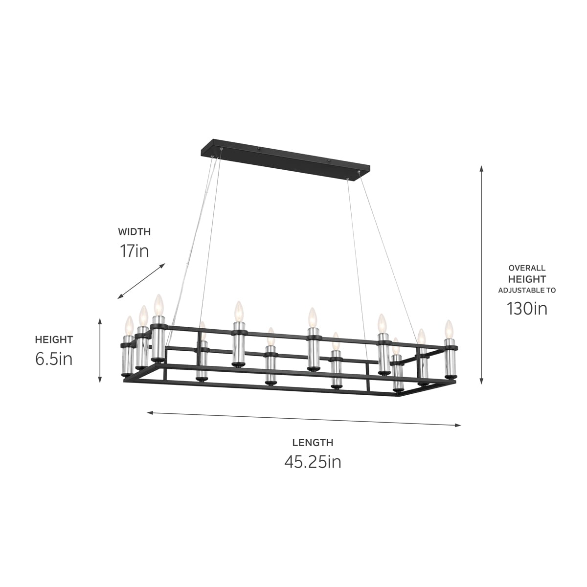 • Elegant Bulb Capacity: Accommodates twelve E12 candelabra bulbs up to 60W or LED equivalents.
