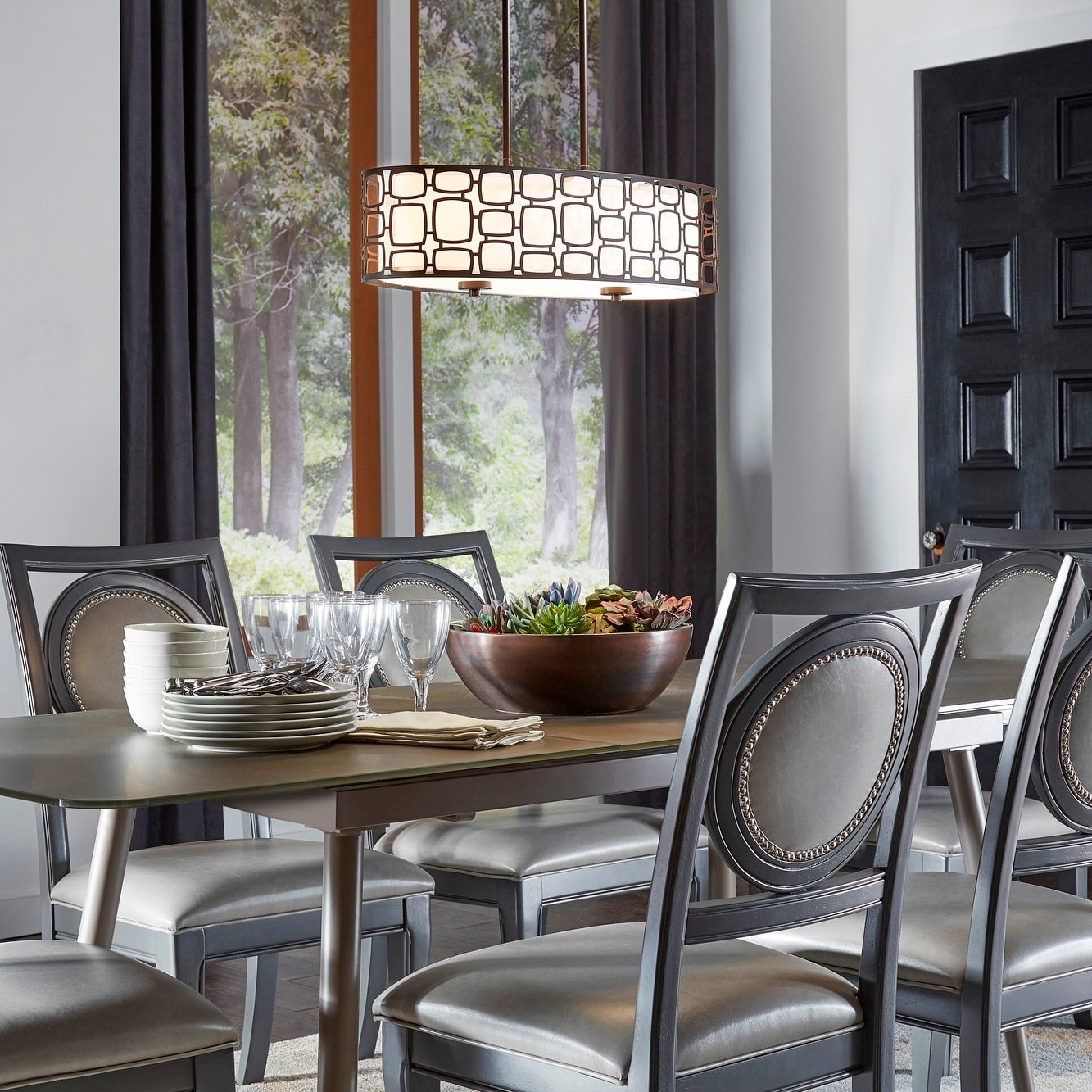- Sophisticated Design: Olde Bronze finish with a geometric pattern.