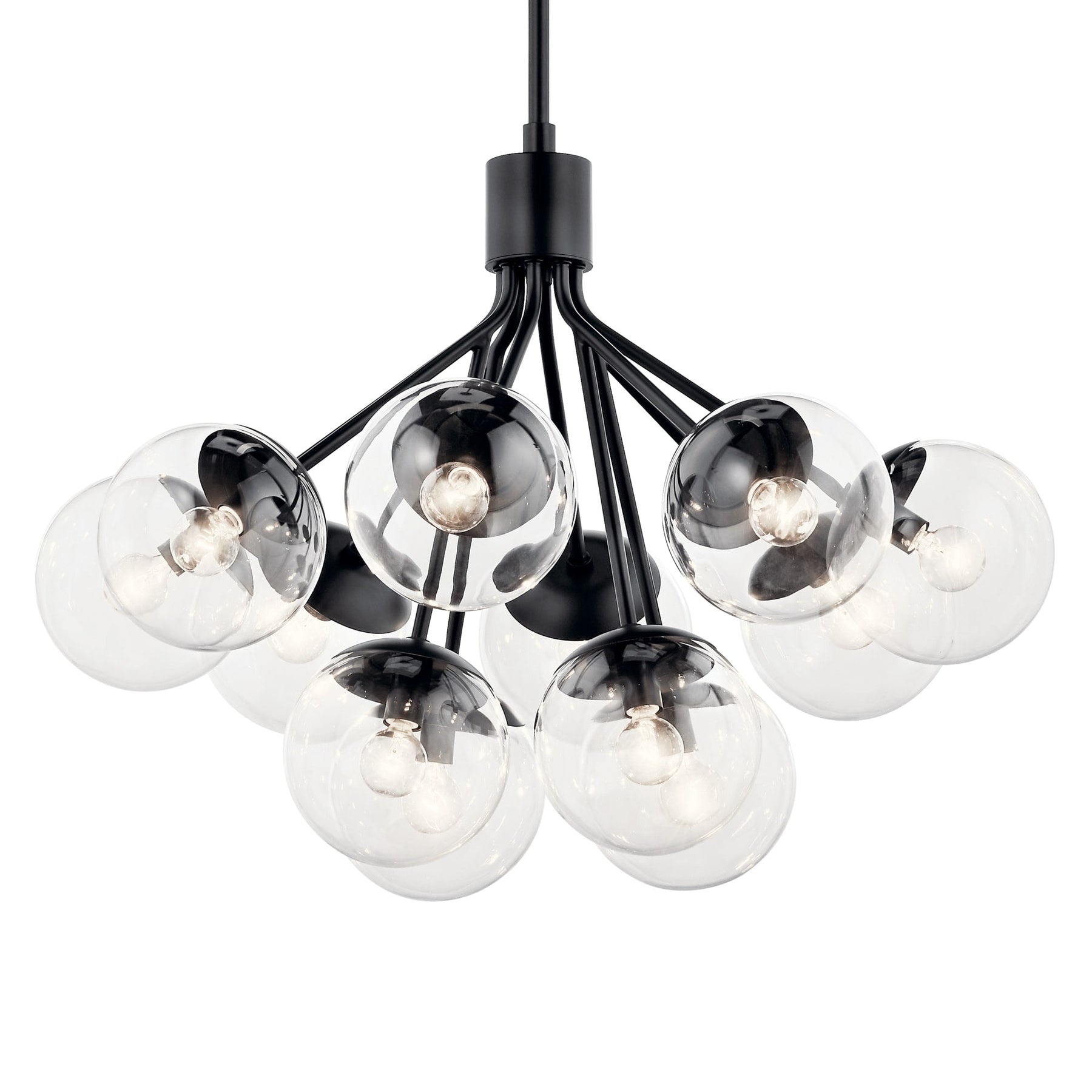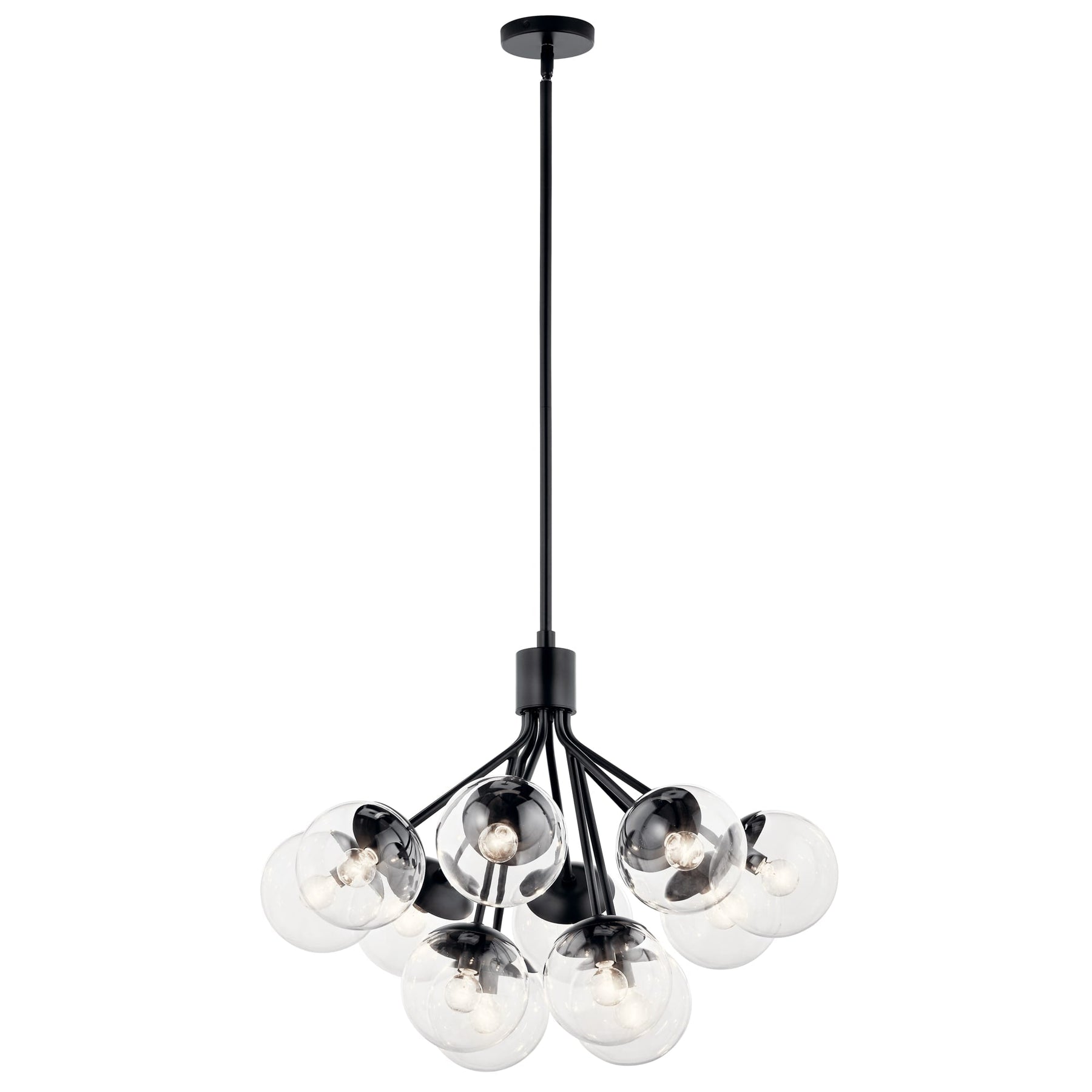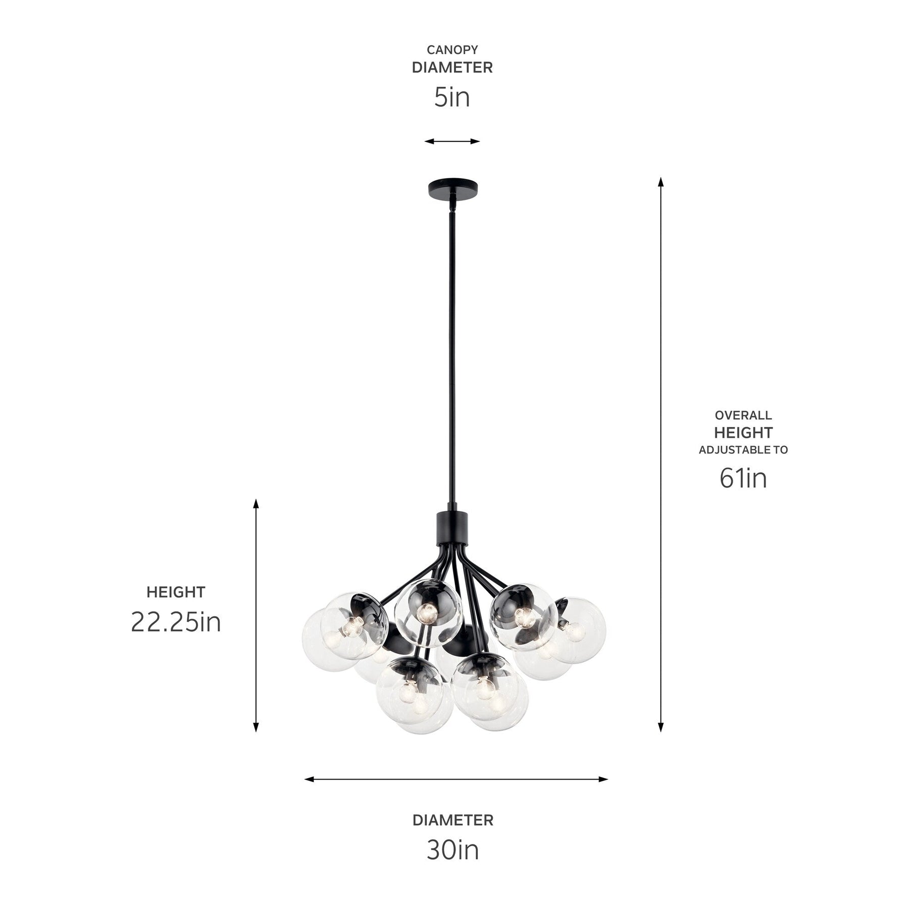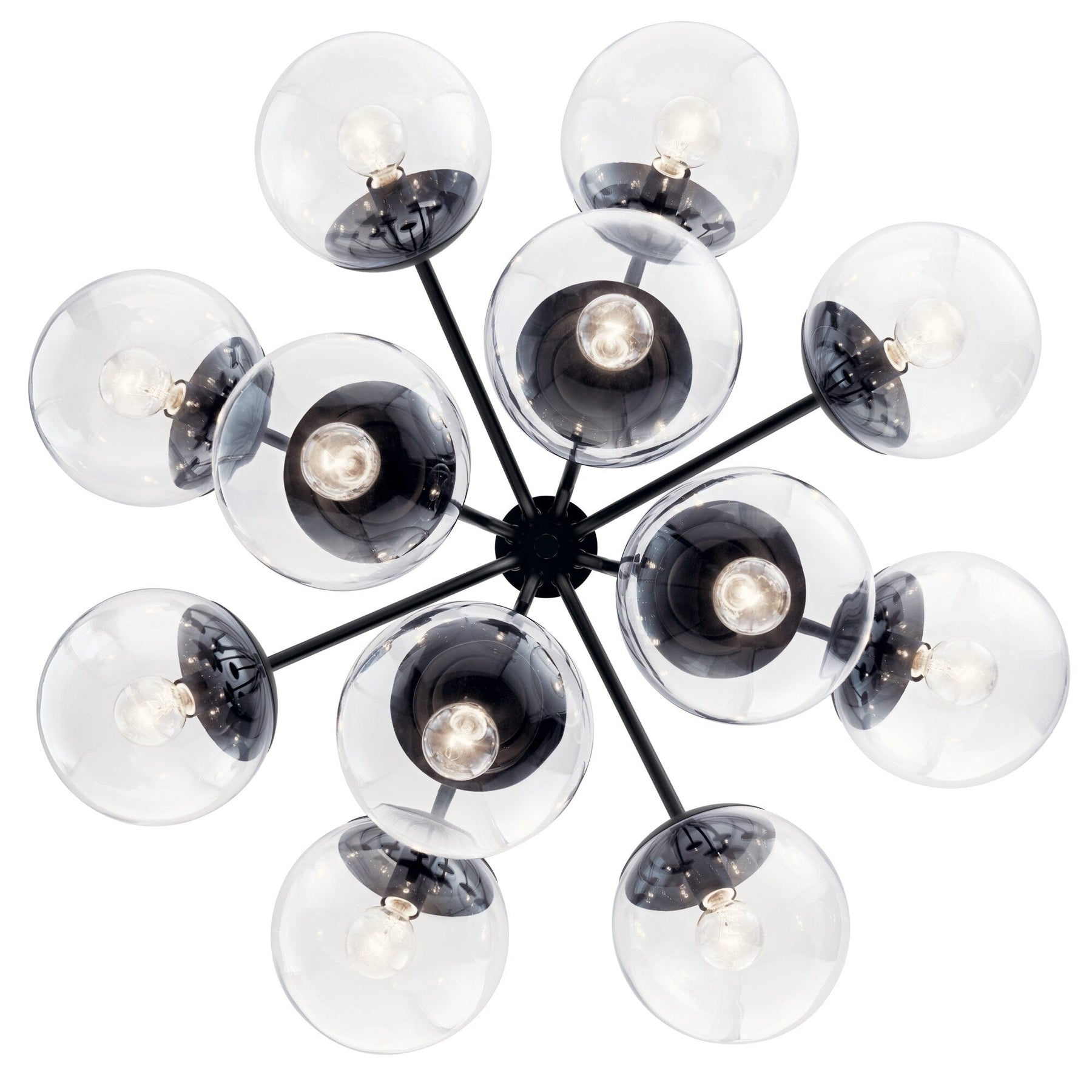 The Kichler Silvarious 12-Light Black Chandelier perfectly blends modern and contemporary design with its striking sputnik shape. Its clear glass shades provide both a direct and ambient glow, making it a versatile addition to any interior space. Ideal for dining rooms, living areas, and bedrooms, this chandelier elevates any room with its elegant design.