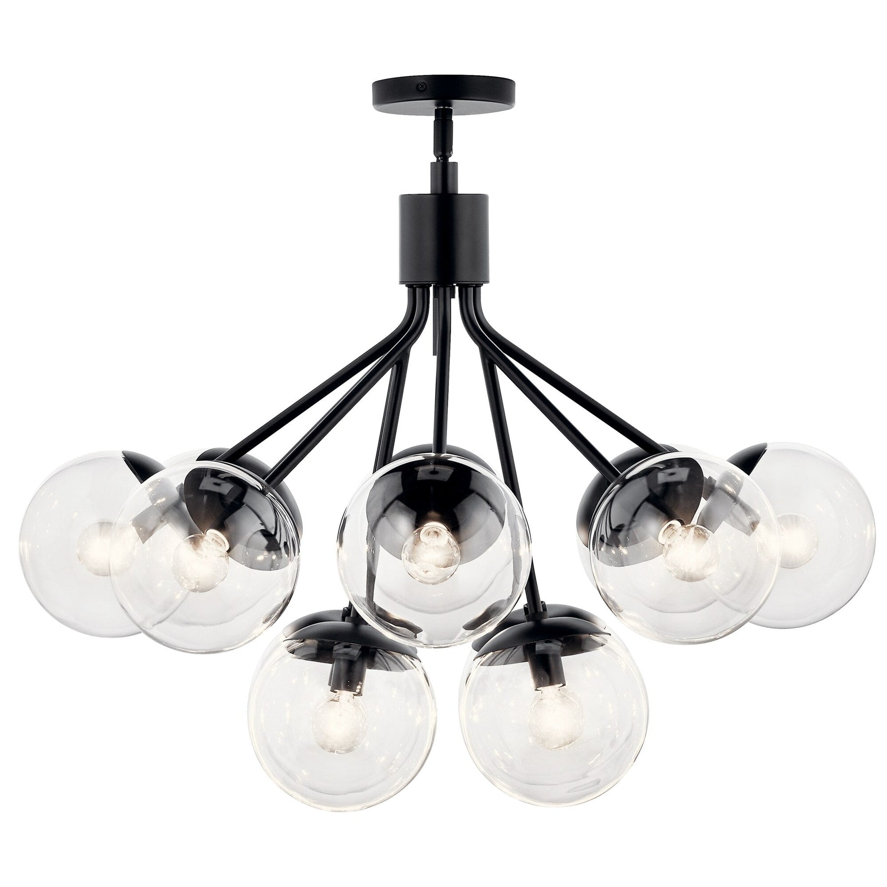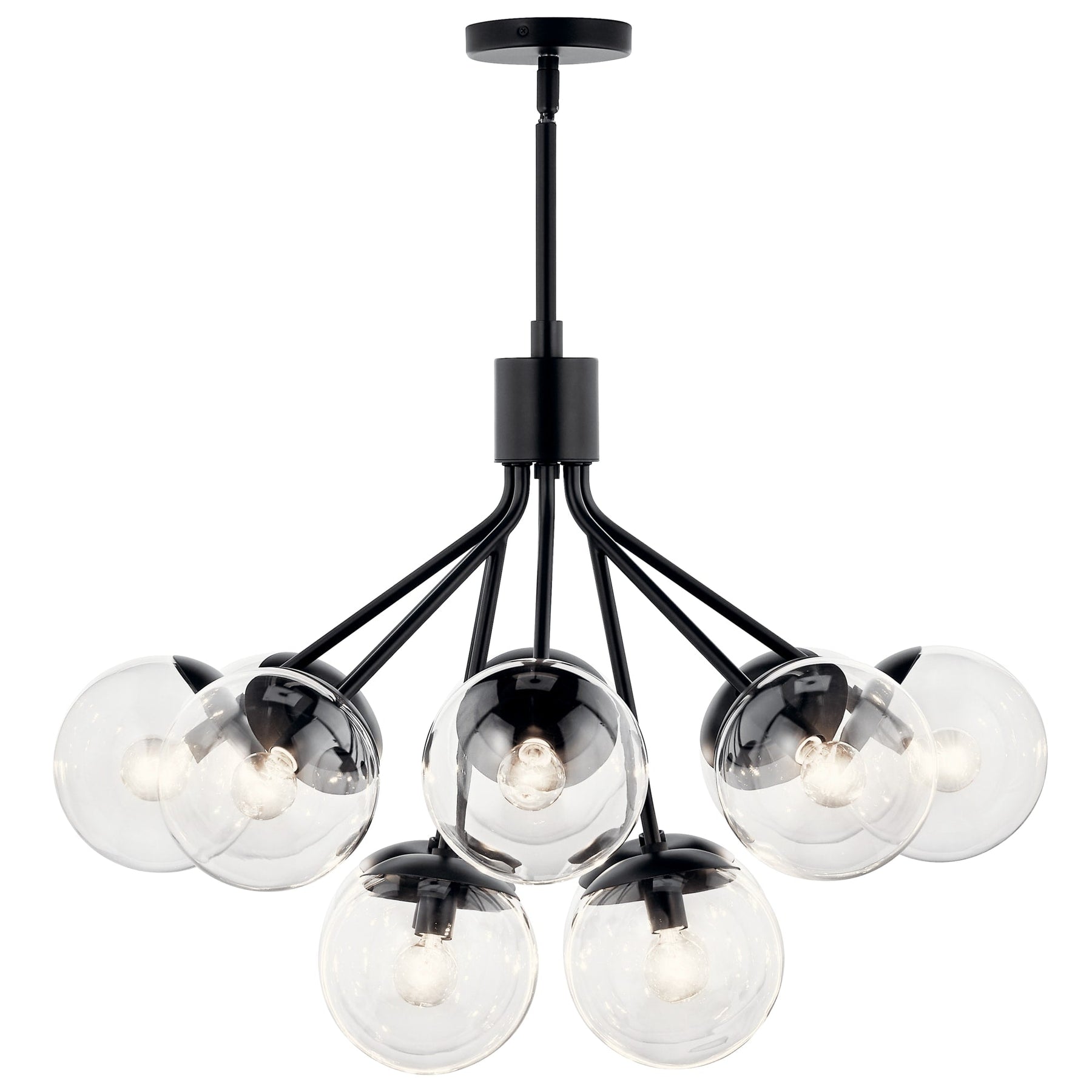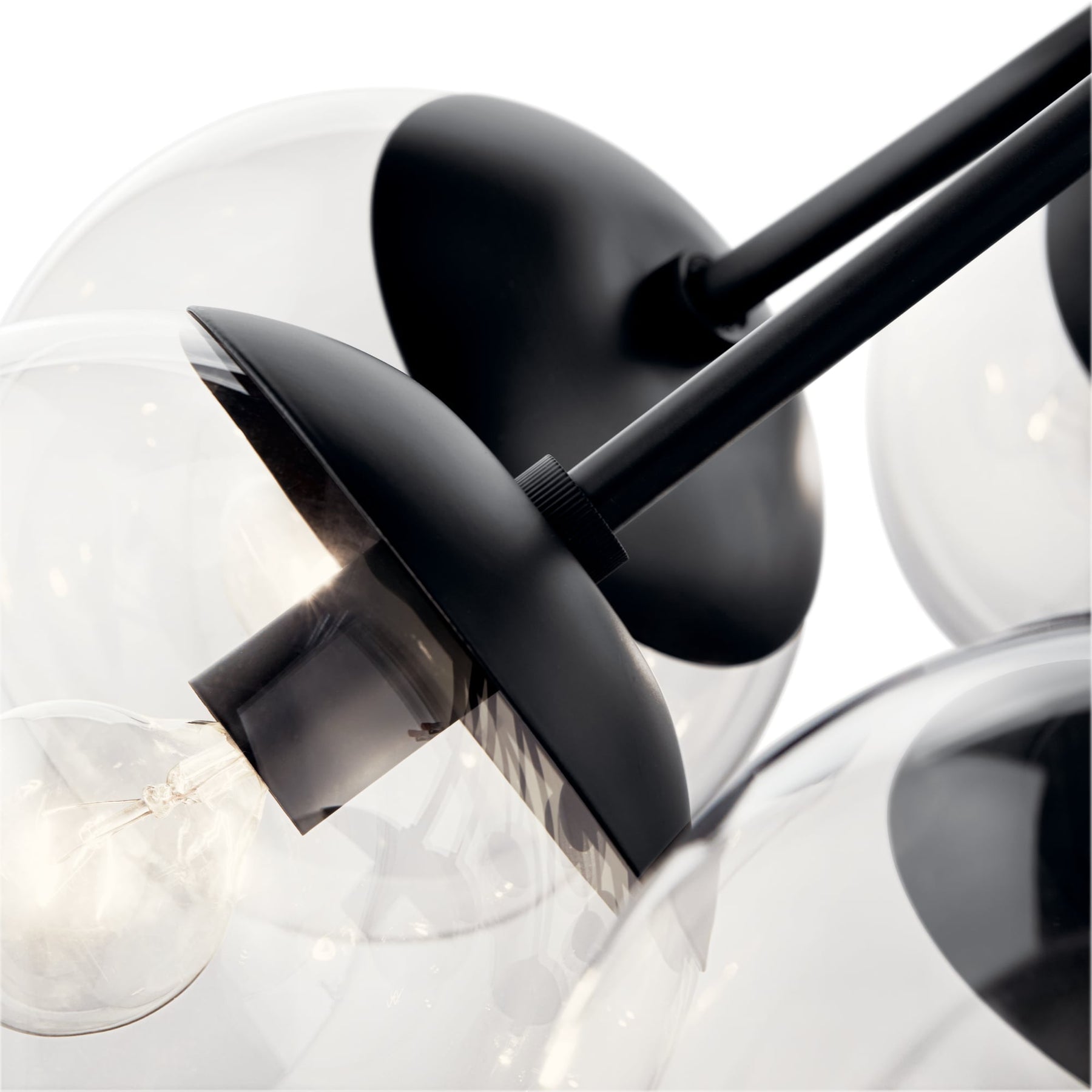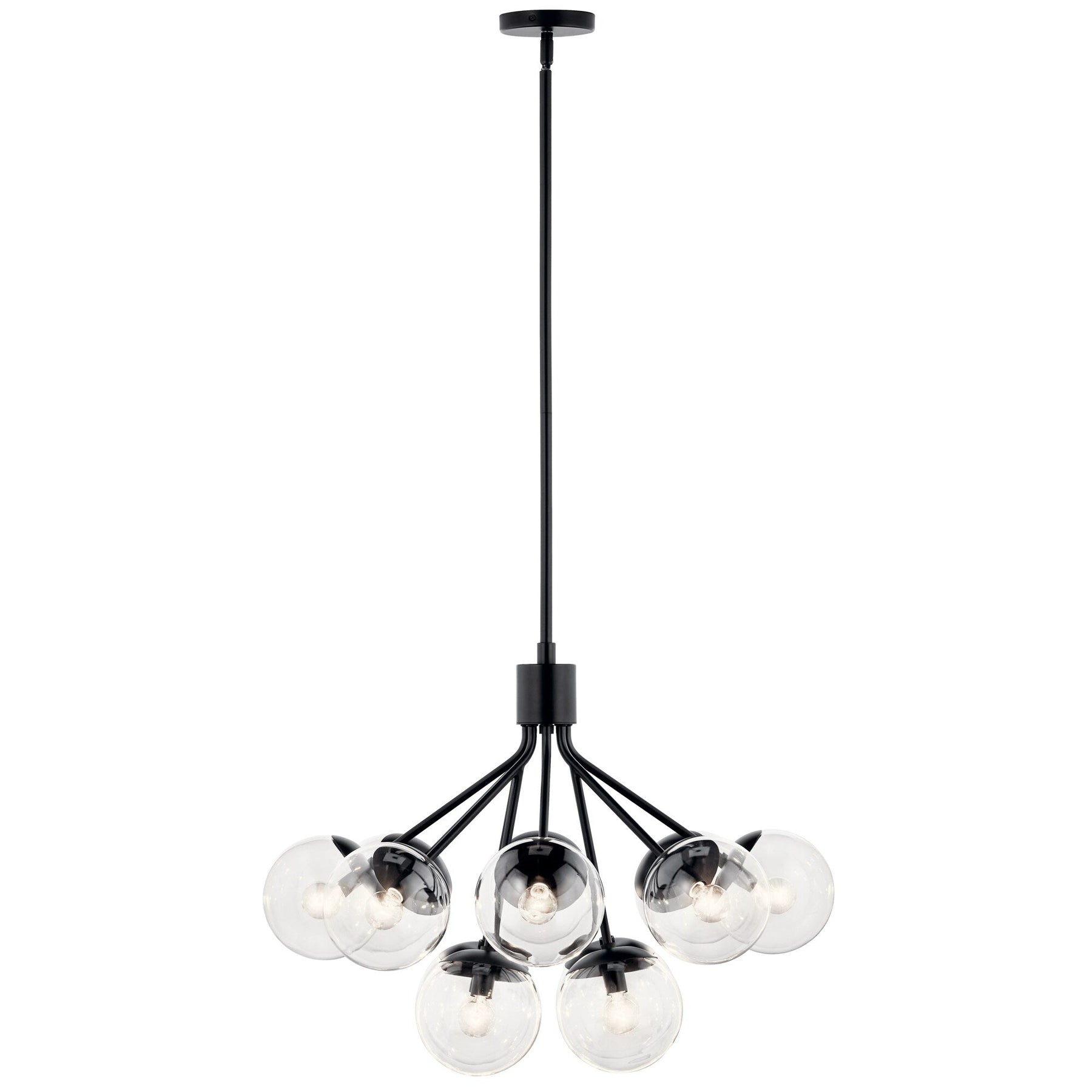 The Kichler Silvarious 12-Light Black Chandelier perfectly blends modern and contemporary design with its striking sputnik shape. Its clear glass shades provide both a direct and ambient glow, making it a versatile addition to any interior space. Ideal for dining rooms, living areas, and bedrooms, this chandelier elevates any room with its elegant design.