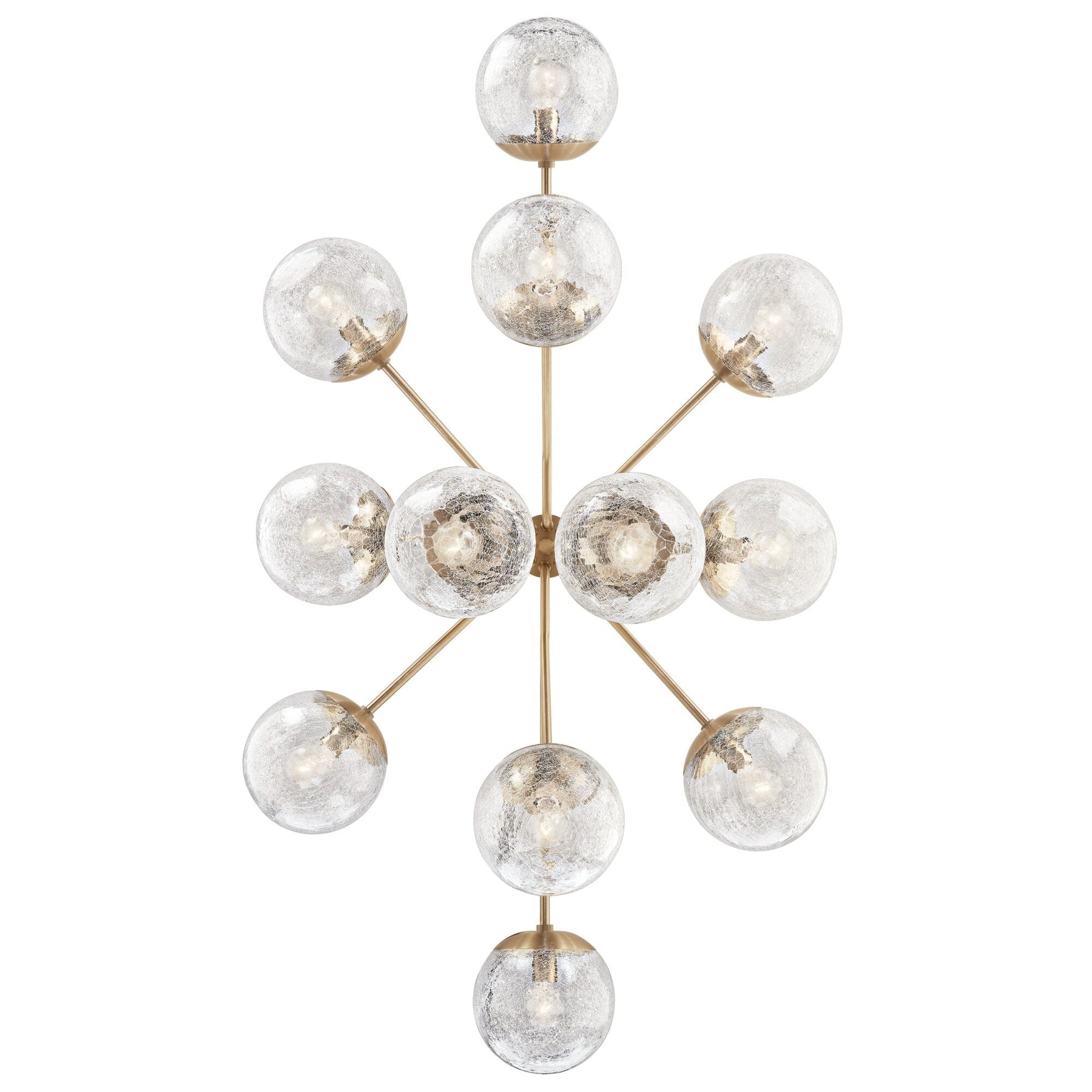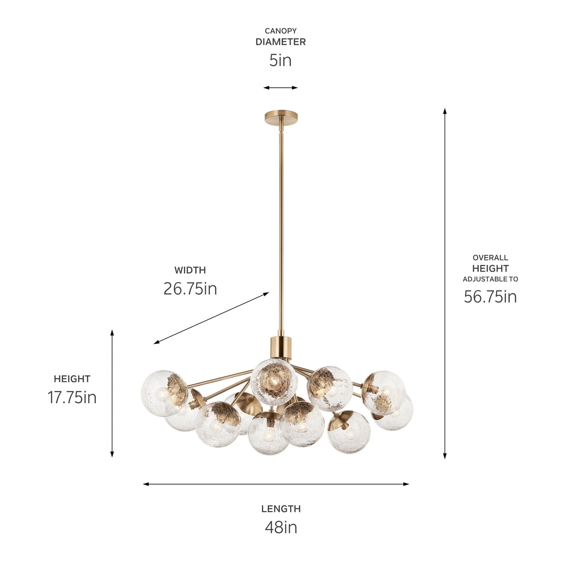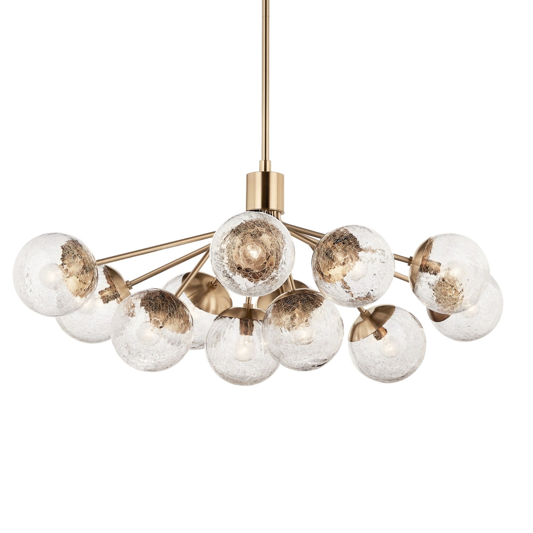 Elevate your space with the Kichler Silvarious 12-Light Chandelier, a stunning piece that complements modern, soft contemporary decor. Featuring a distinctive sputnik shape with crackle glass shades, this chandelier exudes elegance and sophistication, perfect for living rooms, dining areas, or foyers.