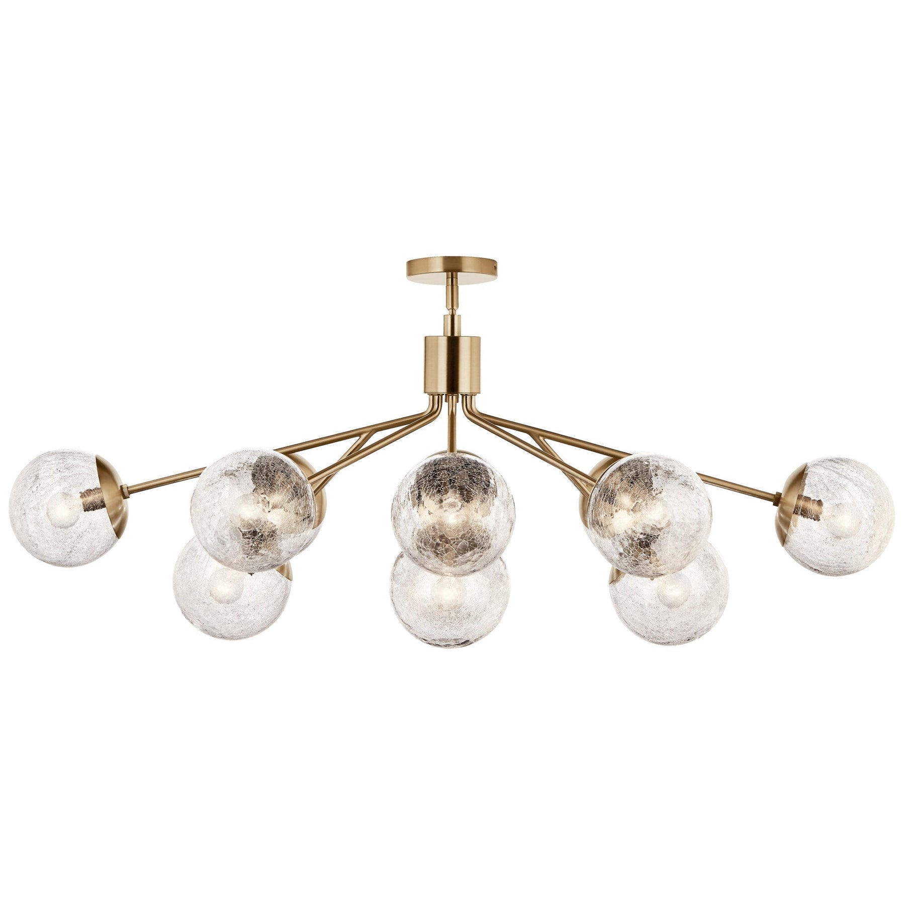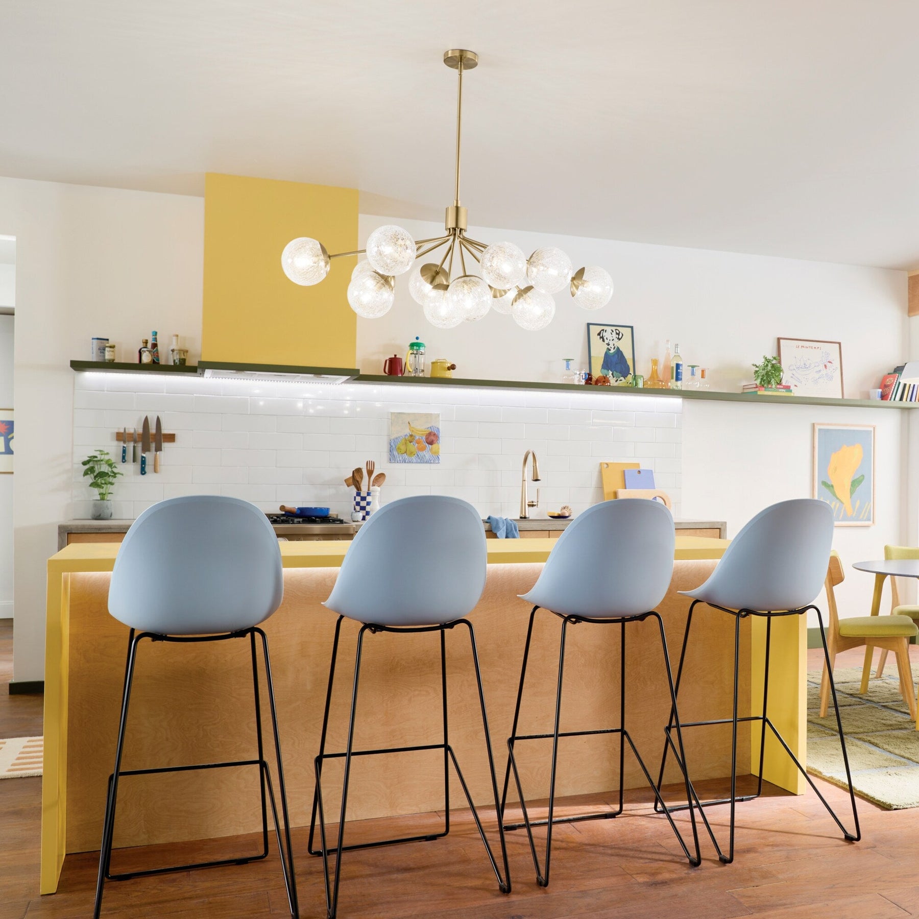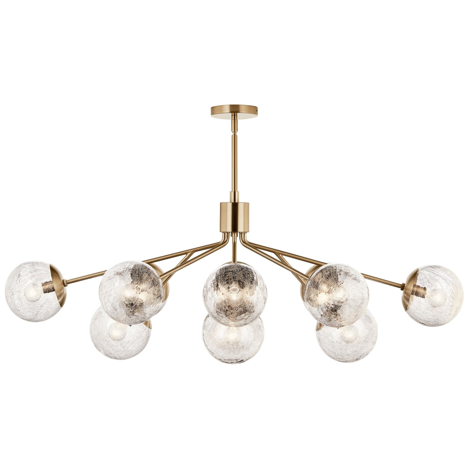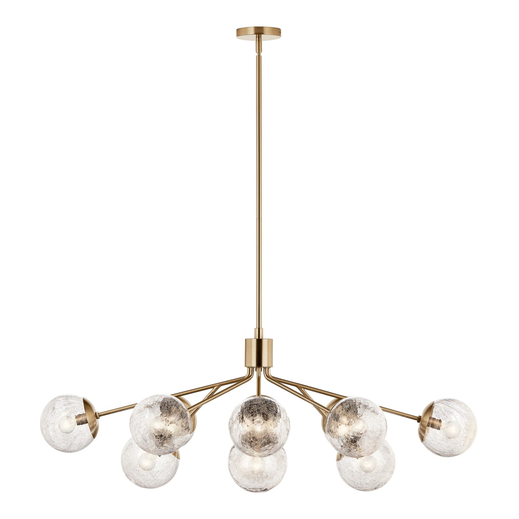 Elevate your space with the Kichler Silvarious 12-Light Chandelier, a stunning piece that complements modern, soft contemporary decor. Featuring a distinctive sputnik shape with crackle glass shades, this chandelier exudes elegance and sophistication, perfect for living rooms, dining areas, or foyers.