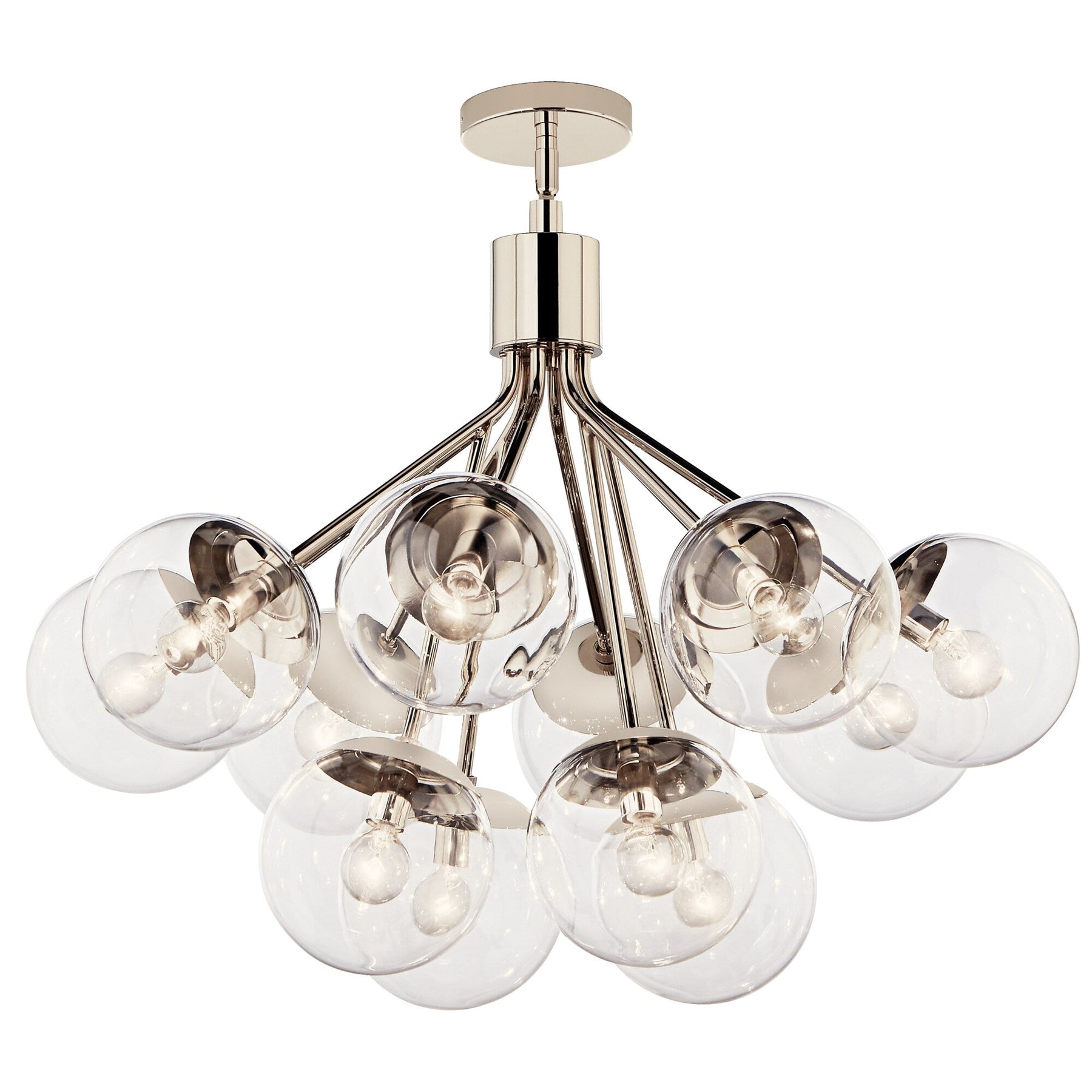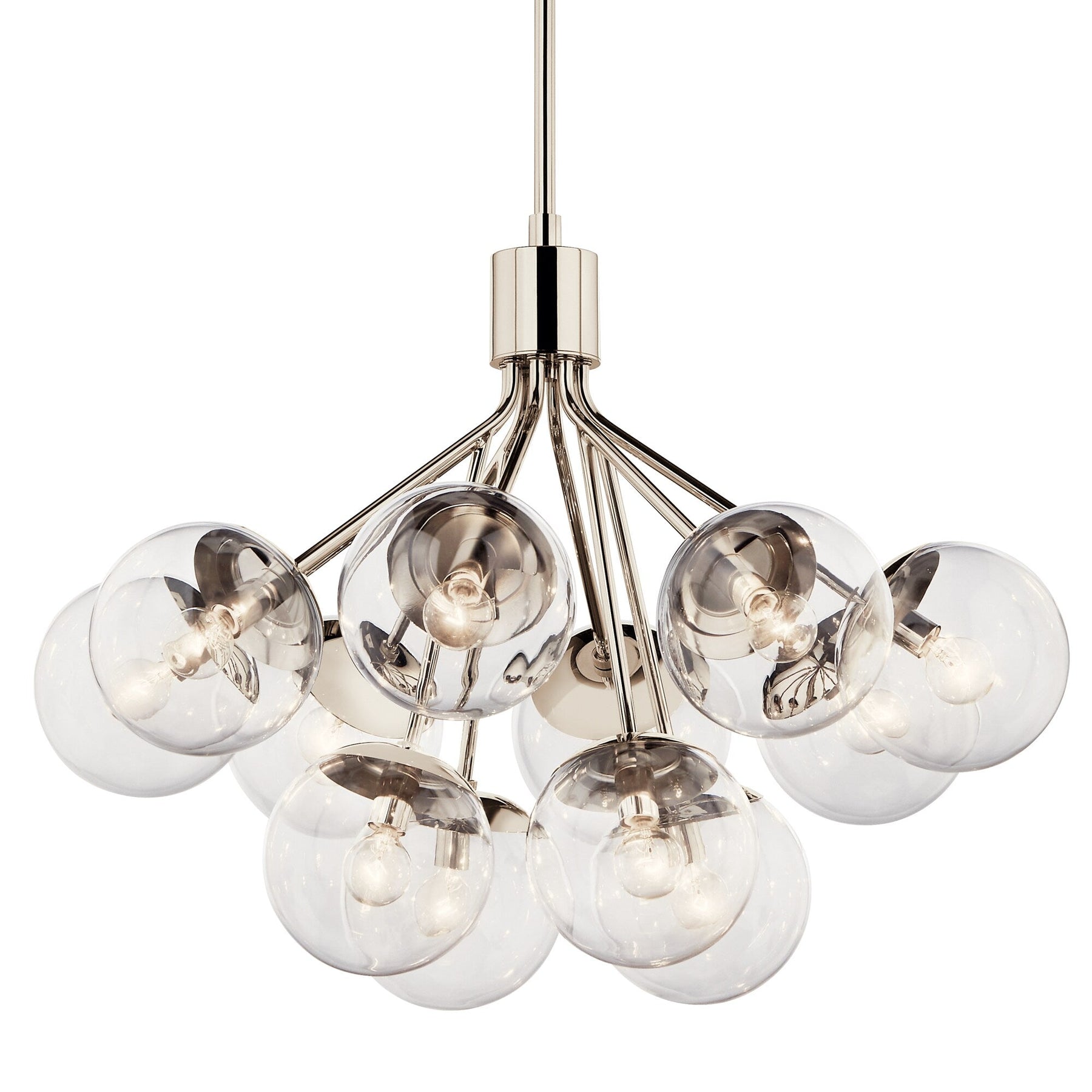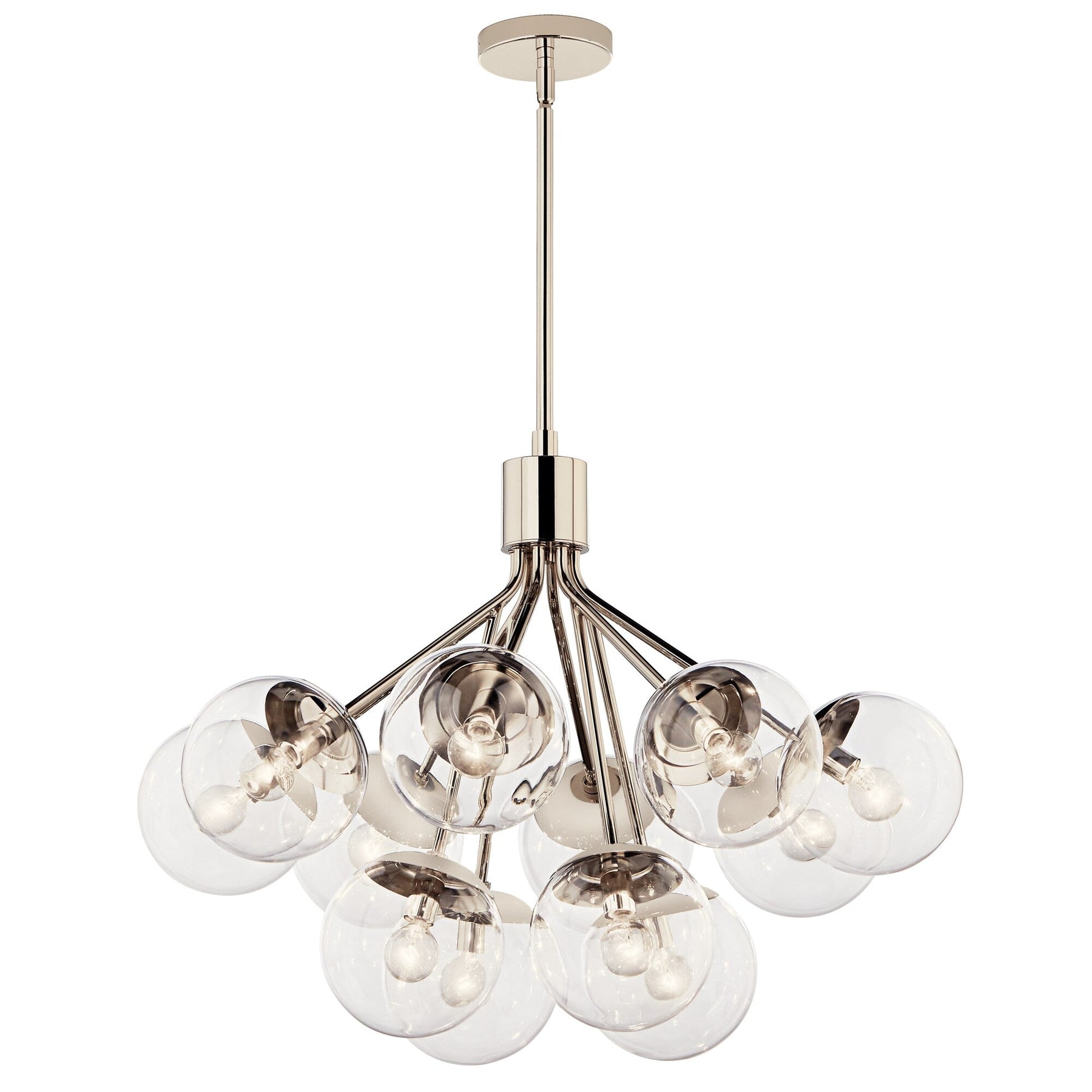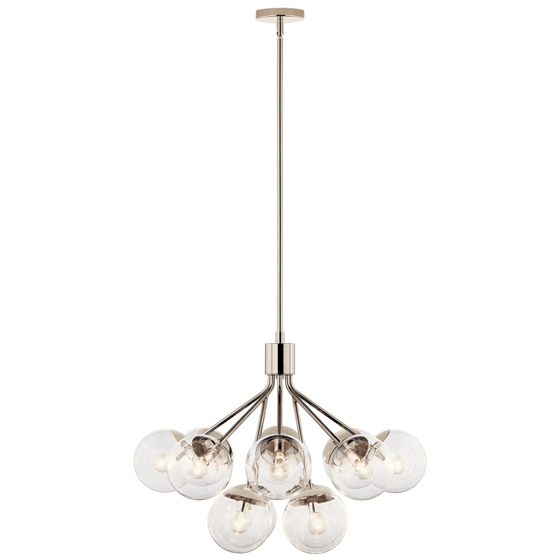 Envision your living space transformed by the radiant splendor of the Kichler Silvarious chandelier, a beacon of modern elegance. This fixture captures the crisp brilliance of polished nickel paired with the airy embrace of clear glass globes, artfully arranged in a playful yet refined sputnik design. Imagine this chandelier casting its golden glow against your dining room's neutral palette, complementing vibrant artwork with its touch of luxury. An essential addition for those who seek to imbue their homes with innovation and class, the Silvarious elevates ordinary evenings into extraordinary experiences.
