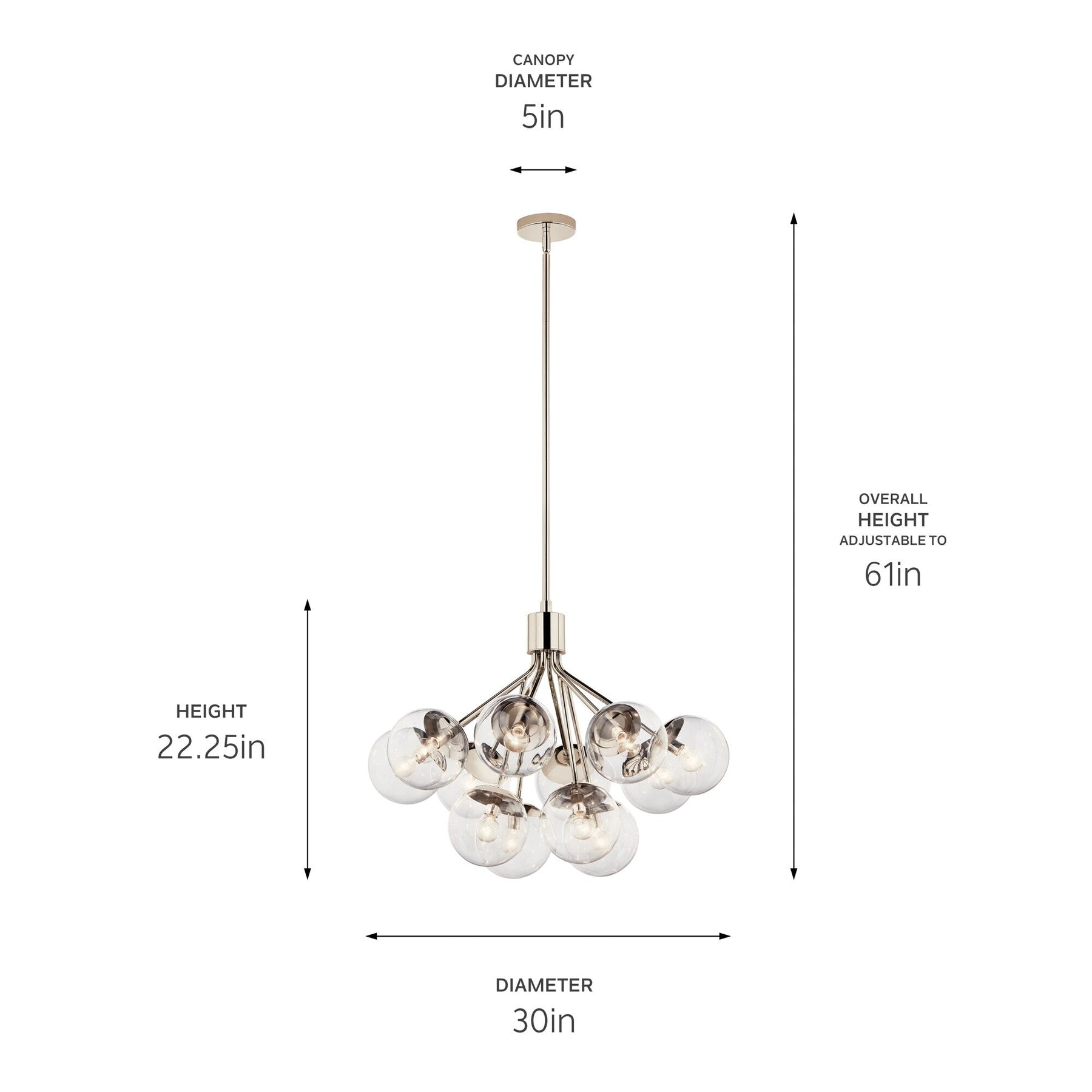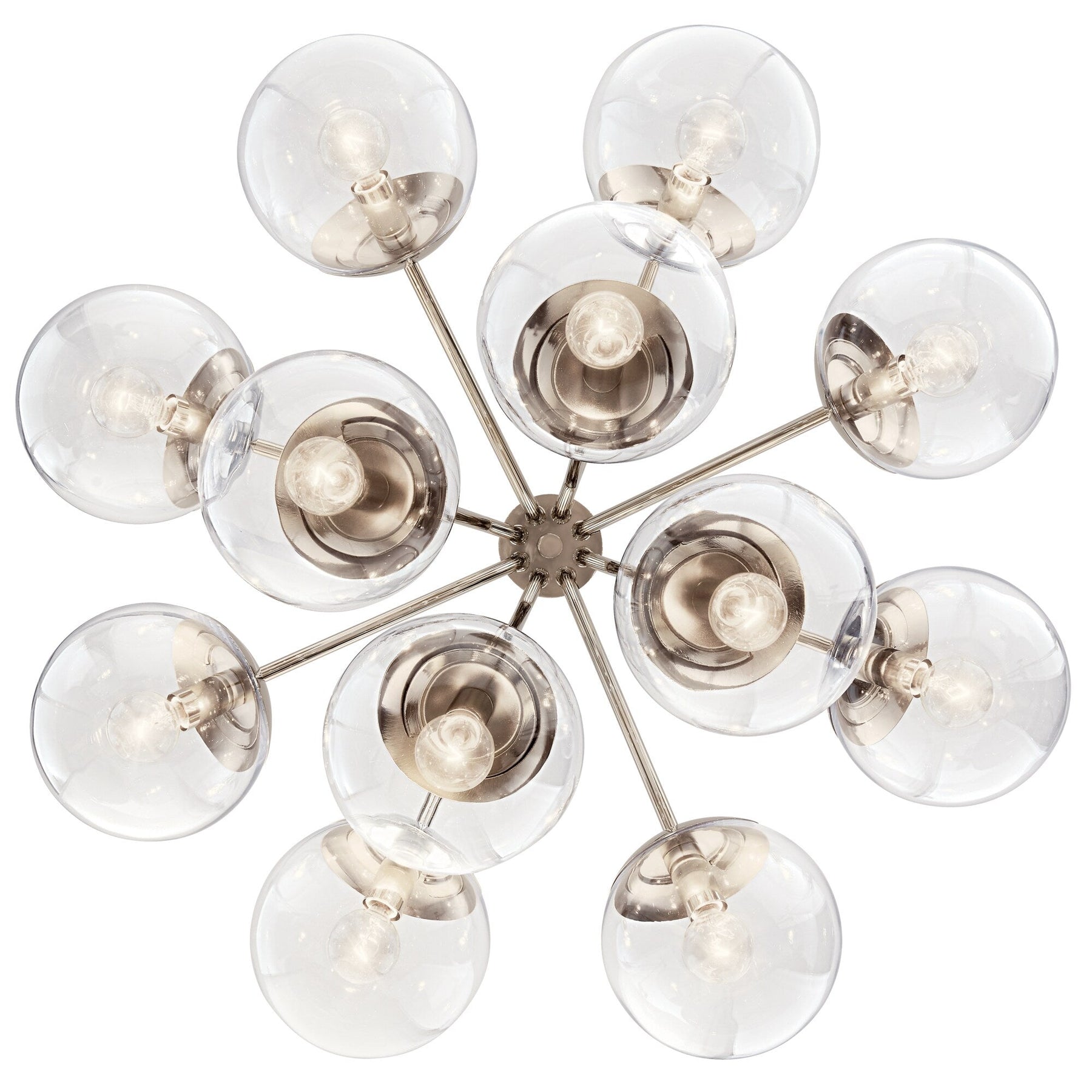 Elevate your spaces with the Kichler Silvarious 12-Light Chandelier, a modern masterpiece that blends timeless elegance with contemporary flair. With its polished nickel finish and striking sputnik design, this chandelier not only lights up a room but transforms it into a sophisticated sanctuary.