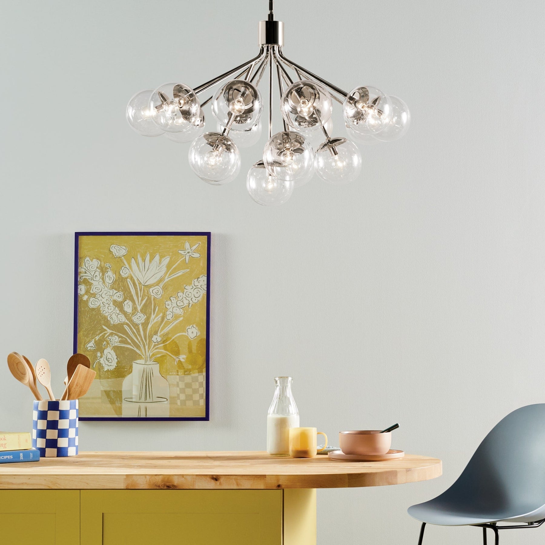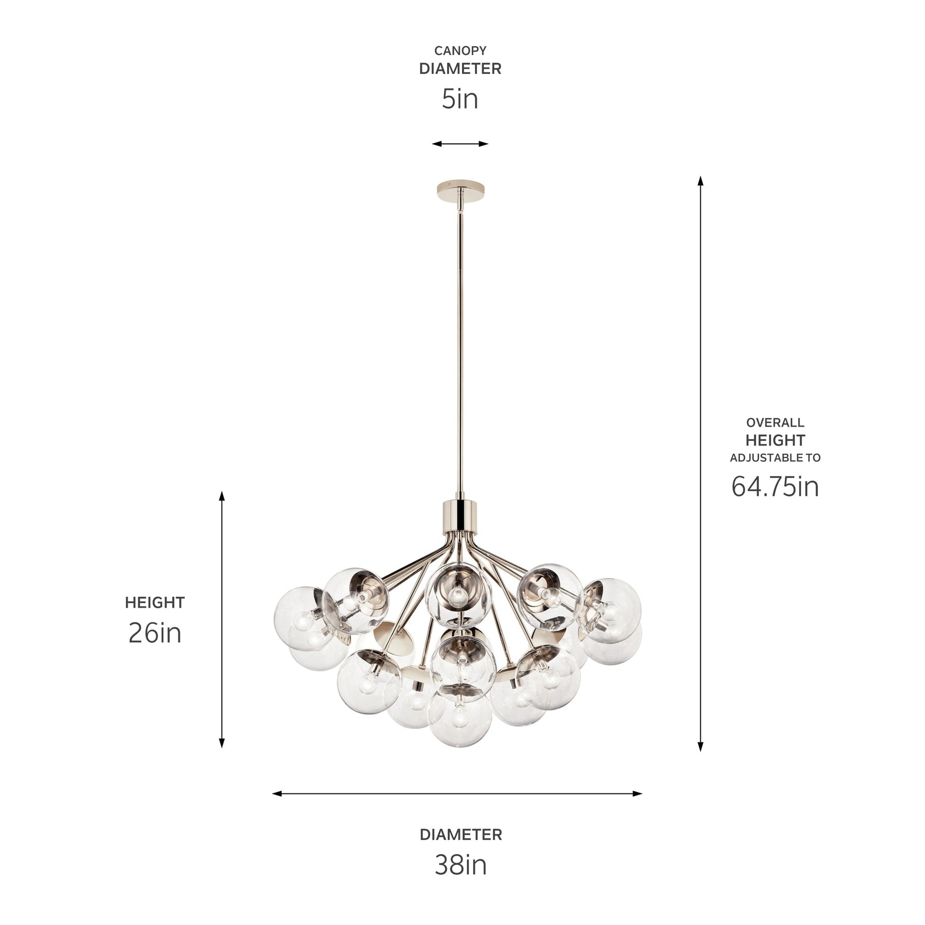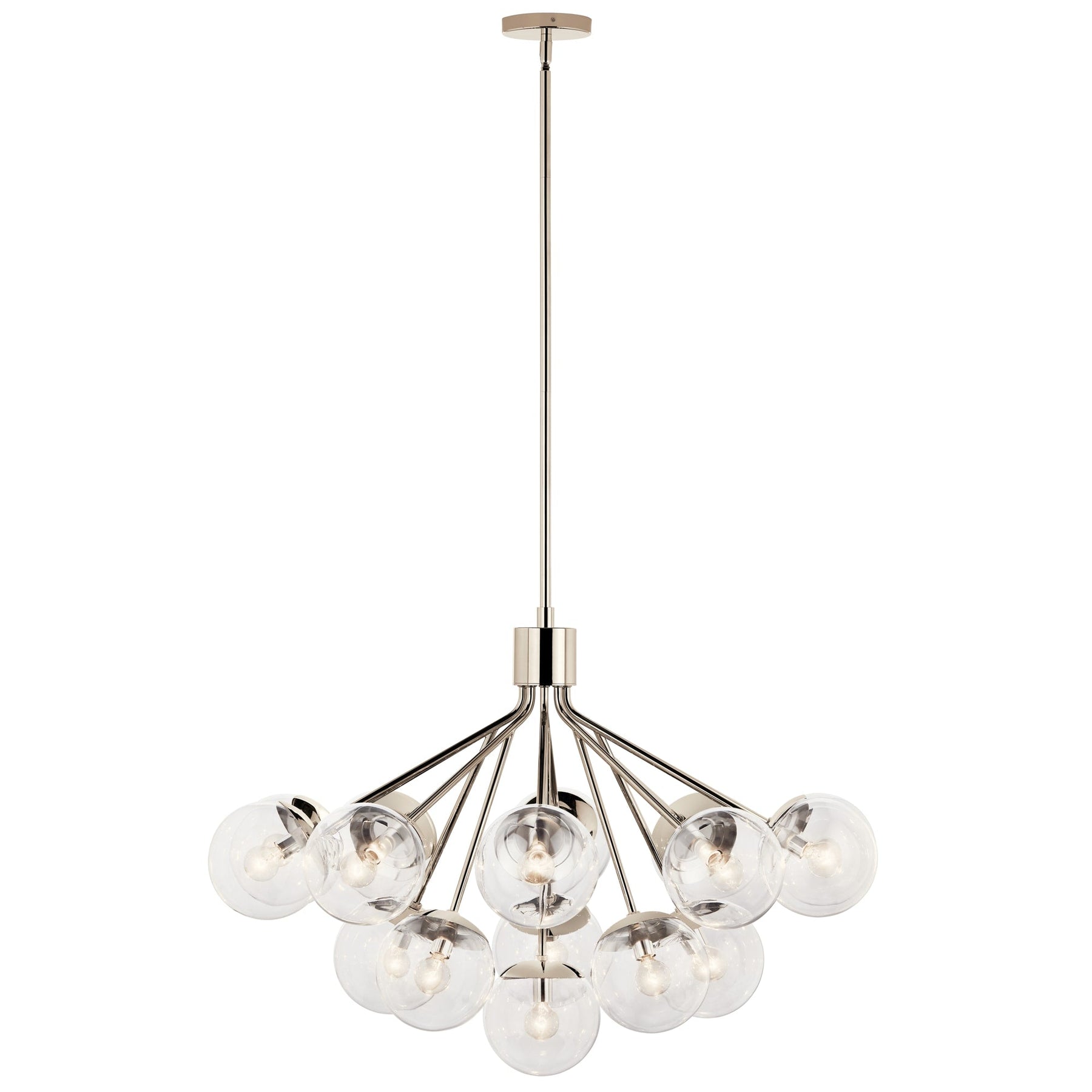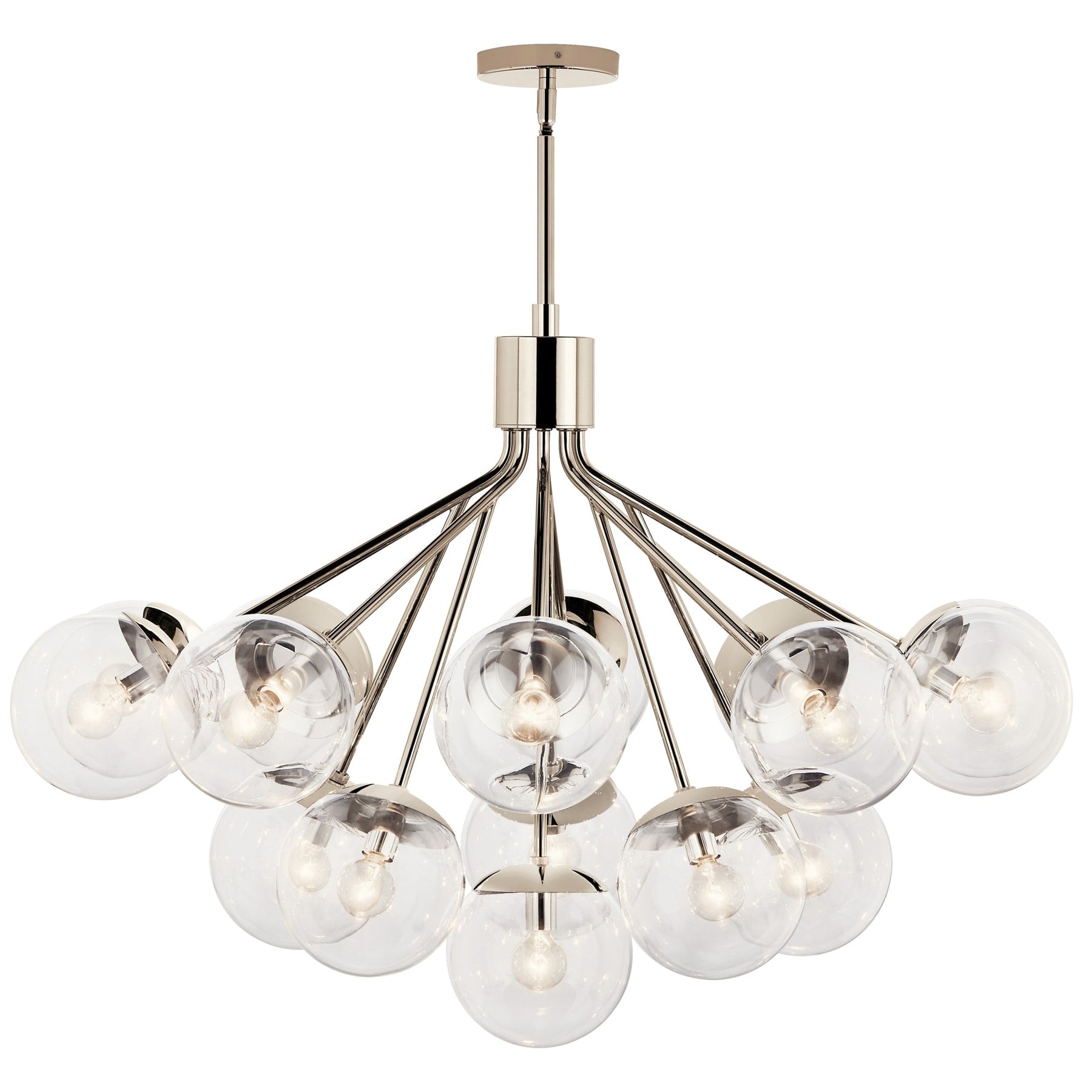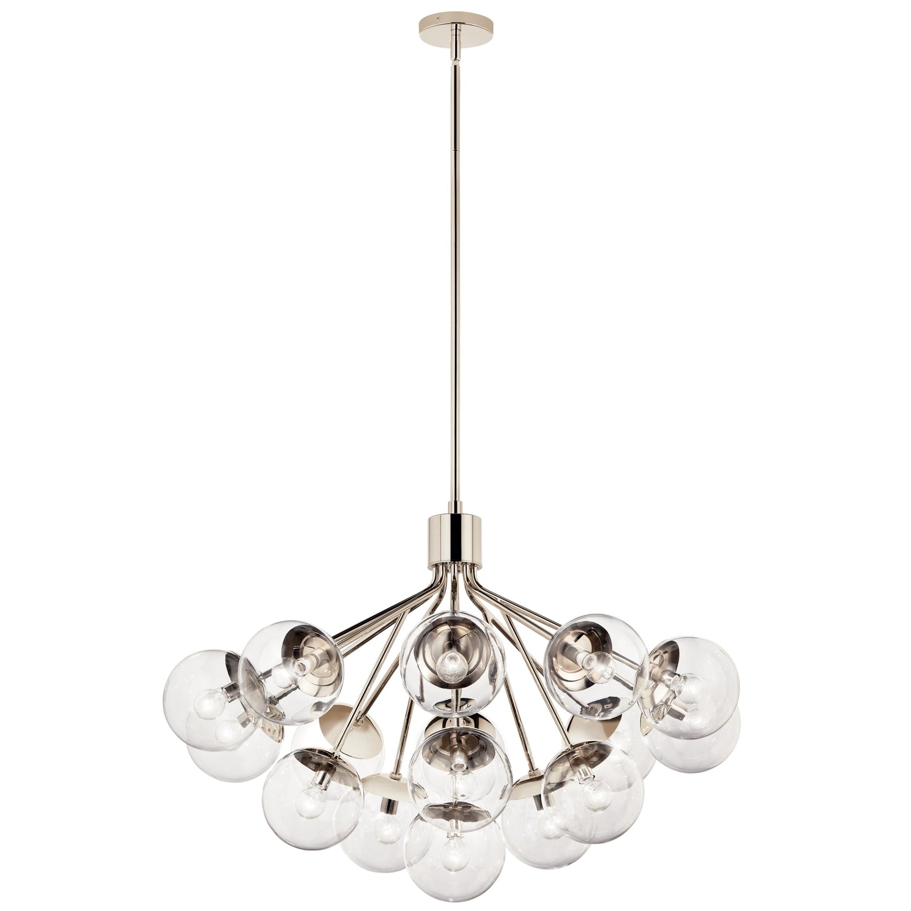 Redefine modern elegance with the Silvarious 16-Light Polished Nickel Chandelier. This striking piece melds a sophisticated sputnik design with the brilliance of clear glass shades, offering an inviting luminosity perfect for contemporary spaces. Ideal for dining rooms or foyers, it transforms any room into a masterpiece with its polished flair.