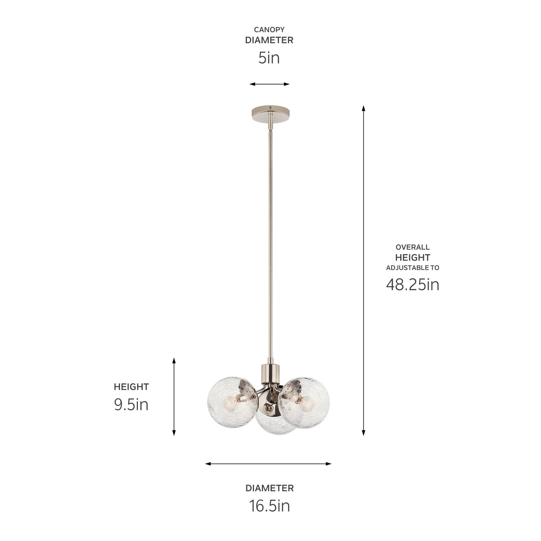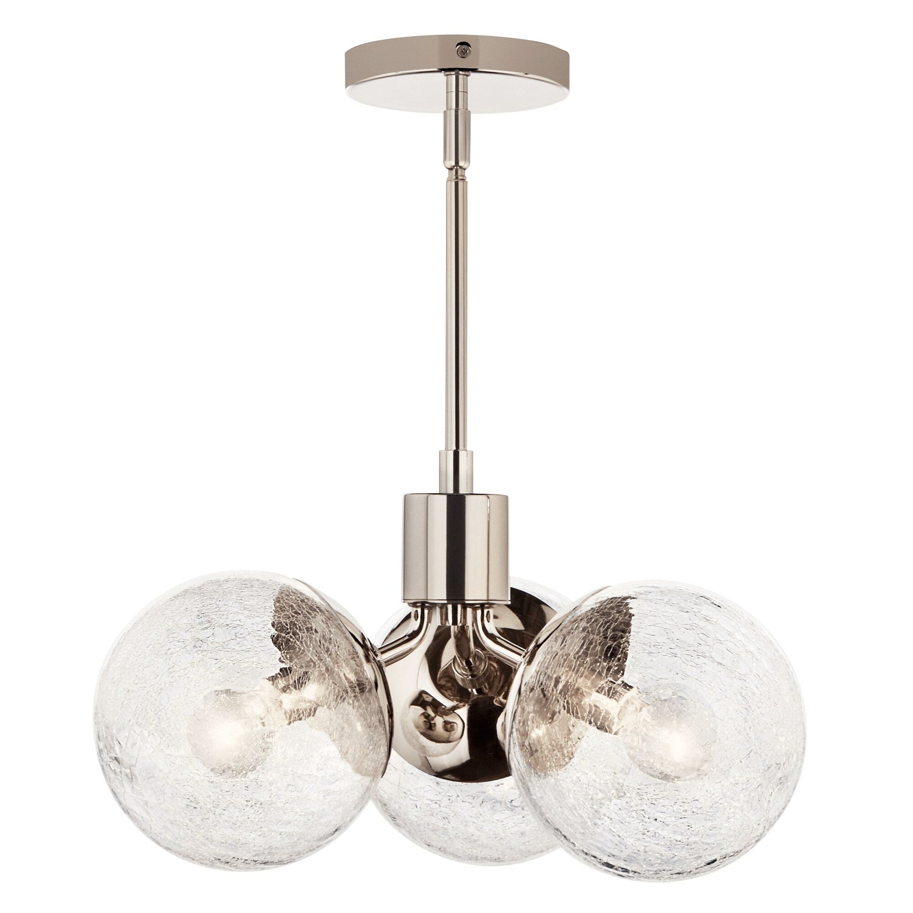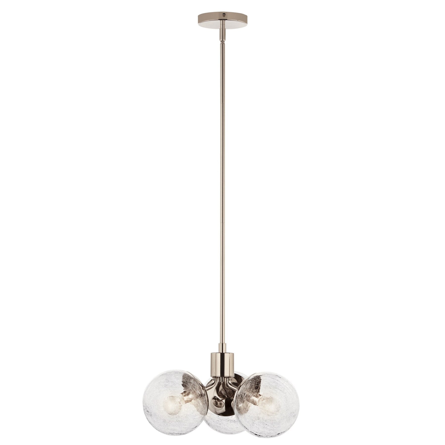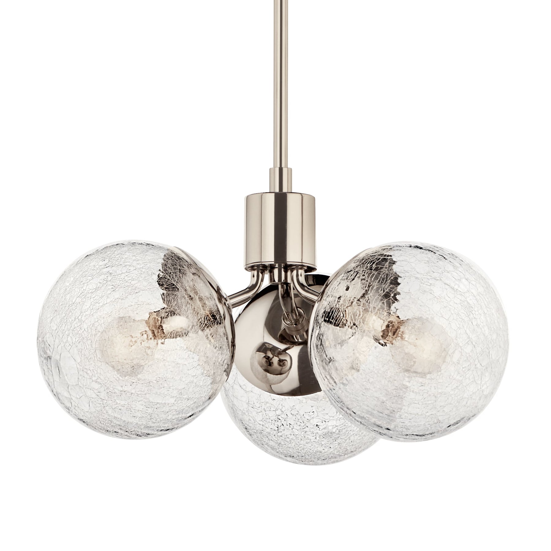 Elevate your space with the Kichler Silvarious 3-Light Chandelier, a hallmark of modern elegance and versatility. The polished nickel finish and crackled glass shades introduce a touch of glamour, while the convertible design allows dynamic installation as a pendant or semi-flush mount. Perfect for adding a sophisticated glow to any room, from cozy dining nooks to stylish kitchen islands.