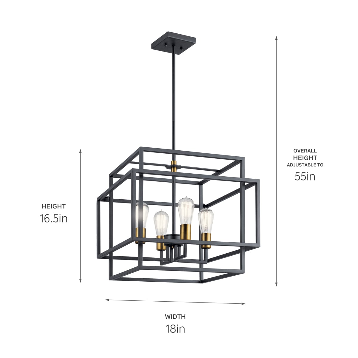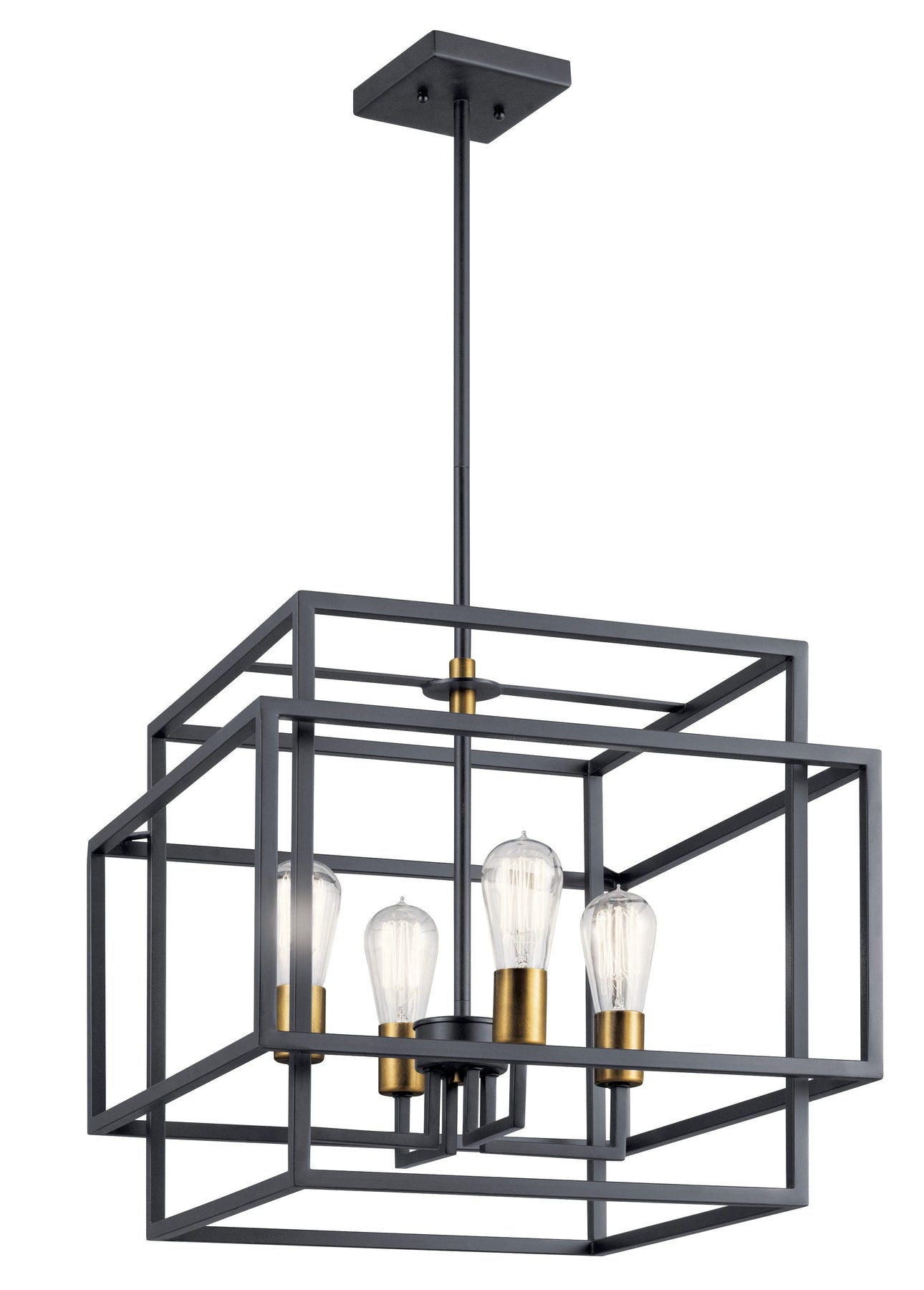 Kichler Taubert 4-Light Black Mid-century Geometric Medium Hanging Pendant Light