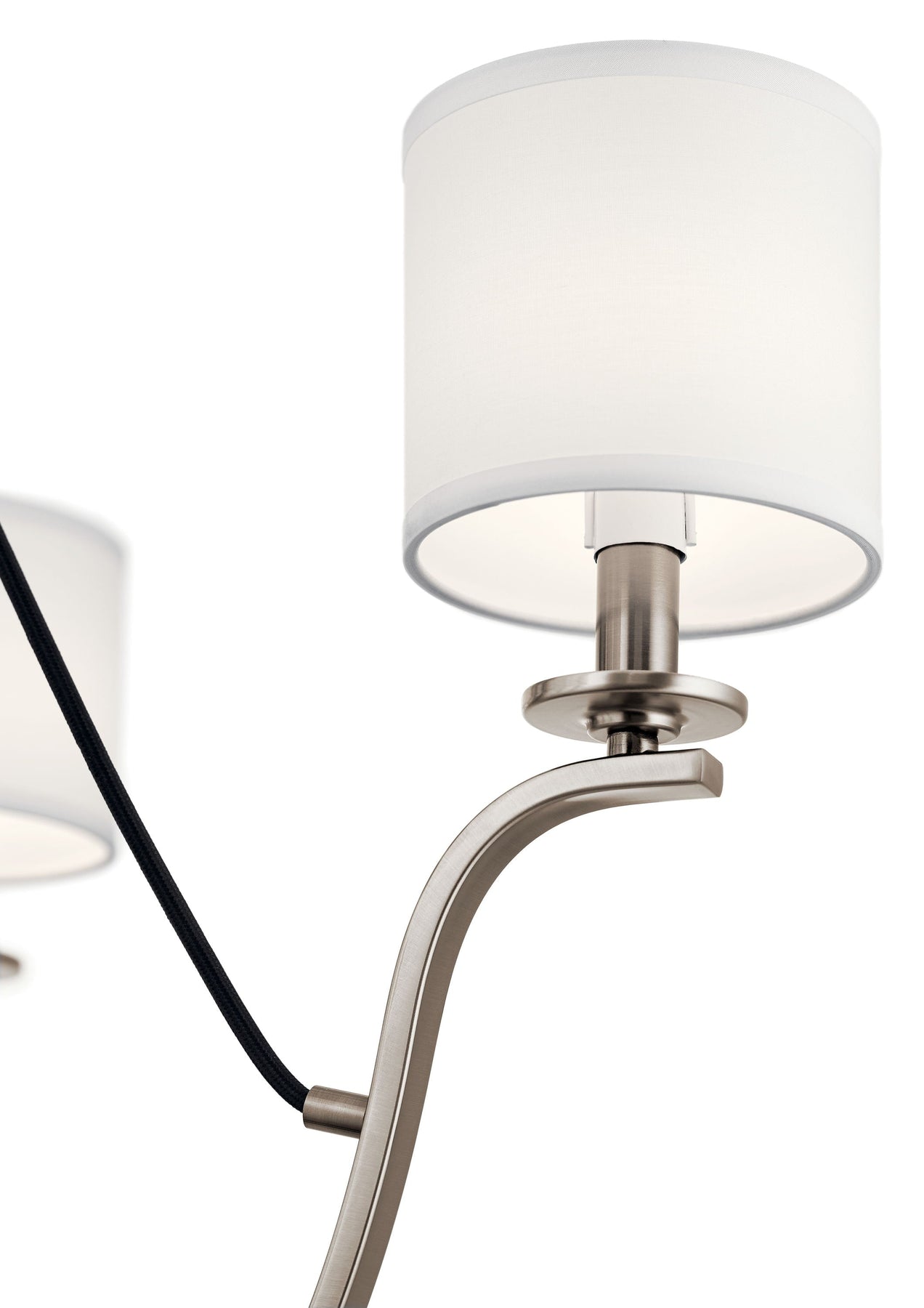 Elevate your space with the timeless elegance of the Kichler Thisbe 6-Light Chandelier. With its Classic Pewter finish and white linen shades, this chandelier adds a touch of sophistication and charm, perfect for dining rooms, foyers, and more. Its durable steel construction ensures lasting beauty and function.