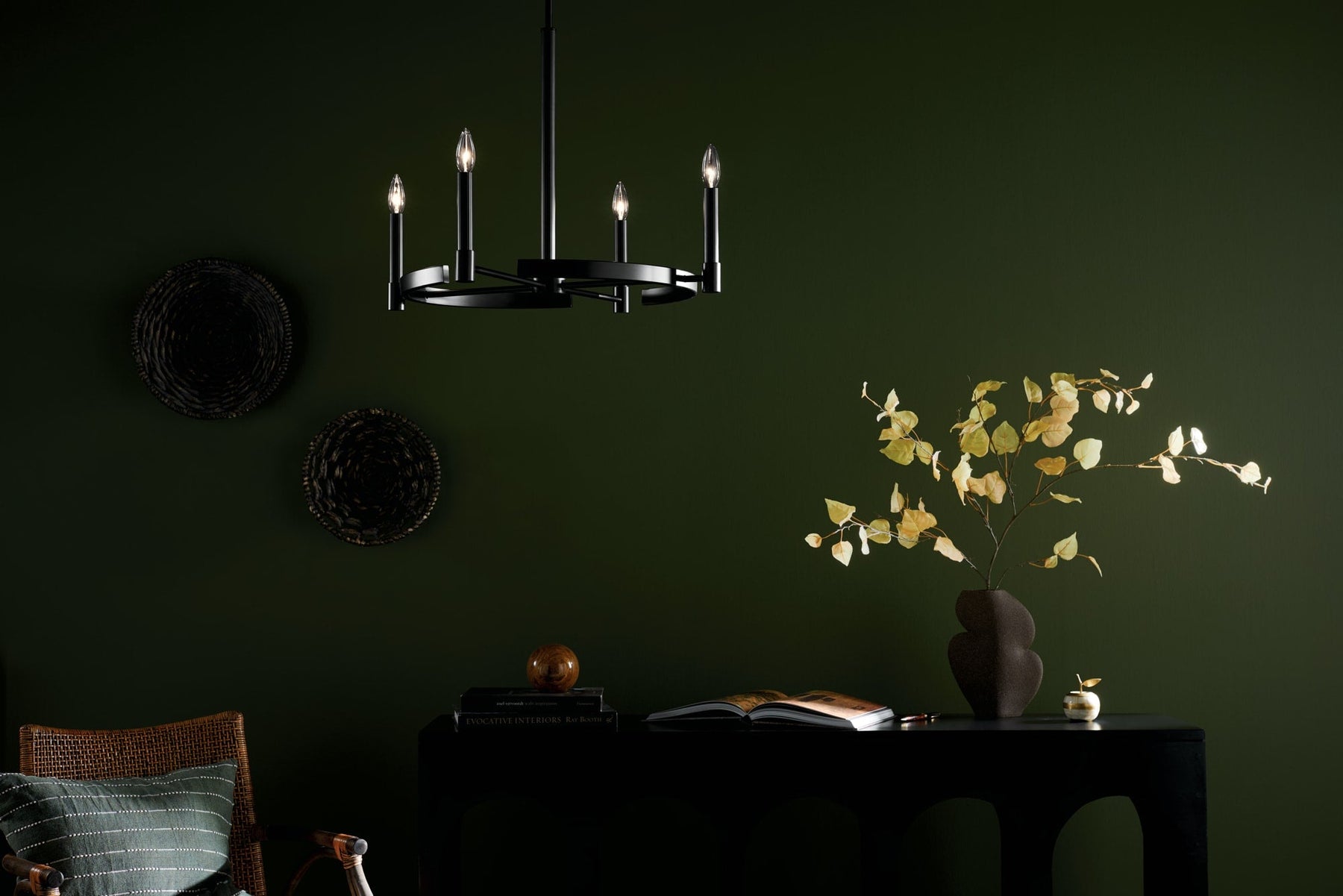 The Kichler Tolani 4-Light Black Vintage Chandelier seamlessly blends modern sophistication with vintage charm, creating a true statement piece for your home. Its robust steel frame enhances stability, while the stunning bare bulb design adds a unique flair, making it perfect for kitchens, dining areas, and foyers. With the elegance of a neutral black finish, this chandelier is both refined and versatile, effortlessly elevating any space.
