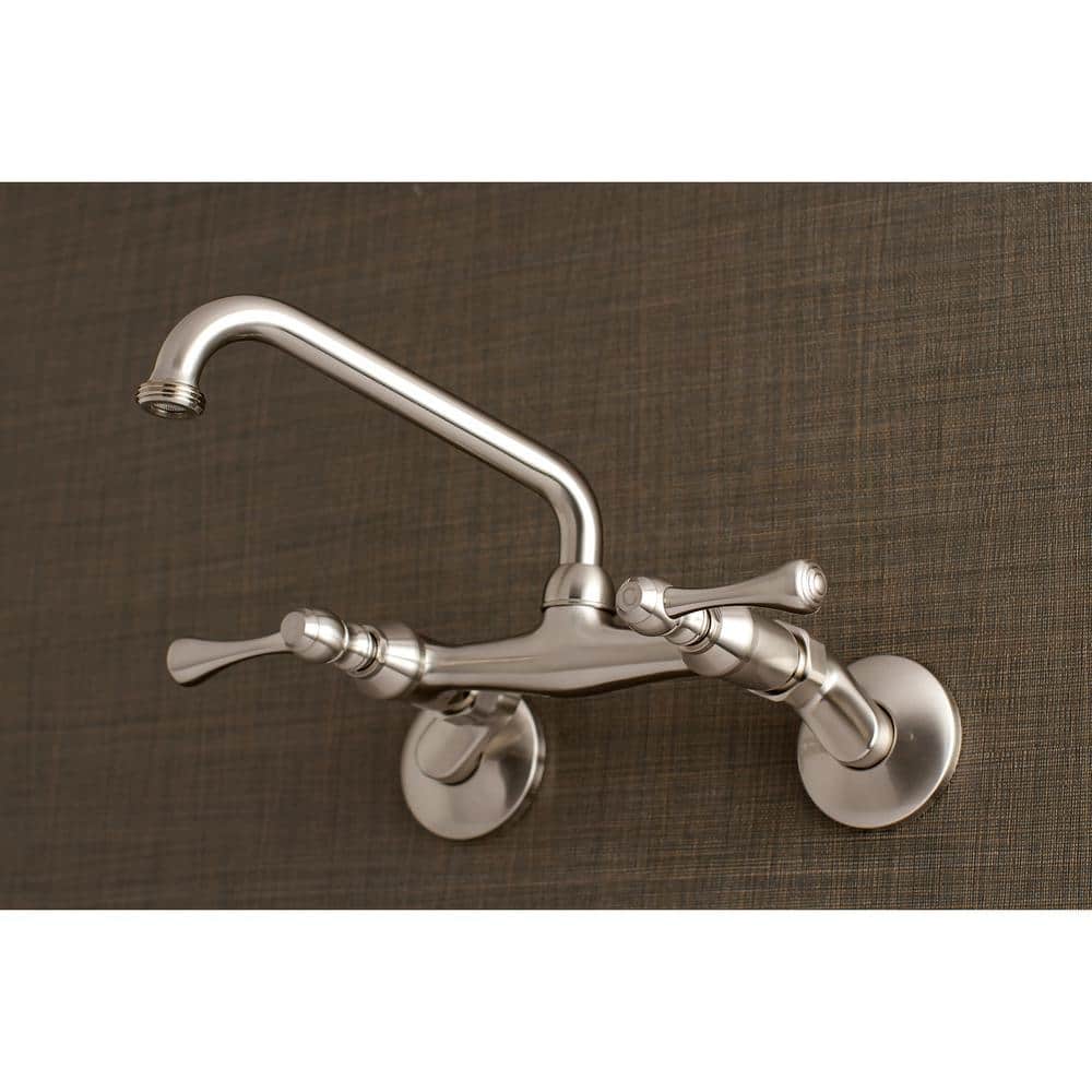 Kingston Brass Kingston Adjustable Center 2-Handle Wall-Mount Laundry Faucet in Brushed Nickel