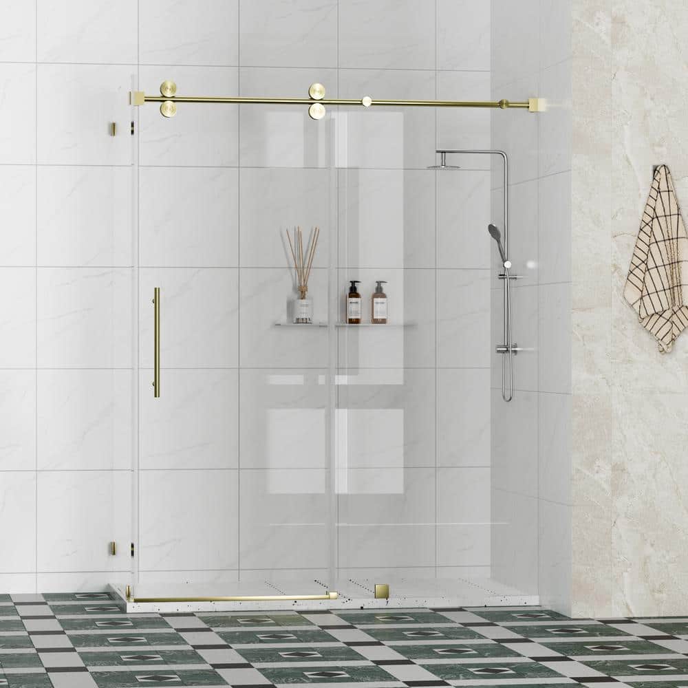 Radiance 48" Sliding Frameless Shower Enclosure, Brushed Gold