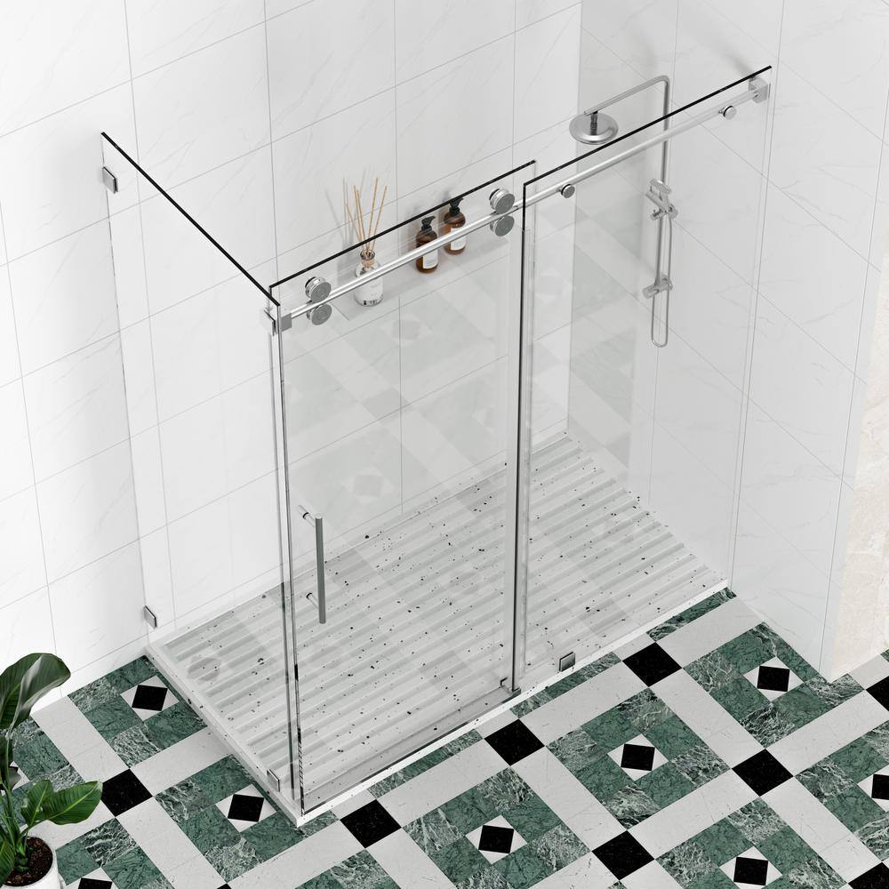 Kobiworks Radiance 48 in. W x 35 in. D x 76 in. H Sliding Frameless Corner Shower Enclosure in Chrome with Clear Glass
