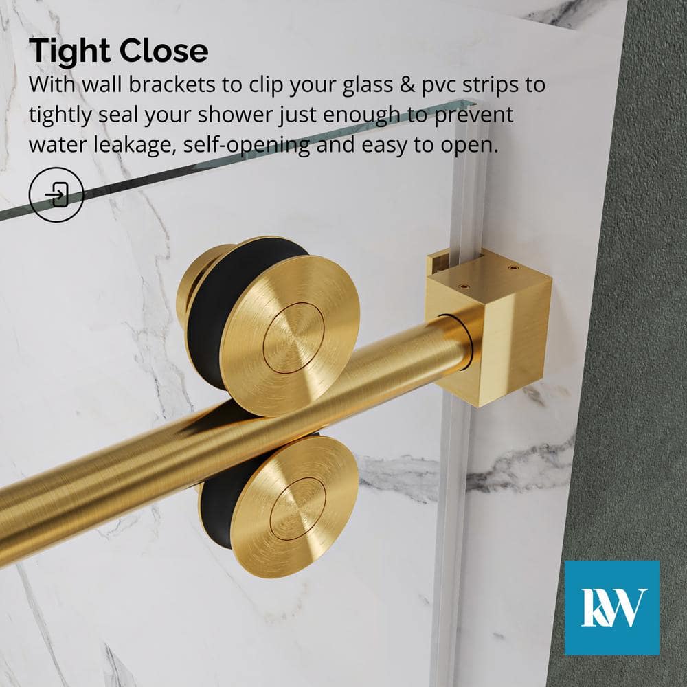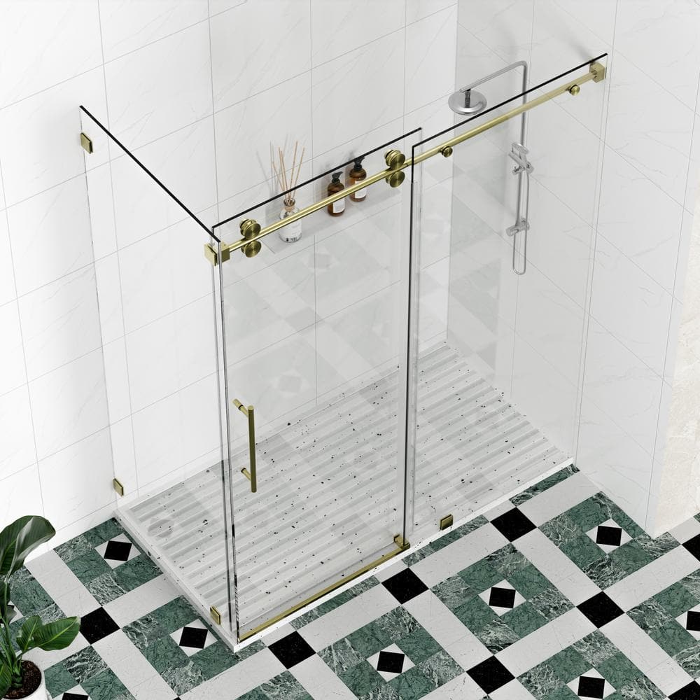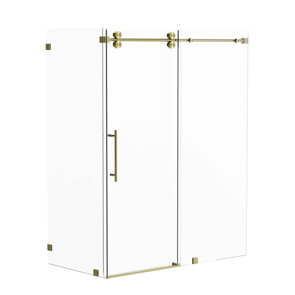 Kobiworks Radiance 66 in. W x 35 in. D x 76 in. H Sliding Frameless Corner Shower Enclosure in Brushed Gold with Clear Glass
