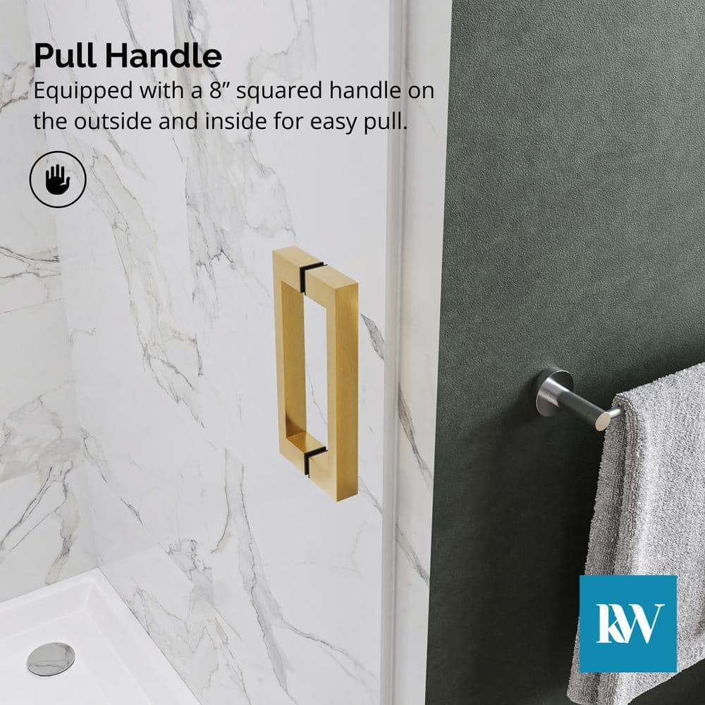 Experience the captivating elegance of the Kobiworks Serenity Shower Door, with its glistening brushed gold accents that turn any bathroom into a sanctuary. The standout feature is its sleek, frameless design that epitomizes modern sophistication. Pair this graceful door with marble tiles and plush towels to create a spa-like retreat in your home. This Serenity shower door is not just a utility, but a gateway to opulent living.