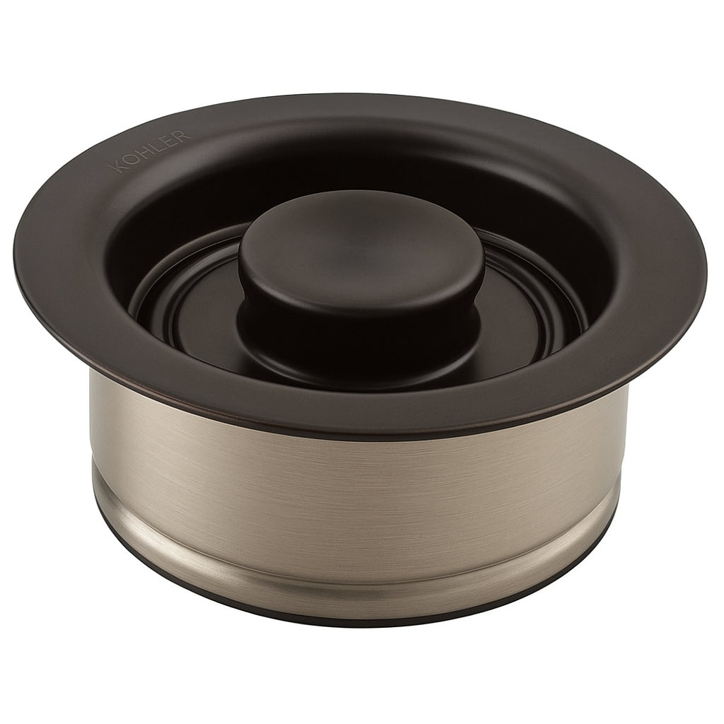 The KOHLER Oil-Rubbed Bronze Disposal Flange and Stopper is a durable and stylish sink accessory designed to fit standard garbage disposal units. Its corrosion-resistant finish and premium metal construction ensure long-lasting performance.