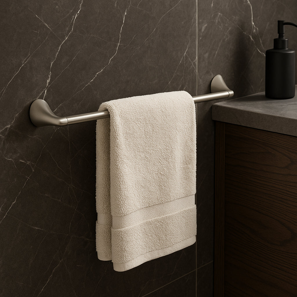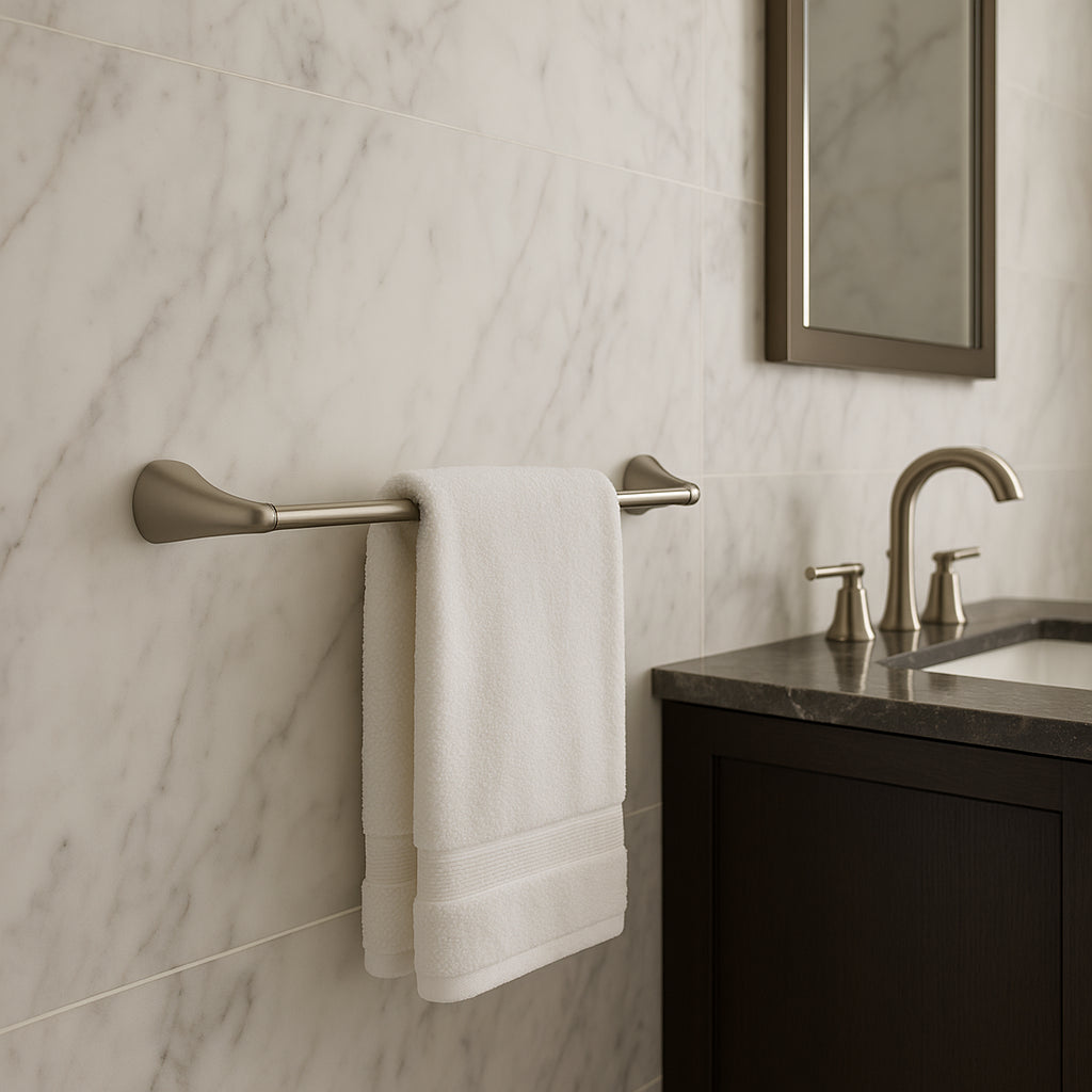 A: The KOHLER Alteo towel bar includes all the necessary installation hardware and a template to guide you, making it a straightforward DIY project.