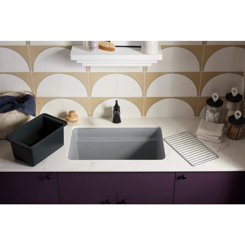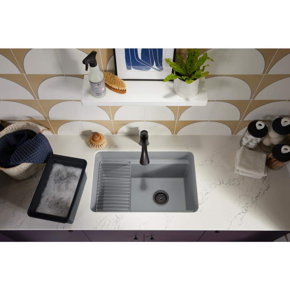 KOHLER Cairn Matte Grey Composite Undermount Utility Sink